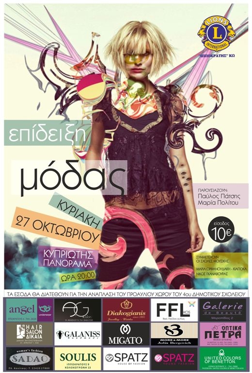 Η πρόεδρος και τα μέλη της λέσχης LIONS Κω «ΙΠΠΟΚΡΑΤΗΣ», με χαρά, σας προσκαλούν την Κυριακή 27 Οκτωβρίου στο ξενοδοχείο Κυπριώτης «ΠΑΝΟΡΑΜΑ» στις 08:00μ.μ., στη γνωστή σε όλους «ΕΠΙΔΕΙΞΗ ΜΟΔΑΣ».