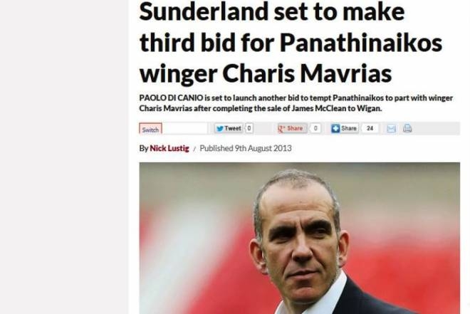 Σε… παρτίδα πόκερ έχει εξελιχθεί το ενδεχόμενο της μεταγραφής του Χάρη Μαυρία στην Αγγλία, καθώς η Σάντερλαντ επιστρέφει με τρίτη πρόταση για τον Παναθηναϊκό.