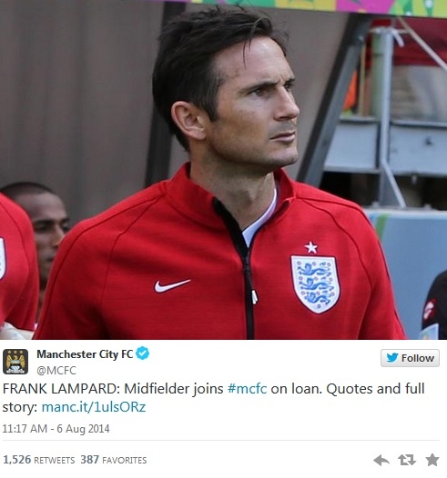 Ο Φρανκ Λάμπαρντ θα συνεχίσει την καριέρα του, ως δανεικός, στην Μάντσεστερ Σίτι μέχρι να ξεκινήσει ξανά το πρωτάθλημα στις ΗΠΑ το 2015.