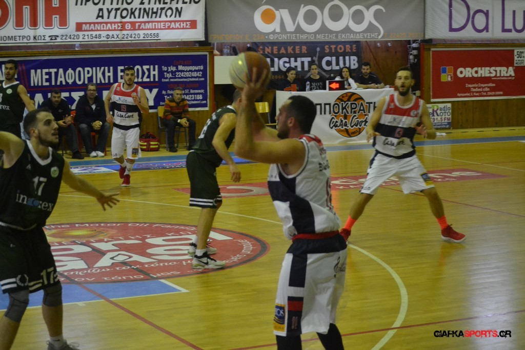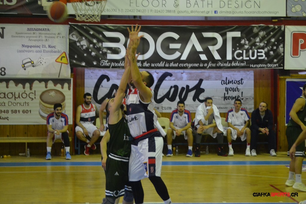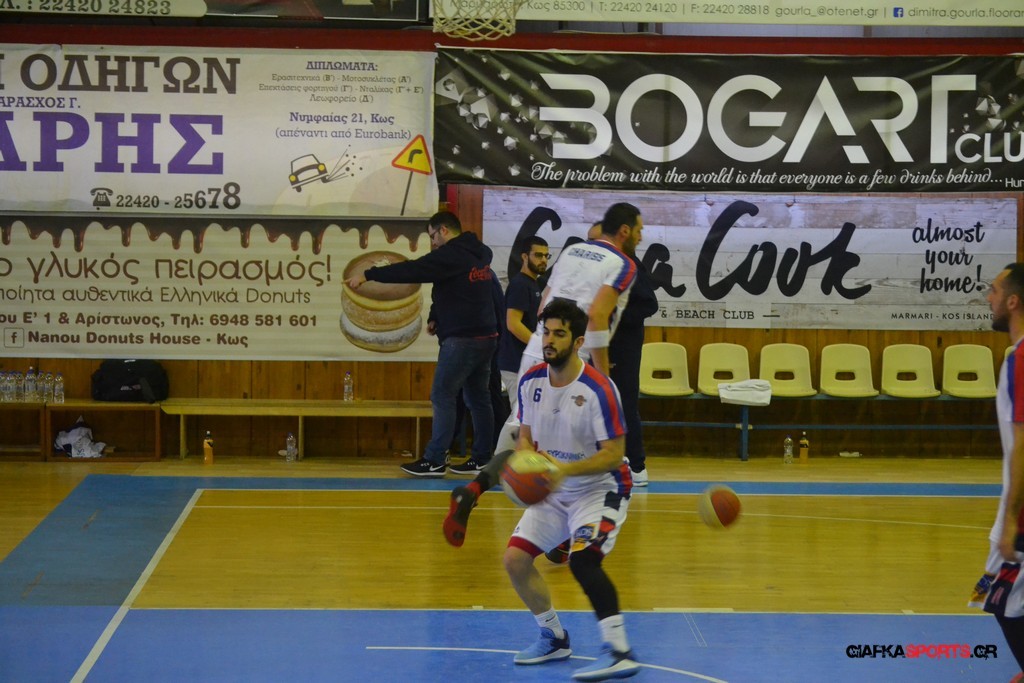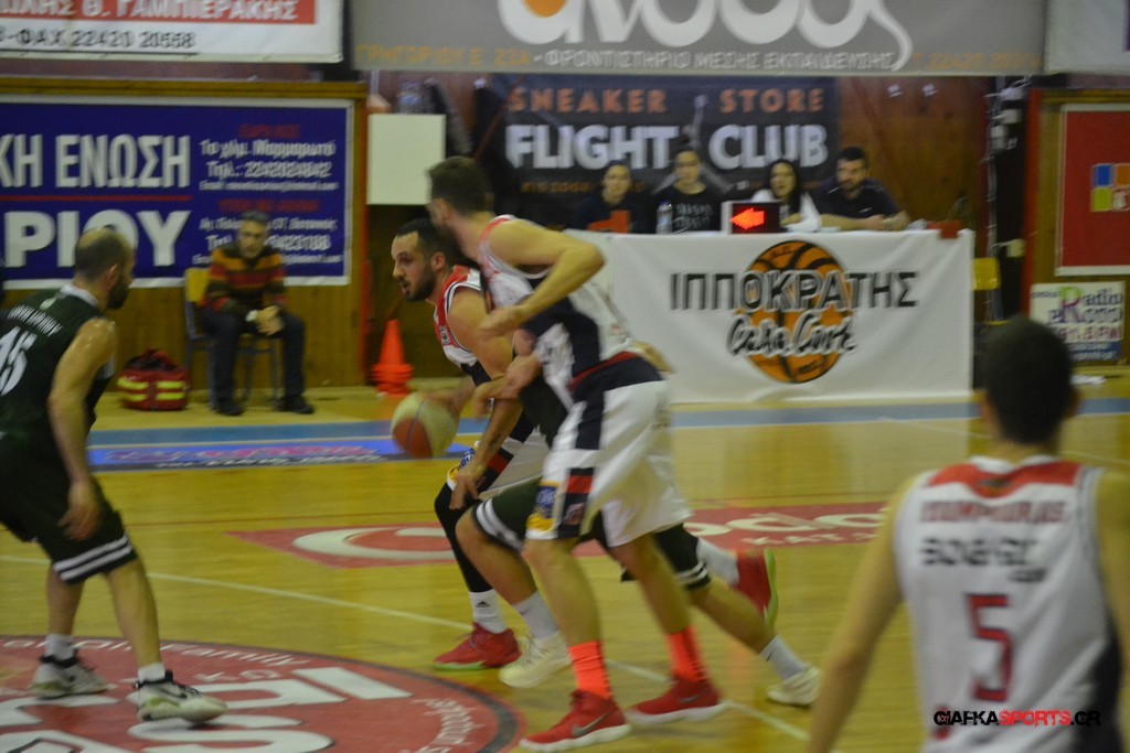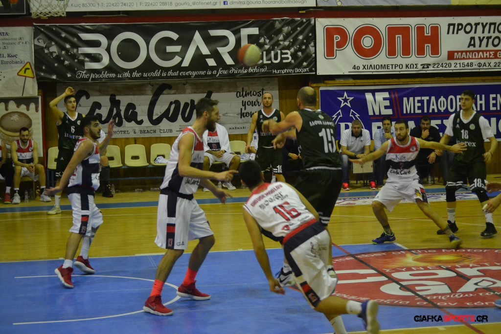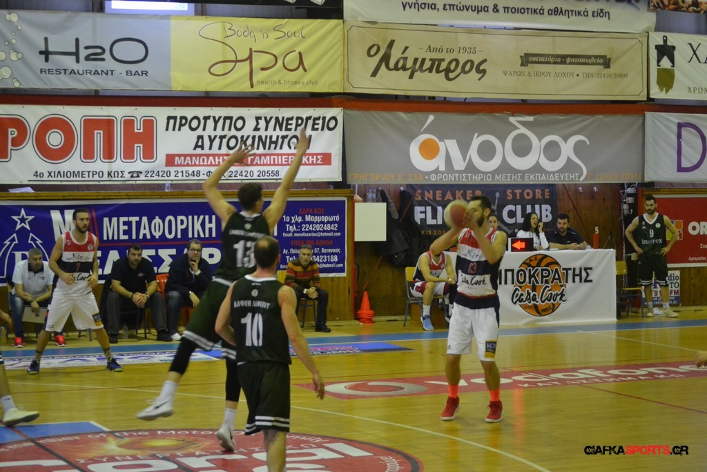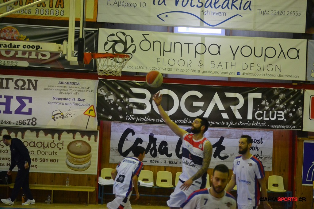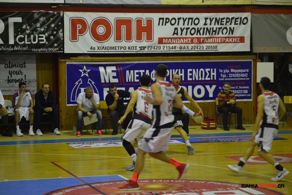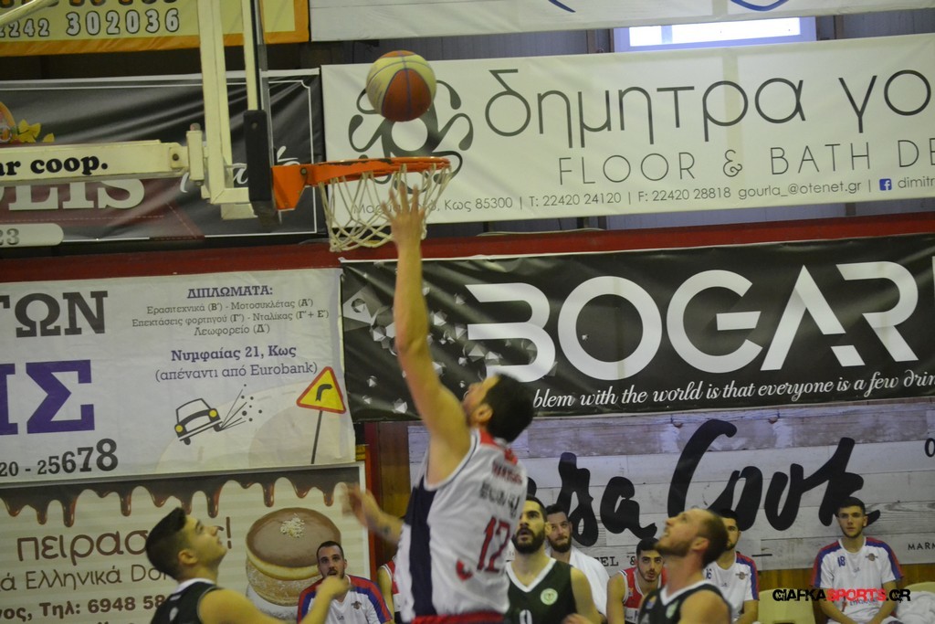 Με όπλο την εμπειρία των παικτών του και έχοντας κάθε δεκάλεπτο και ξεχωριστό πρωταγωνιστή, ο Ιπποκράτης πήρε το ροζ φύλλο αγώνα (την ίδια ώρα ο Διαγόρας Δρυοπιδέων κέρδιζε εκτός έδρας τον Πρωτέα Βούλας) και επέστρεψε στις νίκες, μετά την ήττα στη Νίκαια από τον τοπικό Ιωνικό. Η ομάδα του Χάρη Κουλουριώτη ήταν το απόλυτο «αφεντικό» του αγώνα, κάτι που φρόντισε να δείξει με το καλημέρα. Με αιχμή του δόρατος τον Ονάσογλου στο α’ δεκάλεπτο, οι Κώοι πήραν το προβάδισμα και μαζί μία σημαντική διαφορά (23-14). Στη συνέχεια τη σκυτάλη στο σκοράρισμα πήρε ο αρχηγός της ομάδας Αντώνης Ασημακόπουλος για να κλείσει το ημίχρονο με 47-35.