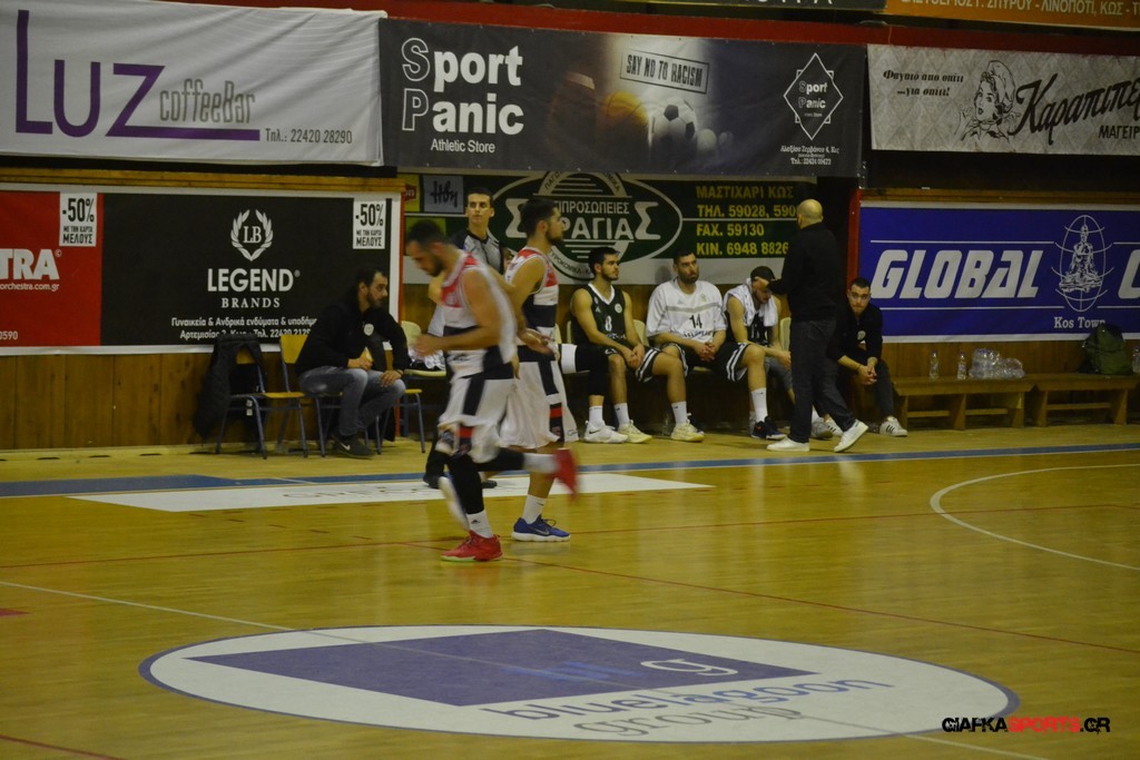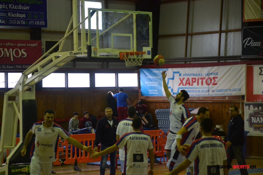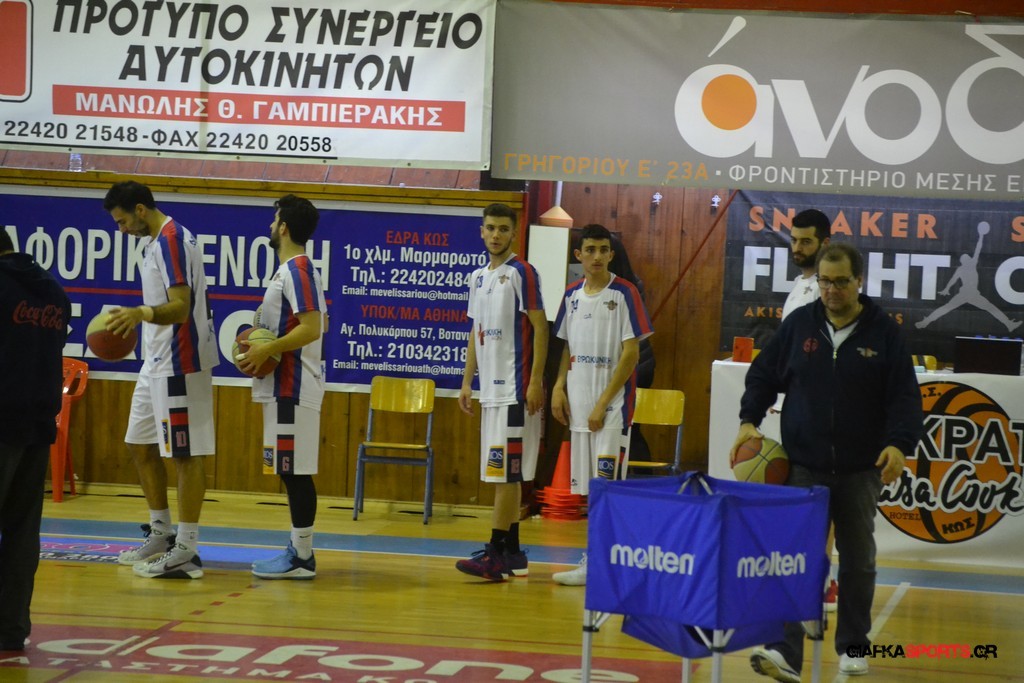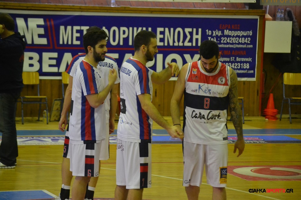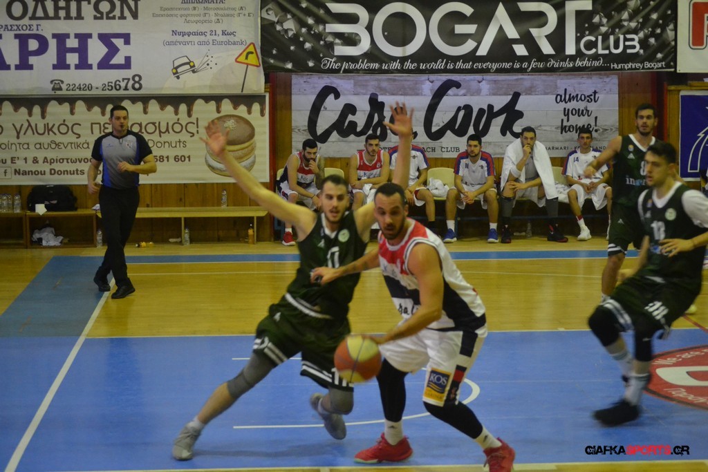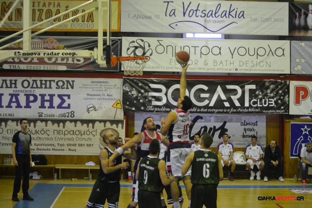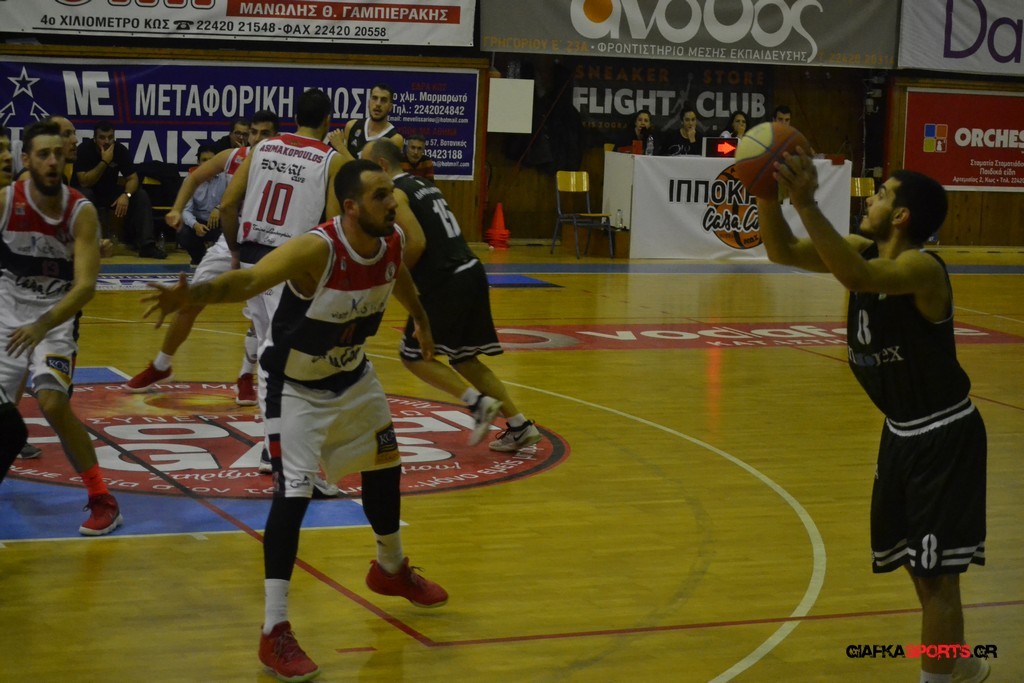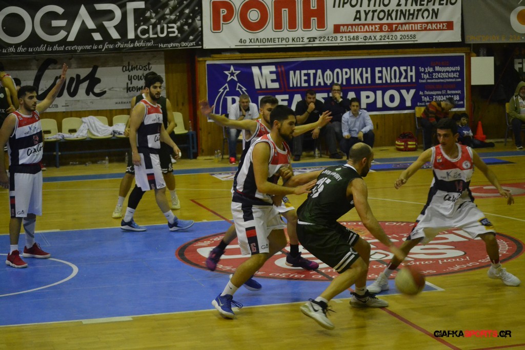 Με όπλο την εμπειρία των παικτών του και έχοντας κάθε δεκάλεπτο και ξεχωριστό πρωταγωνιστή, ο Ιπποκράτης πήρε το ροζ φύλλο αγώνα (την ίδια ώρα ο Διαγόρας Δρυοπιδέων κέρδιζε εκτός έδρας τον Πρωτέα Βούλας) και επέστρεψε στις νίκες, μετά την ήττα στη Νίκαια από τον τοπικό Ιωνικό. Η ομάδα του Χάρη Κουλουριώτη ήταν το απόλυτο «αφεντικό» του αγώνα, κάτι που φρόντισε να δείξει με το καλημέρα. Με αιχμή του δόρατος τον Ονάσογλου στο α’ δεκάλεπτο, οι Κώοι πήραν το προβάδισμα και μαζί μία σημαντική διαφορά (23-14). Στη συνέχεια τη σκυτάλη στο σκοράρισμα πήρε ο αρχηγός της ομάδας Αντώνης Ασημακόπουλος για να κλείσει το ημίχρονο με 47-35.