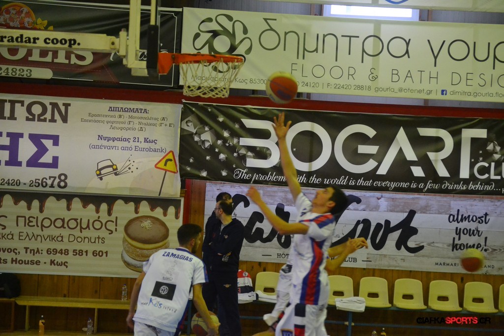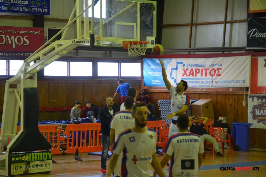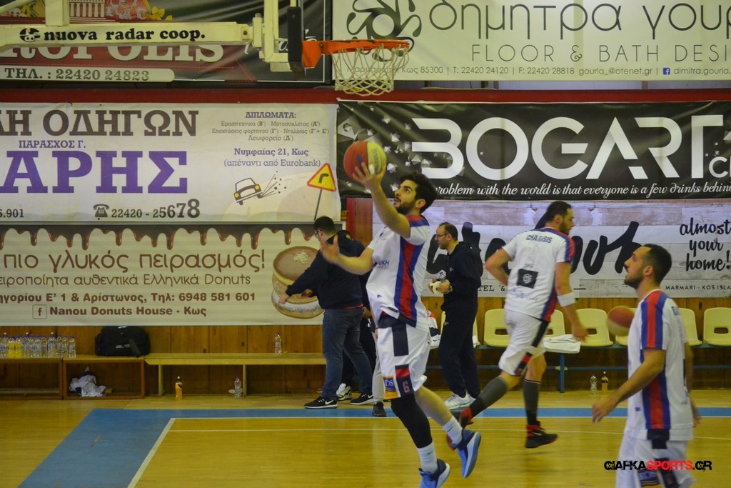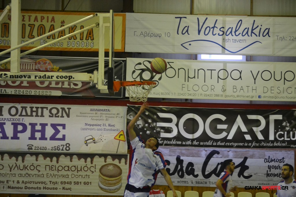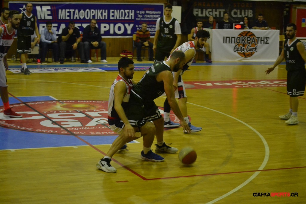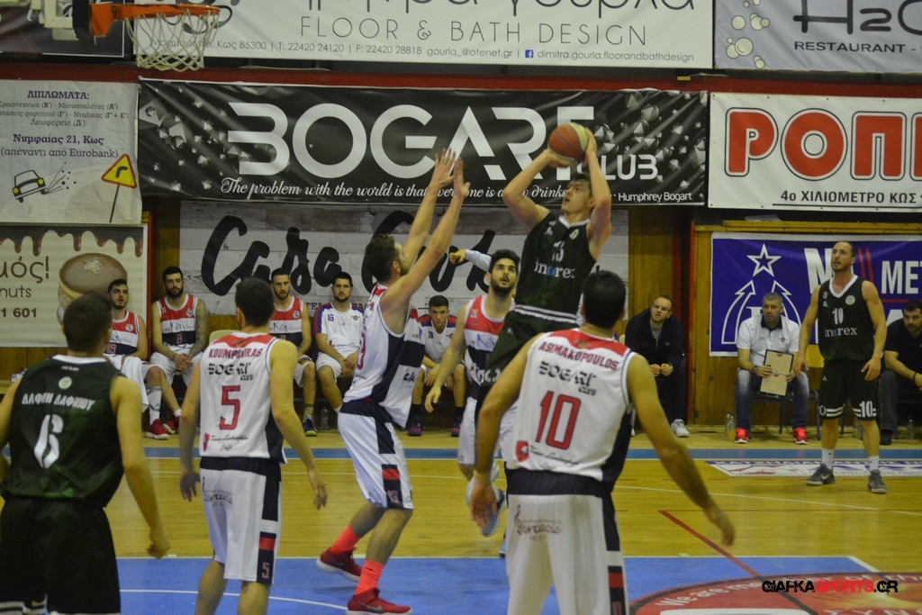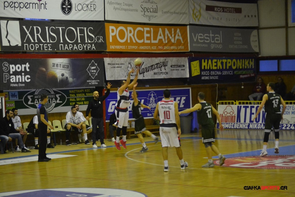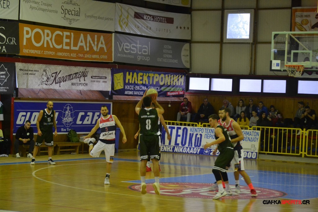 Με όπλο την εμπειρία των παικτών του και έχοντας κάθε δεκάλεπτο και ξεχωριστό πρωταγωνιστή, ο Ιπποκράτης πήρε το ροζ φύλλο αγώνα (την ίδια ώρα ο Διαγόρας Δρυοπιδέων κέρδιζε εκτός έδρας τον Πρωτέα Βούλας) και επέστρεψε στις νίκες, μετά την ήττα στη Νίκαια από τον τοπικό Ιωνικό. Η ομάδα του Χάρη Κουλουριώτη ήταν το απόλυτο «αφεντικό» του αγώνα, κάτι που φρόντισε να δείξει με το καλημέρα. Με αιχμή του δόρατος τον Ονάσογλου στο α’ δεκάλεπτο, οι Κώοι πήραν το προβάδισμα και μαζί μία σημαντική διαφορά (23-14). Στη συνέχεια τη σκυτάλη στο σκοράρισμα πήρε ο αρχηγός της ομάδας Αντώνης Ασημακόπουλος για να κλείσει το ημίχρονο με 47-35.