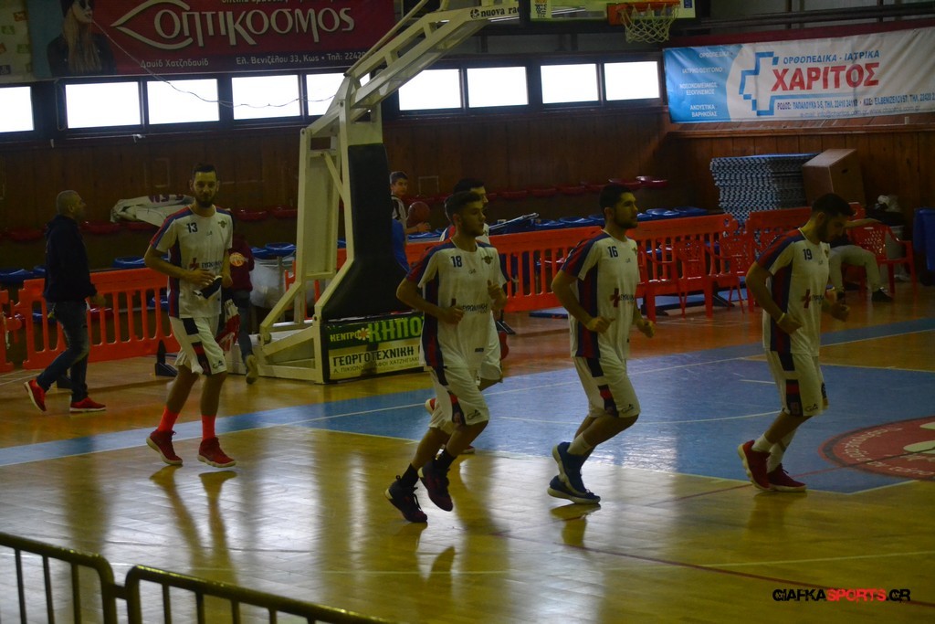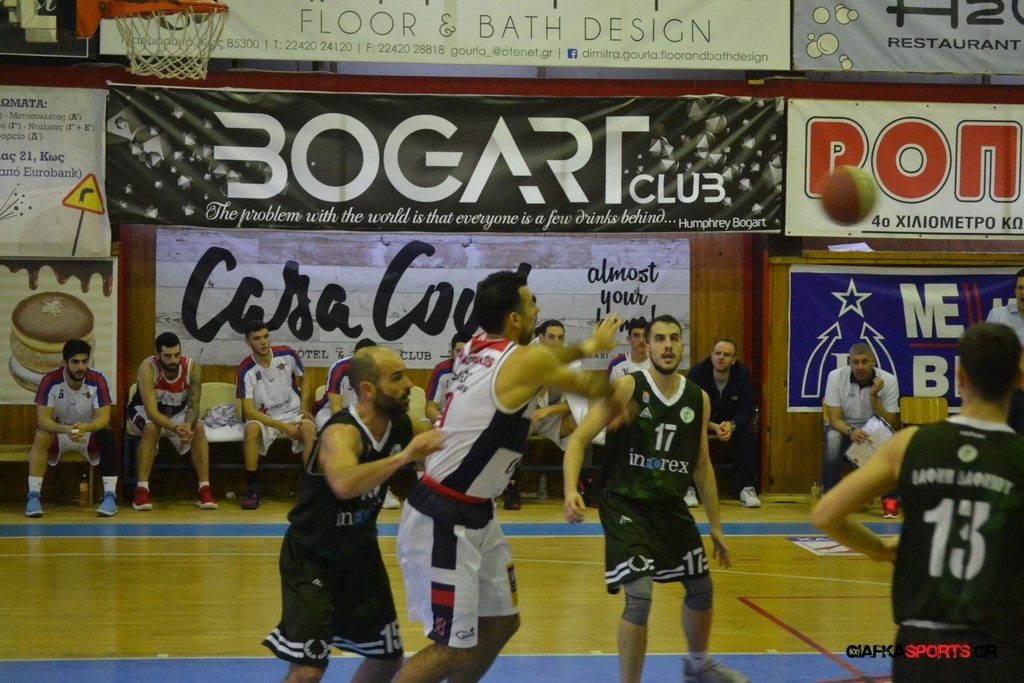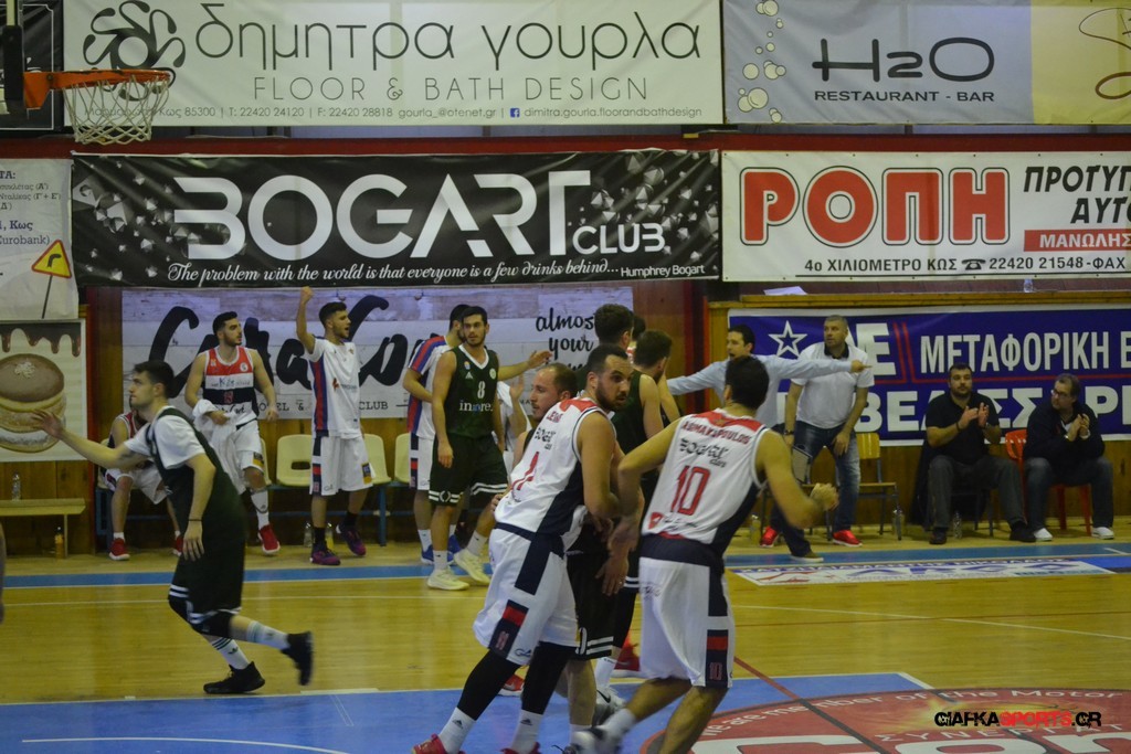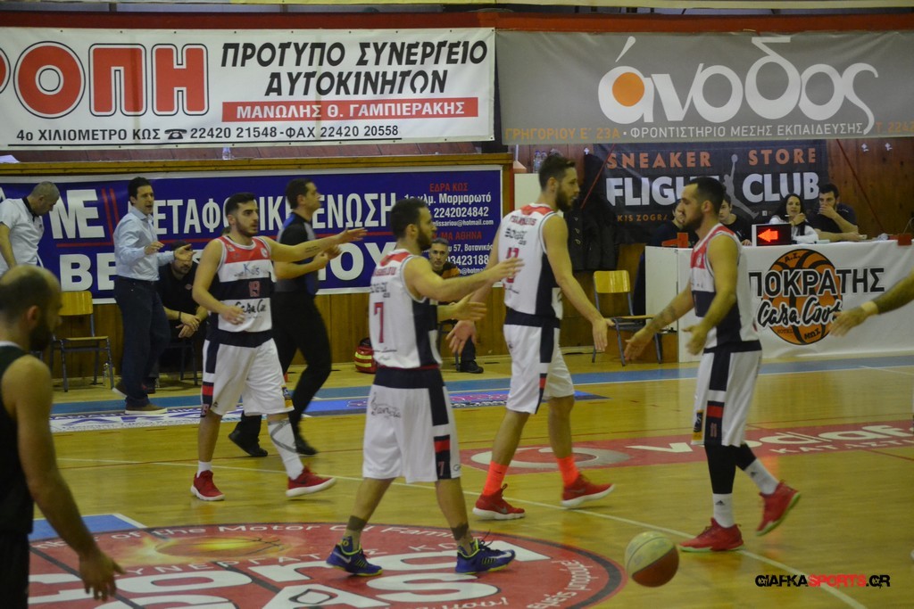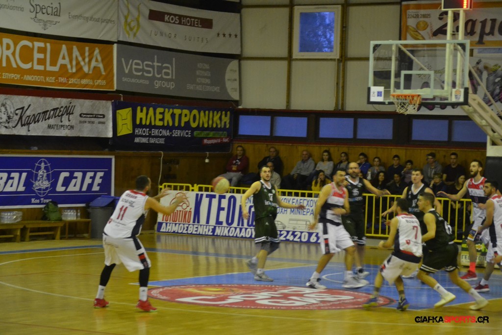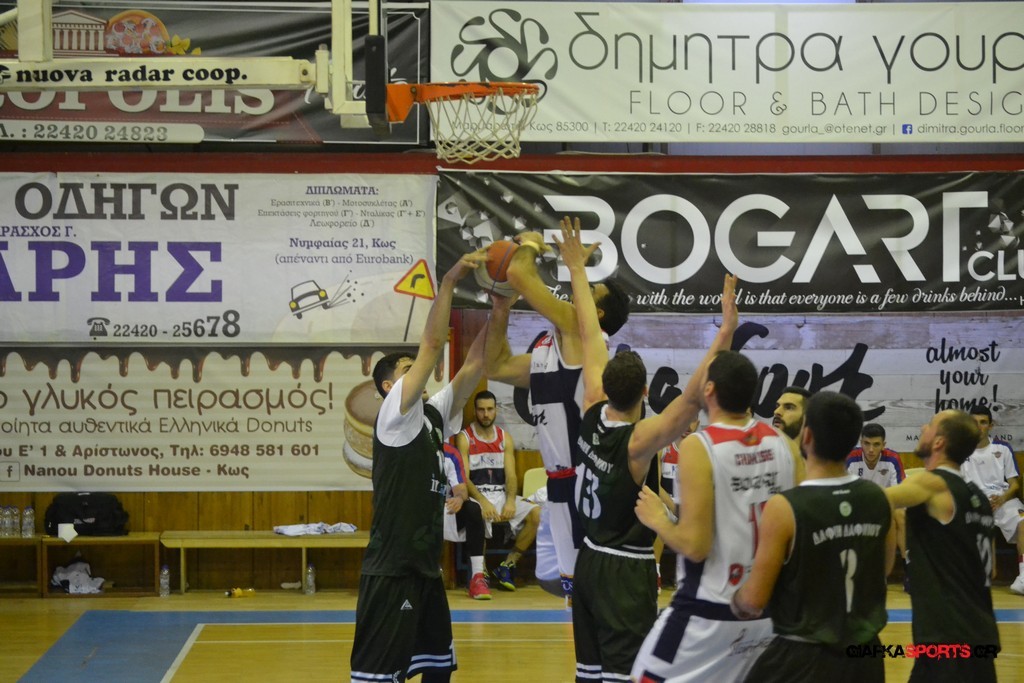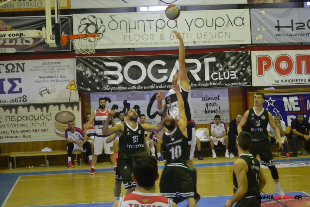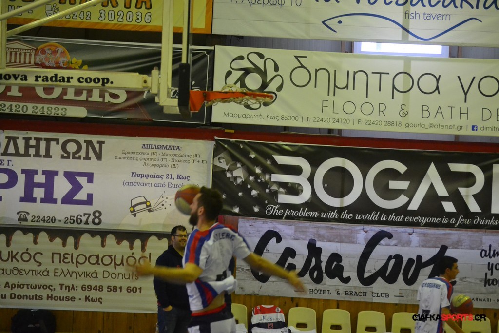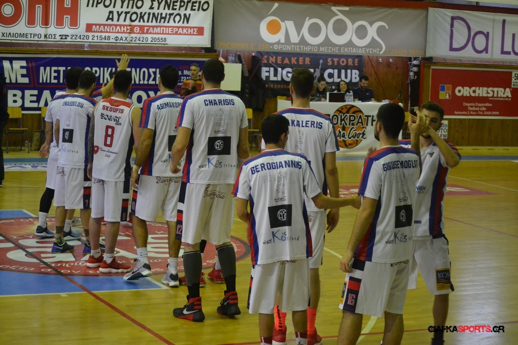 Με όπλο την εμπειρία των παικτών του και έχοντας κάθε δεκάλεπτο και ξεχωριστό πρωταγωνιστή, ο Ιπποκράτης πήρε το ροζ φύλλο αγώνα (την ίδια ώρα ο Διαγόρας Δρυοπιδέων κέρδιζε εκτός έδρας τον Πρωτέα Βούλας) και επέστρεψε στις νίκες, μετά την ήττα στη Νίκαια από τον τοπικό Ιωνικό. Η ομάδα του Χάρη Κουλουριώτη ήταν το απόλυτο «αφεντικό» του αγώνα, κάτι που φρόντισε να δείξει με το καλημέρα. Με αιχμή του δόρατος τον Ονάσογλου στο α’ δεκάλεπτο, οι Κώοι πήραν το προβάδισμα και μαζί μία σημαντική διαφορά (23-14). Στη συνέχεια τη σκυτάλη στο σκοράρισμα πήρε ο αρχηγός της ομάδας Αντώνης Ασημακόπουλος για να κλείσει το ημίχρονο με 47-35.