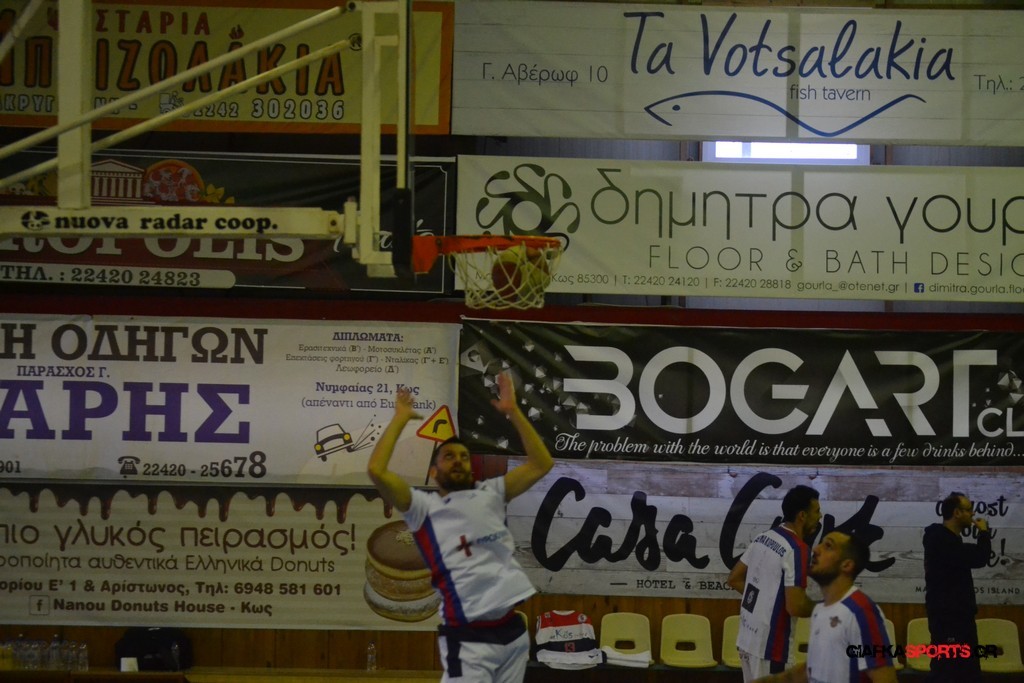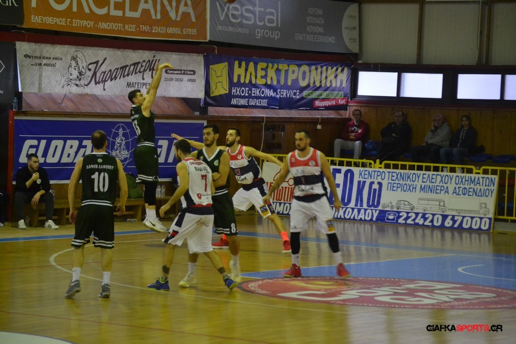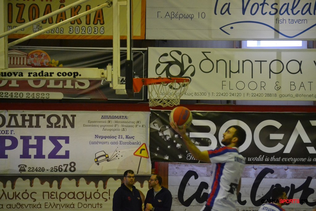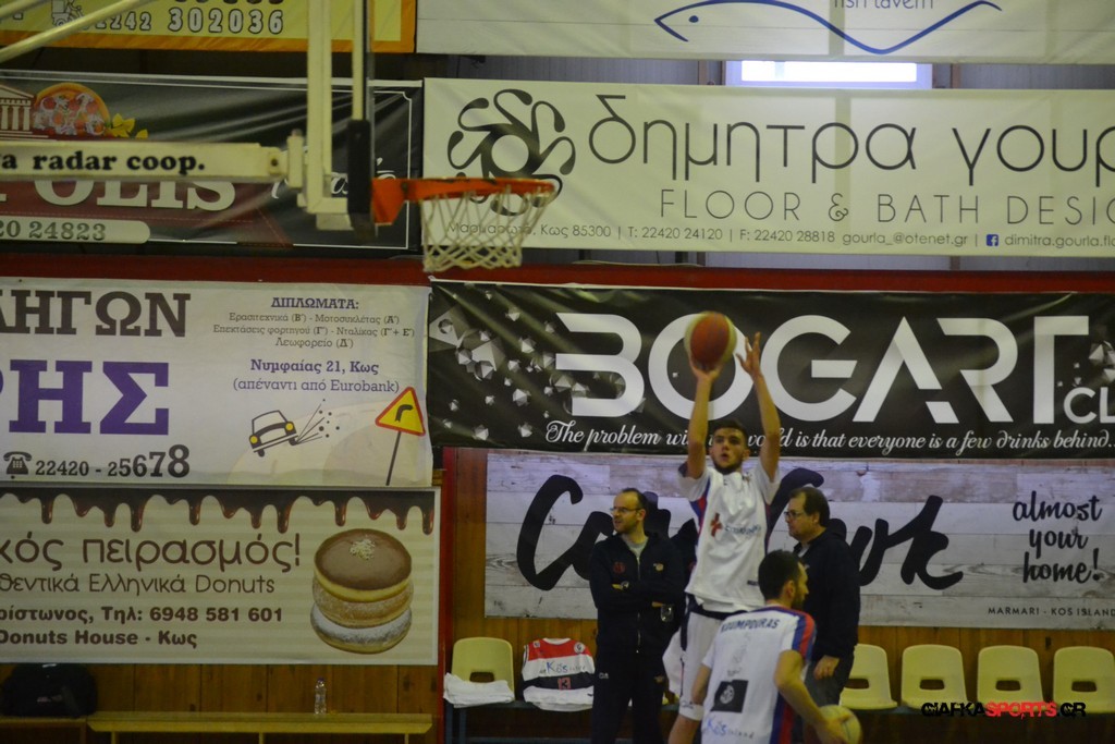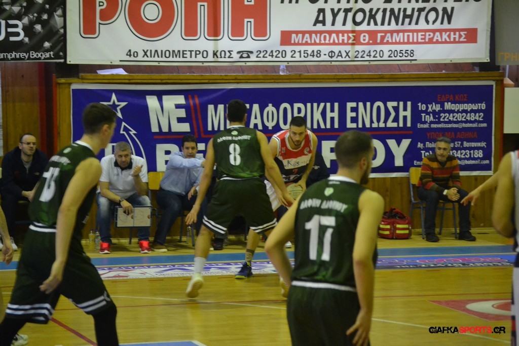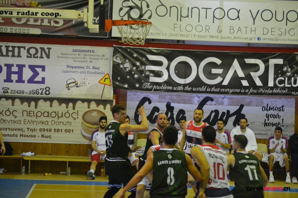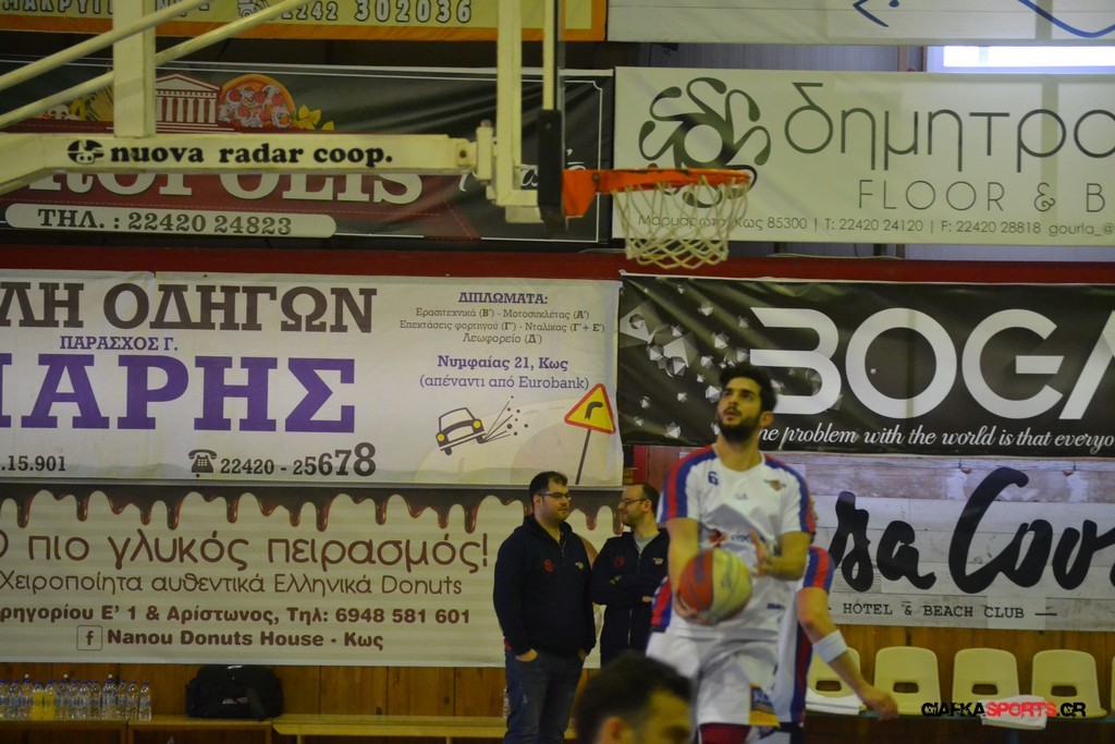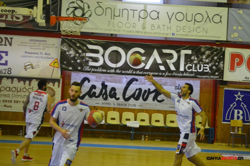 Με όπλο την εμπειρία των παικτών του και έχοντας κάθε δεκάλεπτο και ξεχωριστό πρωταγωνιστή, ο Ιπποκράτης πήρε το ροζ φύλλο αγώνα (την ίδια ώρα ο Διαγόρας Δρυοπιδέων κέρδιζε εκτός έδρας τον Πρωτέα Βούλας) και επέστρεψε στις νίκες, μετά την ήττα στη Νίκαια από τον τοπικό Ιωνικό. Η ομάδα του Χάρη Κουλουριώτη ήταν το απόλυτο «αφεντικό» του αγώνα, κάτι που φρόντισε να δείξει με το καλημέρα. Με αιχμή του δόρατος τον Ονάσογλου στο α’ δεκάλεπτο, οι Κώοι πήραν το προβάδισμα και μαζί μία σημαντική διαφορά (23-14). Στη συνέχεια τη σκυτάλη στο σκοράρισμα πήρε ο αρχηγός της ομάδας Αντώνης Ασημακόπουλος για να κλείσει το ημίχρονο με 47-35.