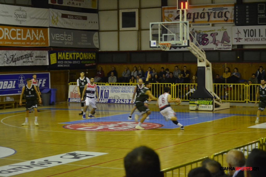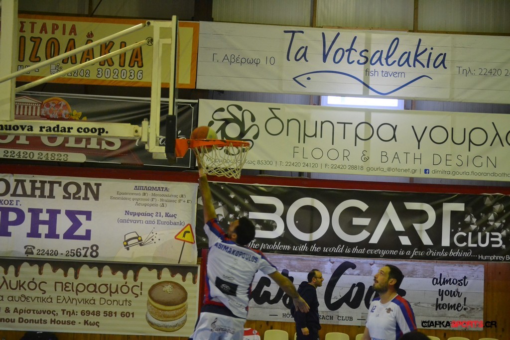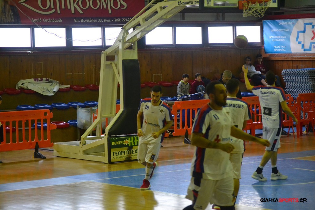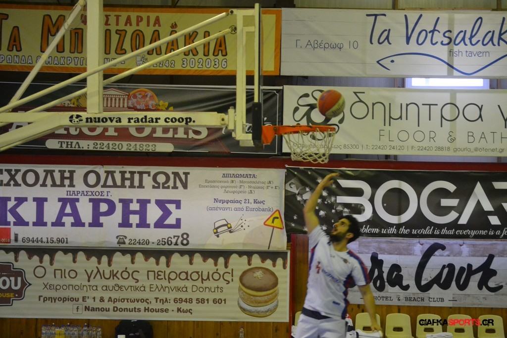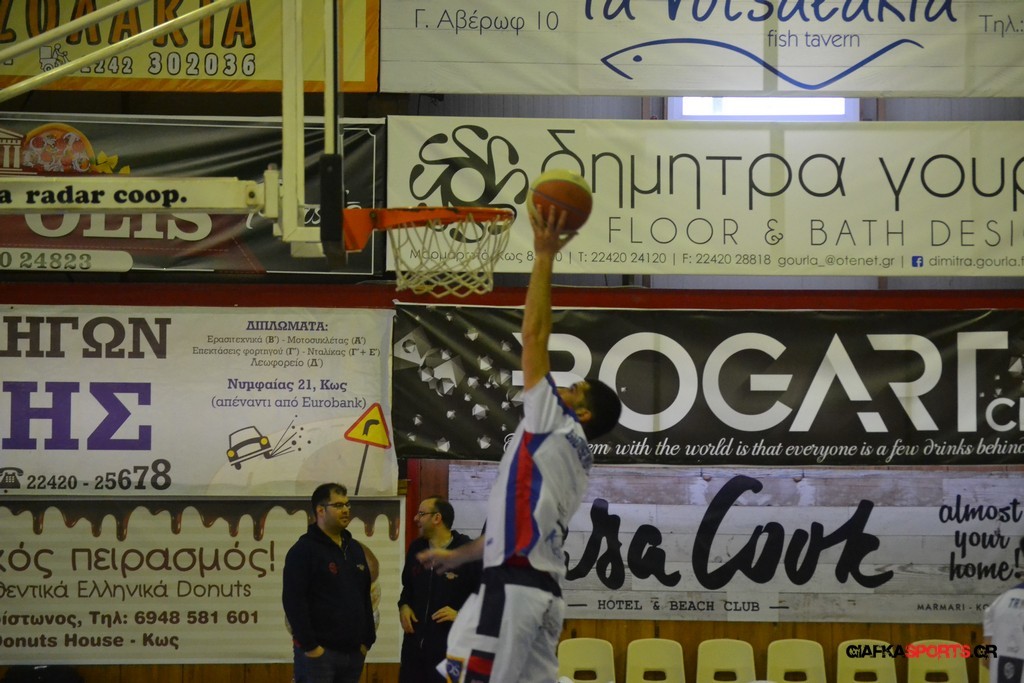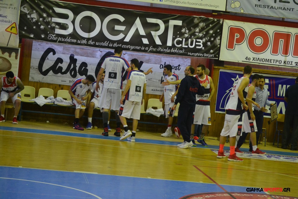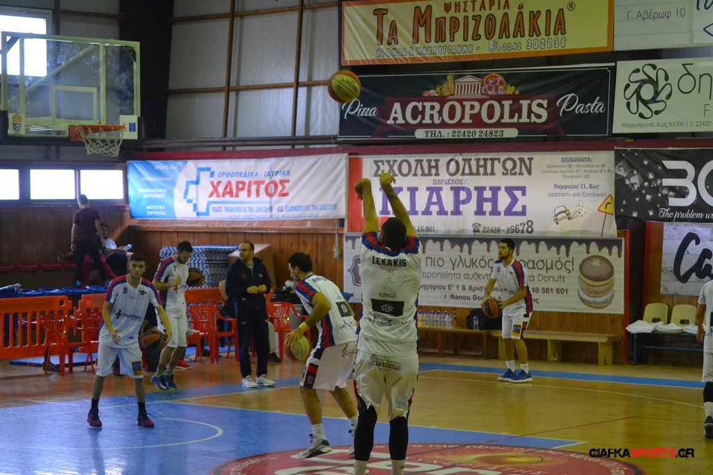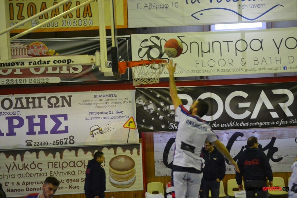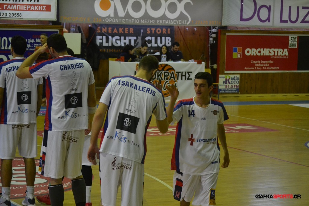 Με όπλο την εμπειρία των παικτών του και έχοντας κάθε δεκάλεπτο και ξεχωριστό πρωταγωνιστή, ο Ιπποκράτης πήρε το ροζ φύλλο αγώνα (την ίδια ώρα ο Διαγόρας Δρυοπιδέων κέρδιζε εκτός έδρας τον Πρωτέα Βούλας) και επέστρεψε στις νίκες, μετά την ήττα στη Νίκαια από τον τοπικό Ιωνικό. Η ομάδα του Χάρη Κουλουριώτη ήταν το απόλυτο «αφεντικό» του αγώνα, κάτι που φρόντισε να δείξει με το καλημέρα. Με αιχμή του δόρατος τον Ονάσογλου στο α’ δεκάλεπτο, οι Κώοι πήραν το προβάδισμα και μαζί μία σημαντική διαφορά (23-14). Στη συνέχεια τη σκυτάλη στο σκοράρισμα πήρε ο αρχηγός της ομάδας Αντώνης Ασημακόπουλος για να κλείσει το ημίχρονο με 47-35.