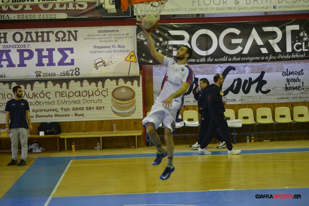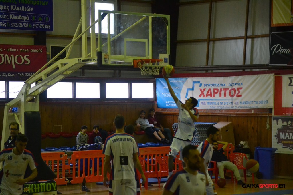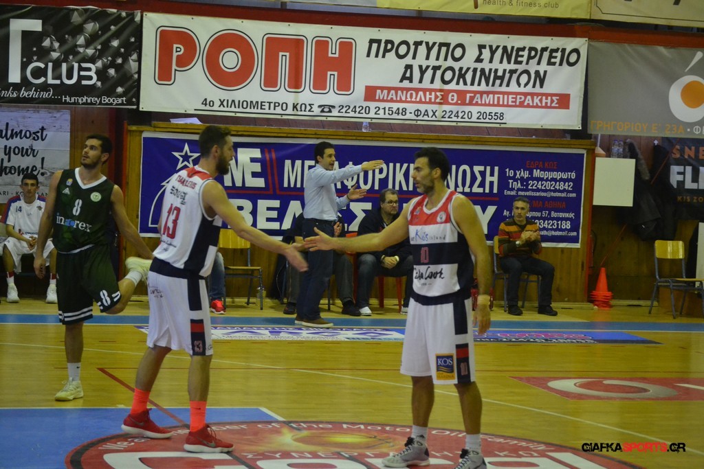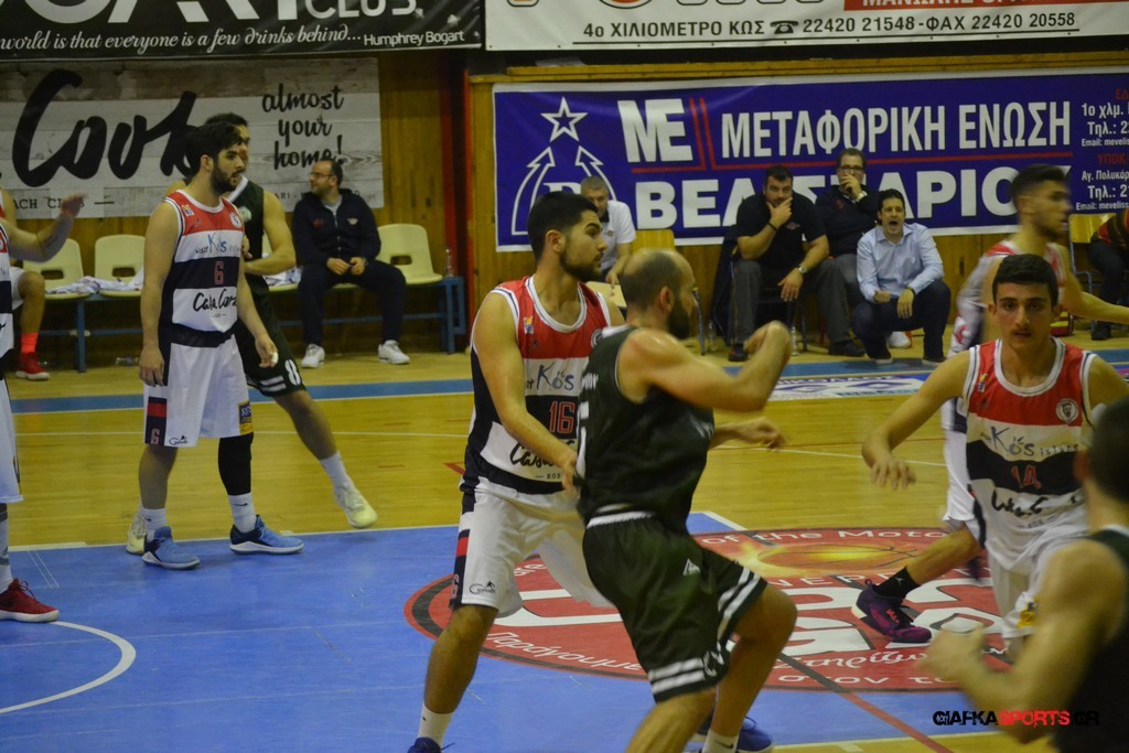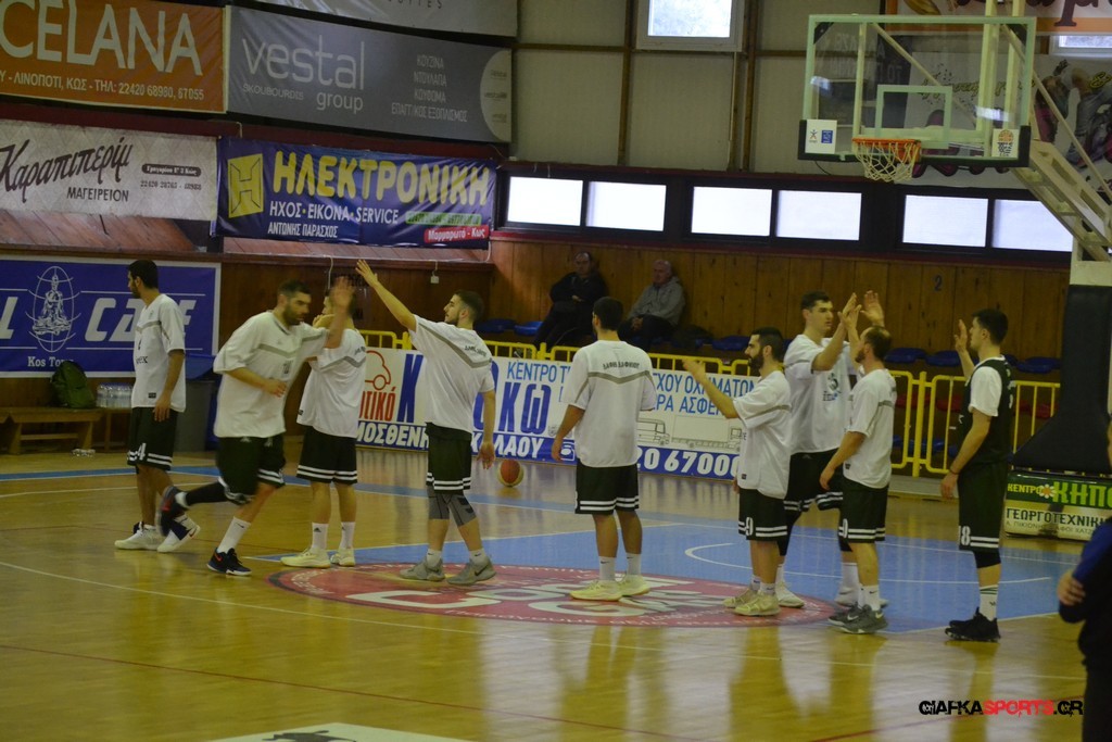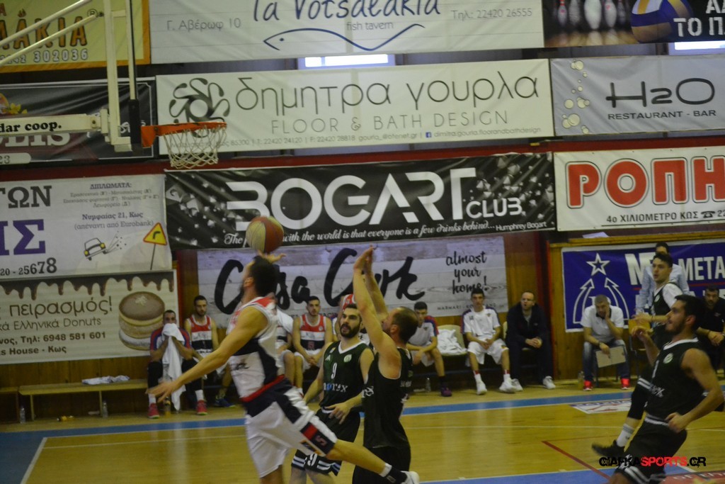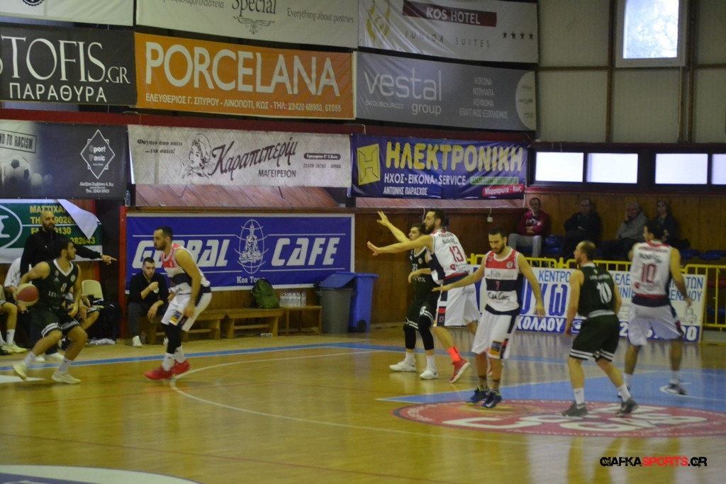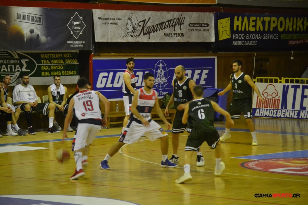 Με όπλο την εμπειρία των παικτών του και έχοντας κάθε δεκάλεπτο και ξεχωριστό πρωταγωνιστή, ο Ιπποκράτης πήρε το ροζ φύλλο αγώνα (την ίδια ώρα ο Διαγόρας Δρυοπιδέων κέρδιζε εκτός έδρας τον Πρωτέα Βούλας) και επέστρεψε στις νίκες, μετά την ήττα στη Νίκαια από τον τοπικό Ιωνικό. Η ομάδα του Χάρη Κουλουριώτη ήταν το απόλυτο «αφεντικό» του αγώνα, κάτι που φρόντισε να δείξει με το καλημέρα. Με αιχμή του δόρατος τον Ονάσογλου στο α’ δεκάλεπτο, οι Κώοι πήραν το προβάδισμα και μαζί μία σημαντική διαφορά (23-14). Στη συνέχεια τη σκυτάλη στο σκοράρισμα πήρε ο αρχηγός της ομάδας Αντώνης Ασημακόπουλος για να κλείσει το ημίχρονο με 47-35.