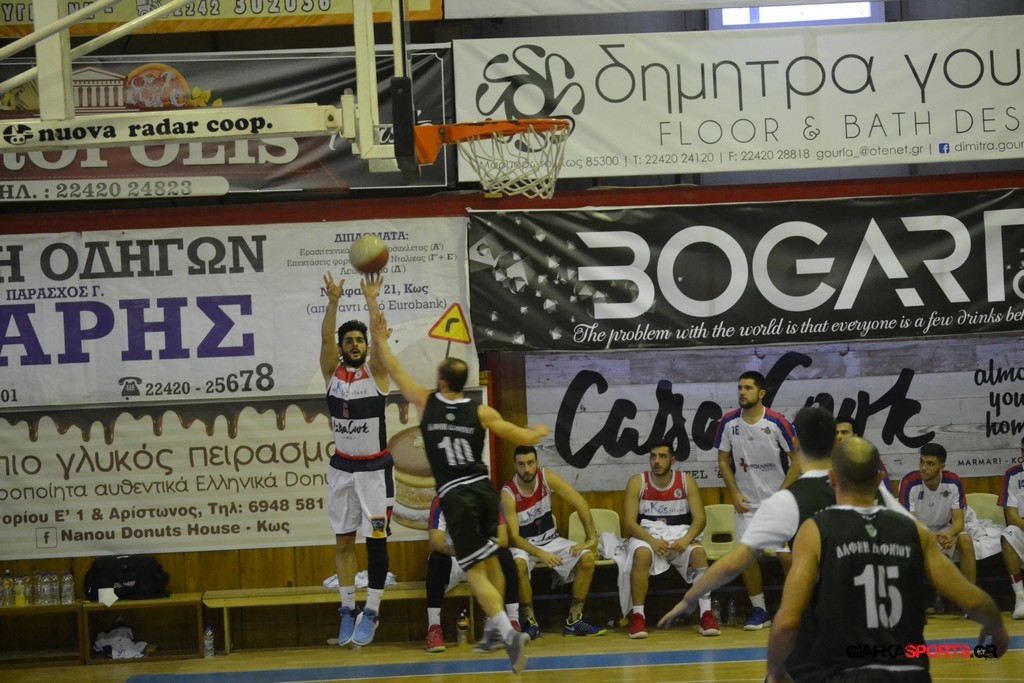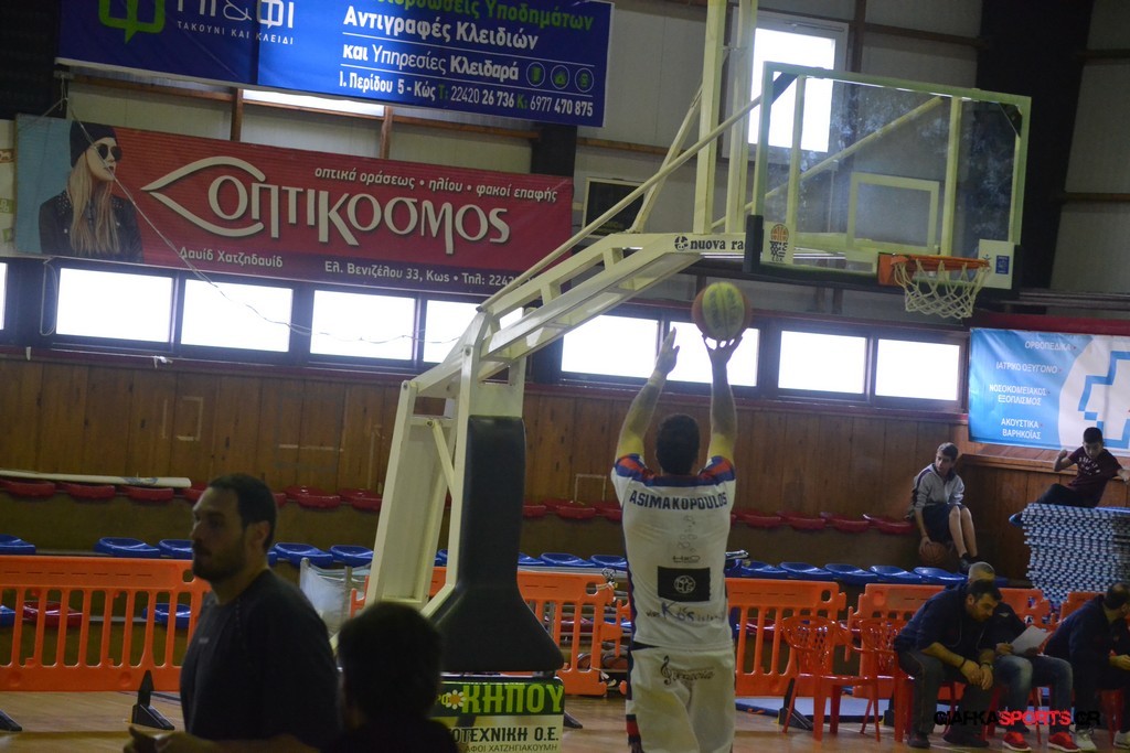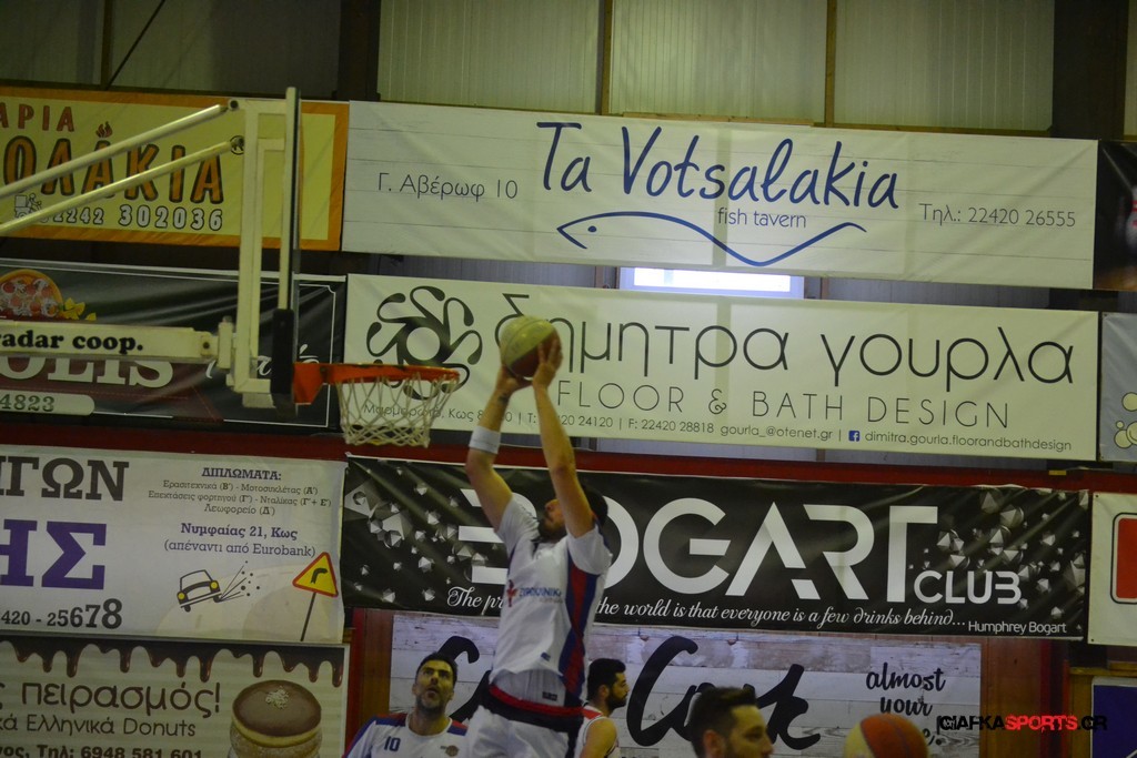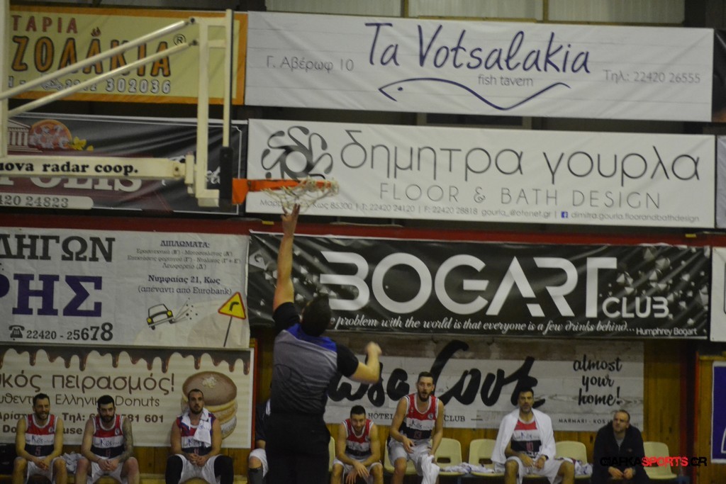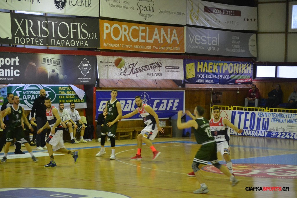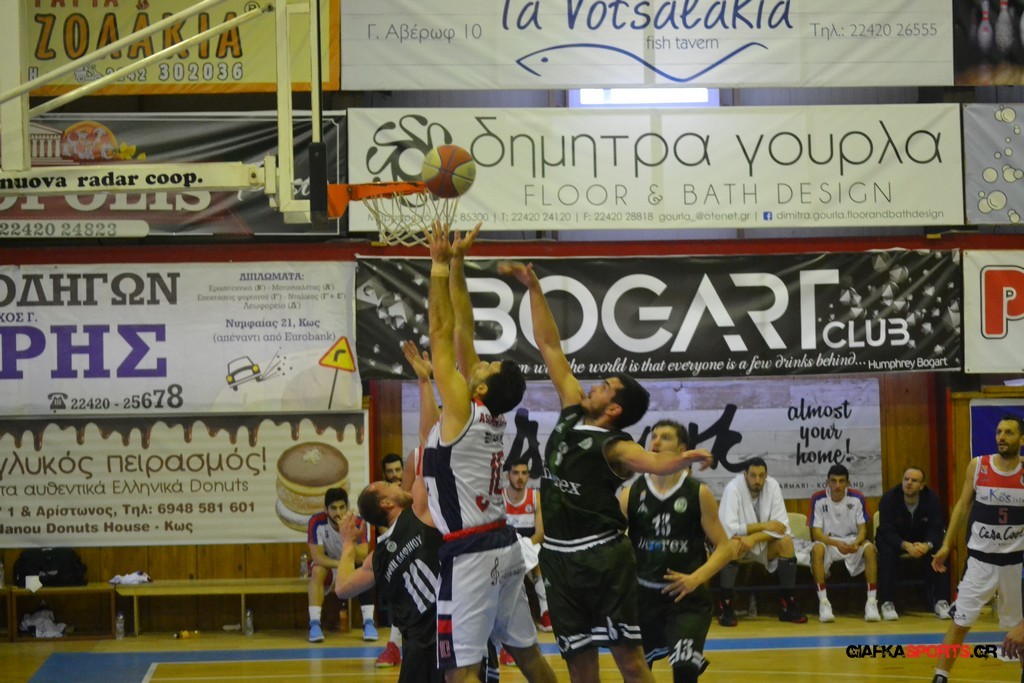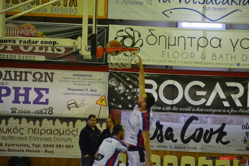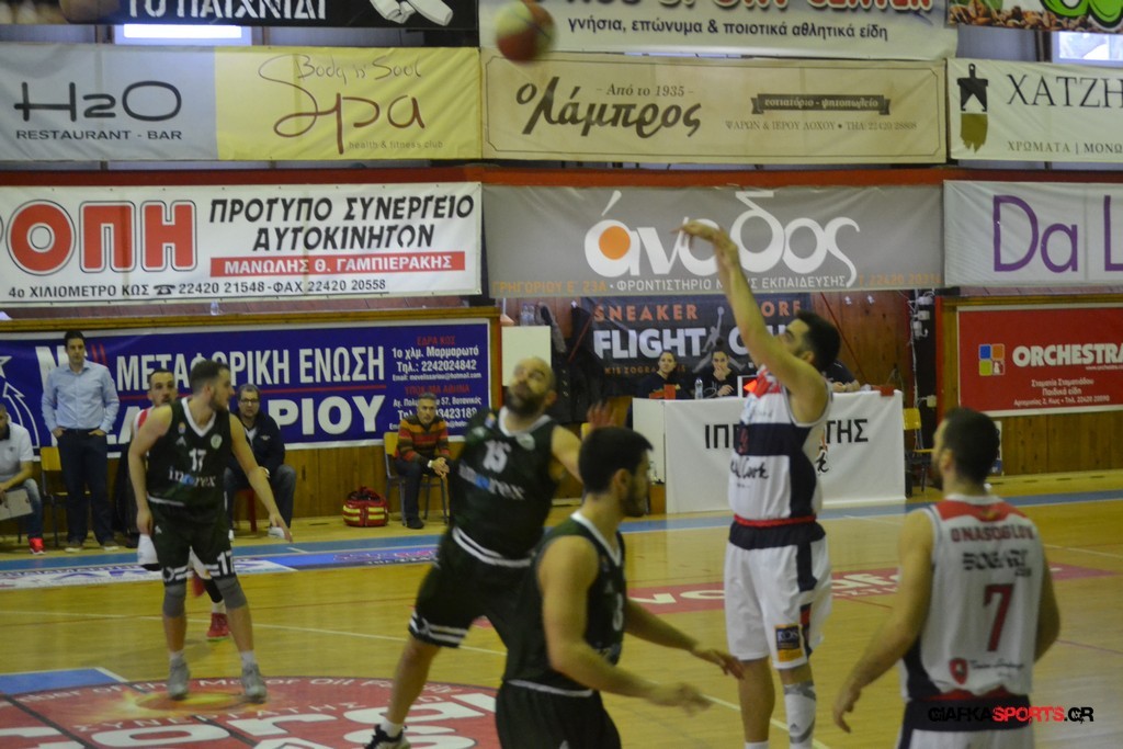 Με όπλο την εμπειρία των παικτών του και έχοντας κάθε δεκάλεπτο και ξεχωριστό πρωταγωνιστή, ο Ιπποκράτης πήρε το ροζ φύλλο αγώνα (την ίδια ώρα ο Διαγόρας Δρυοπιδέων κέρδιζε εκτός έδρας τον Πρωτέα Βούλας) και επέστρεψε στις νίκες, μετά την ήττα στη Νίκαια από τον τοπικό Ιωνικό. Η ομάδα του Χάρη Κουλουριώτη ήταν το απόλυτο «αφεντικό» του αγώνα, κάτι που φρόντισε να δείξει με το καλημέρα. Με αιχμή του δόρατος τον Ονάσογλου στο α’ δεκάλεπτο, οι Κώοι πήραν το προβάδισμα και μαζί μία σημαντική διαφορά (23-14). Στη συνέχεια τη σκυτάλη στο σκοράρισμα πήρε ο αρχηγός της ομάδας Αντώνης Ασημακόπουλος για να κλείσει το ημίχρονο με 47-35.