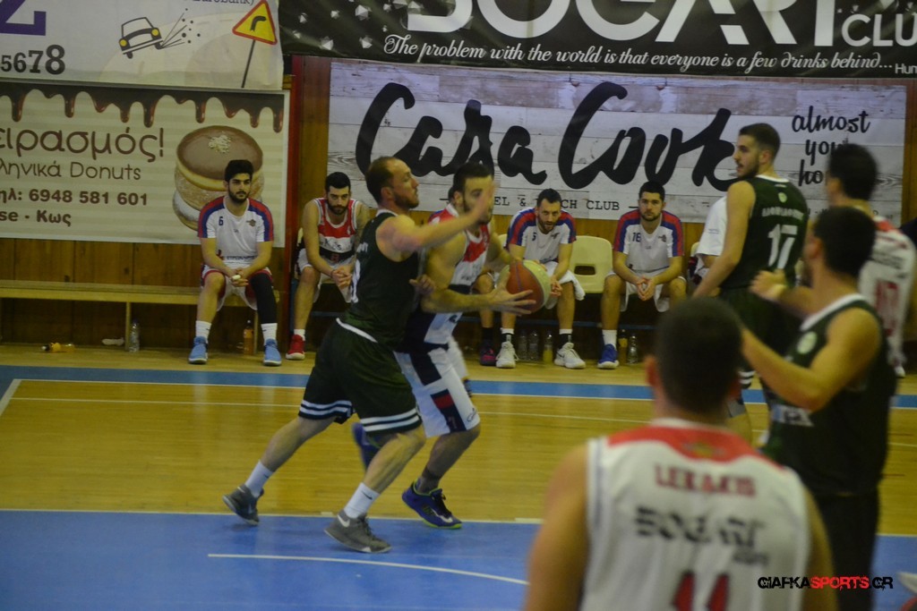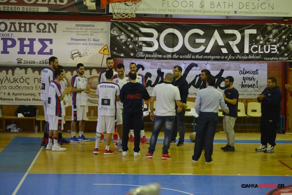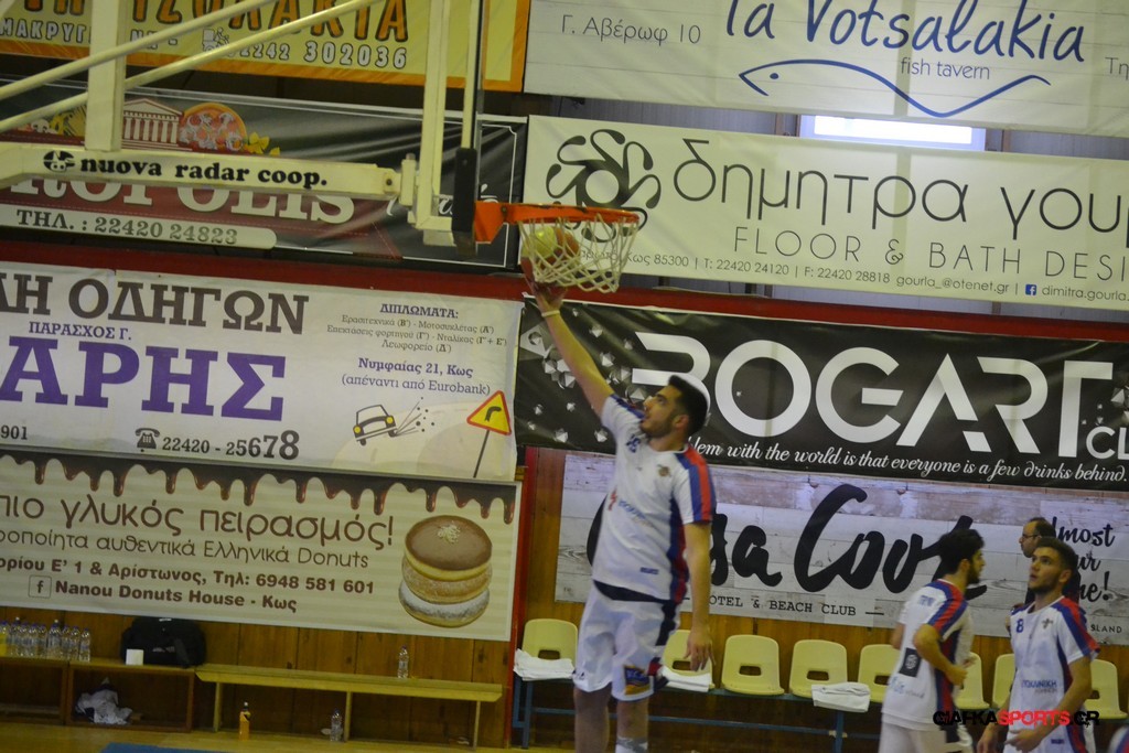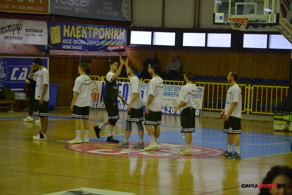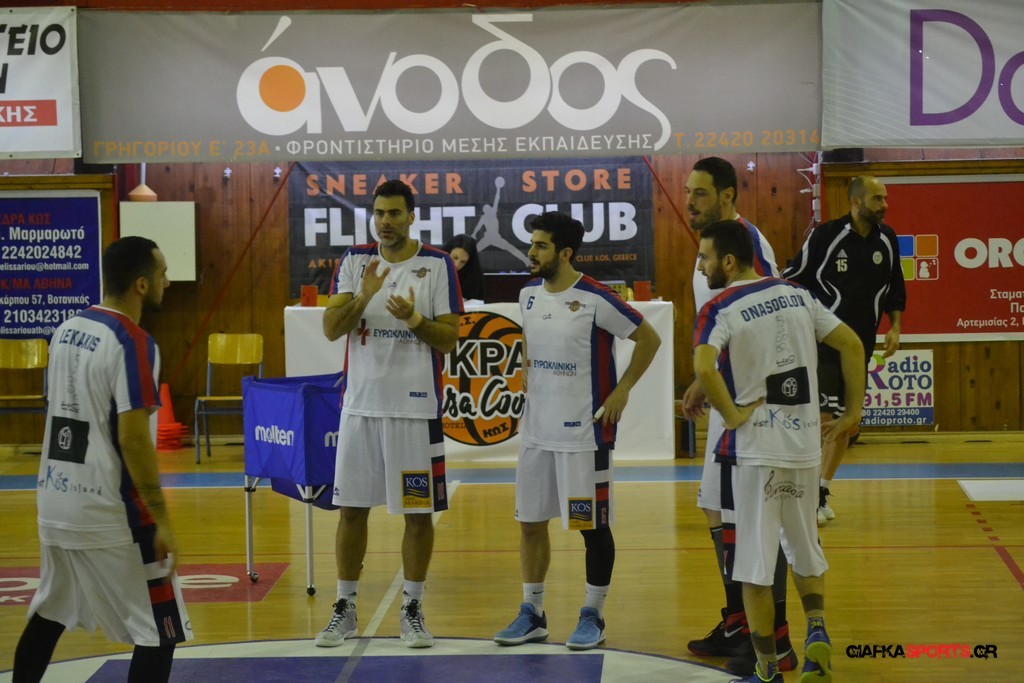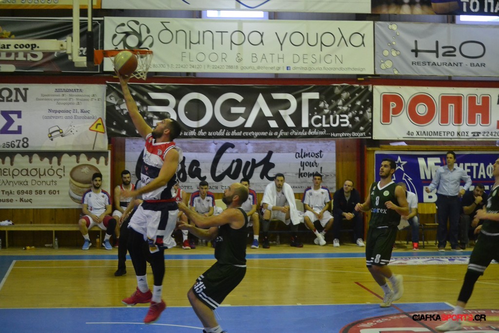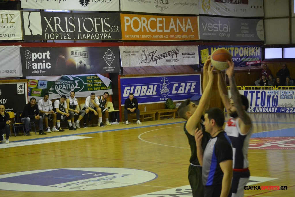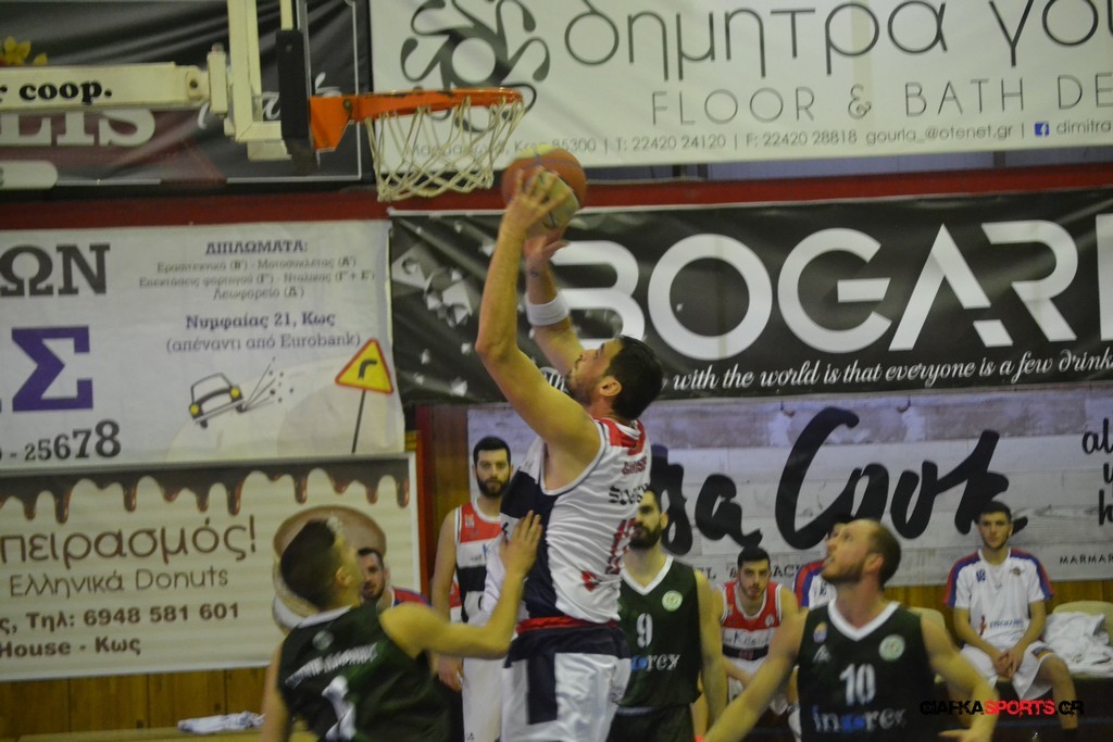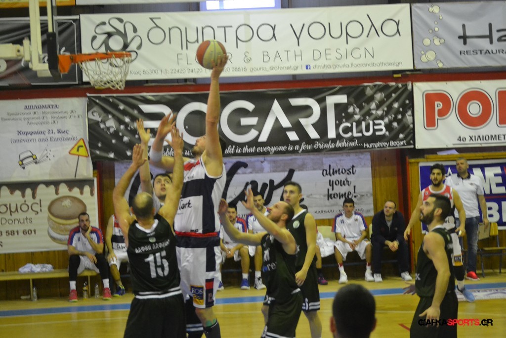 Με όπλο την εμπειρία των παικτών του και έχοντας κάθε δεκάλεπτο και ξεχωριστό πρωταγωνιστή, ο Ιπποκράτης πήρε το ροζ φύλλο αγώνα (την ίδια ώρα ο Διαγόρας Δρυοπιδέων κέρδιζε εκτός έδρας τον Πρωτέα Βούλας) και επέστρεψε στις νίκες, μετά την ήττα στη Νίκαια από τον τοπικό Ιωνικό. Η ομάδα του Χάρη Κουλουριώτη ήταν το απόλυτο «αφεντικό» του αγώνα, κάτι που φρόντισε να δείξει με το καλημέρα. Με αιχμή του δόρατος τον Ονάσογλου στο α’ δεκάλεπτο, οι Κώοι πήραν το προβάδισμα και μαζί μία σημαντική διαφορά (23-14). Στη συνέχεια τη σκυτάλη στο σκοράρισμα πήρε ο αρχηγός της ομάδας Αντώνης Ασημακόπουλος για να κλείσει το ημίχρονο με 47-35.