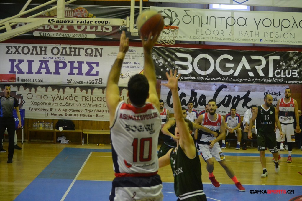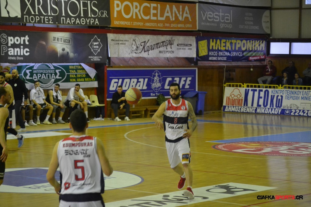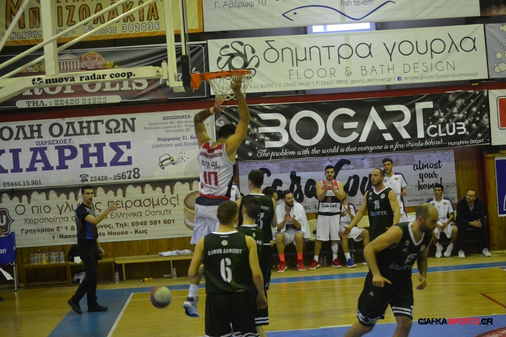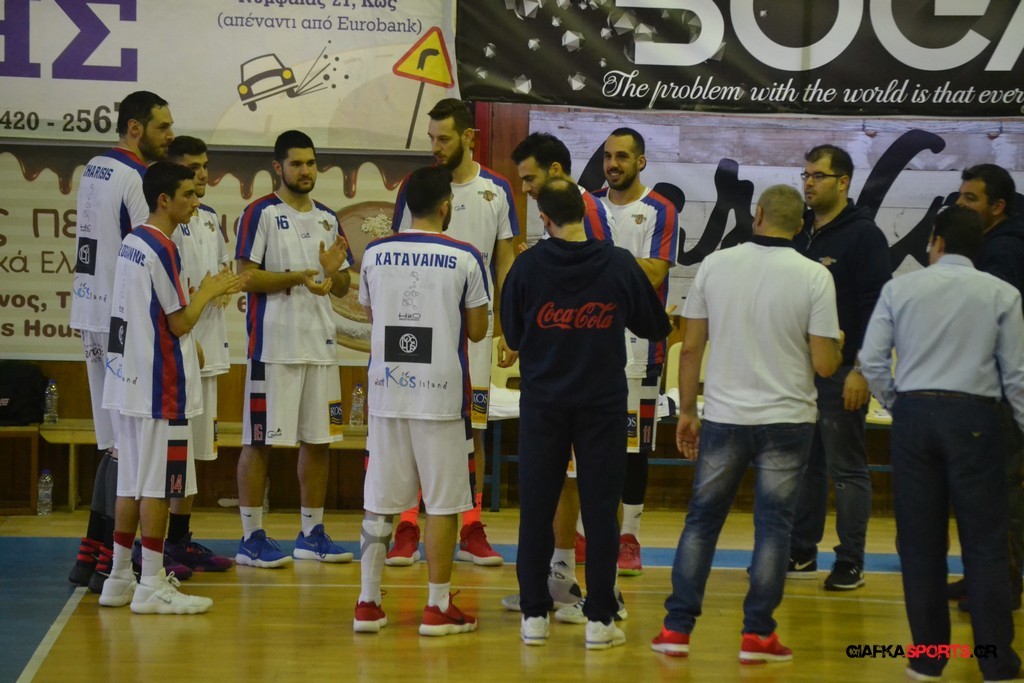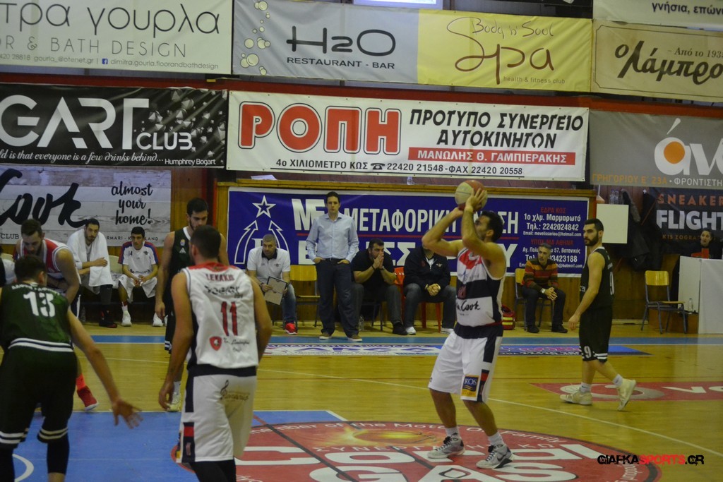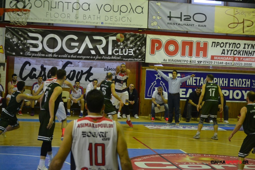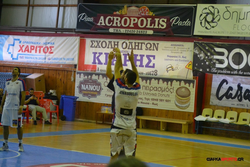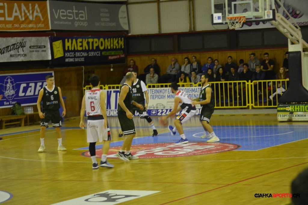 Με όπλο την εμπειρία των παικτών του και έχοντας κάθε δεκάλεπτο και ξεχωριστό πρωταγωνιστή, ο Ιπποκράτης πήρε το ροζ φύλλο αγώνα (την ίδια ώρα ο Διαγόρας Δρυοπιδέων κέρδιζε εκτός έδρας τον Πρωτέα Βούλας) και επέστρεψε στις νίκες, μετά την ήττα στη Νίκαια από τον τοπικό Ιωνικό. Η ομάδα του Χάρη Κουλουριώτη ήταν το απόλυτο «αφεντικό» του αγώνα, κάτι που φρόντισε να δείξει με το καλημέρα. Με αιχμή του δόρατος τον Ονάσογλου στο α’ δεκάλεπτο, οι Κώοι πήραν το προβάδισμα και μαζί μία σημαντική διαφορά (23-14). Στη συνέχεια τη σκυτάλη στο σκοράρισμα πήρε ο αρχηγός της ομάδας Αντώνης Ασημακόπουλος για να κλείσει το ημίχρονο με 47-35.