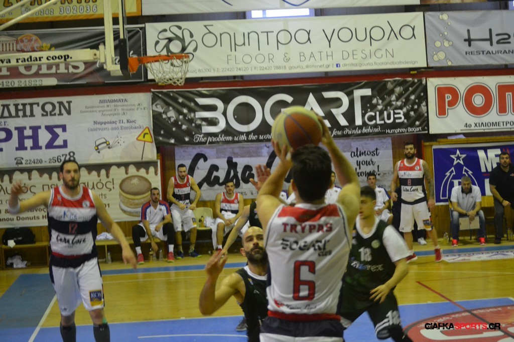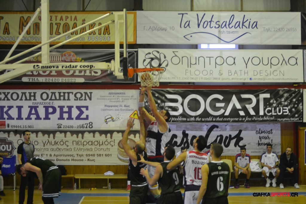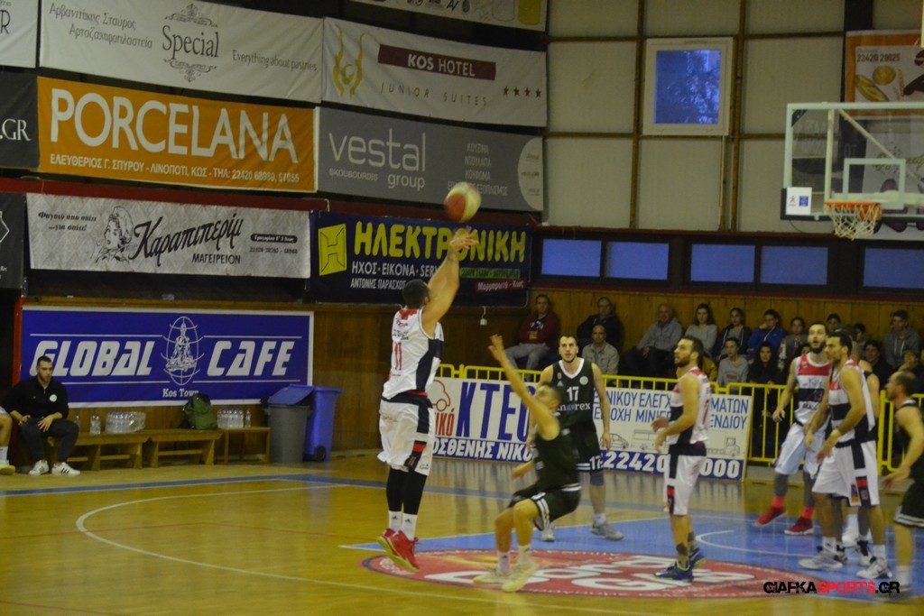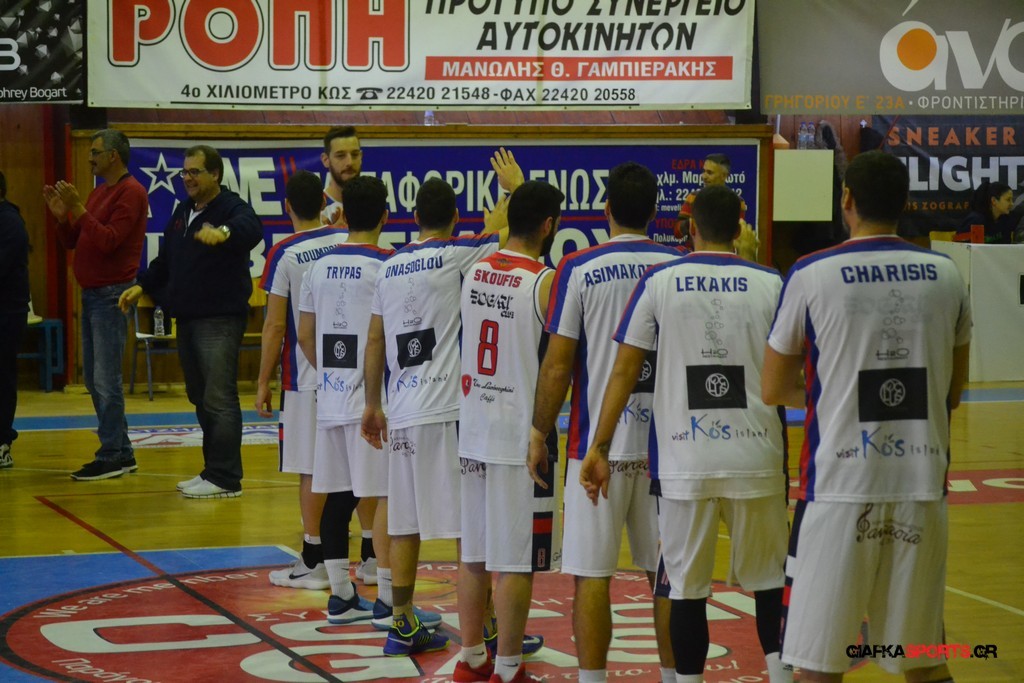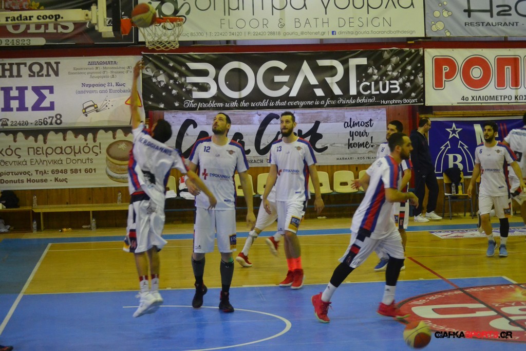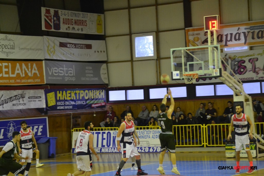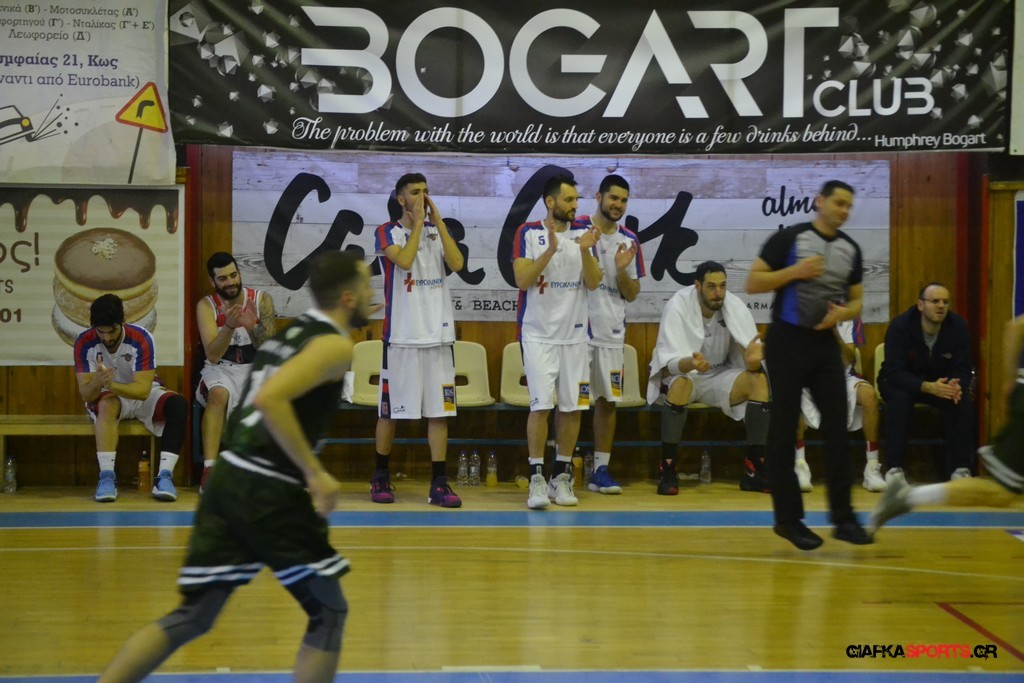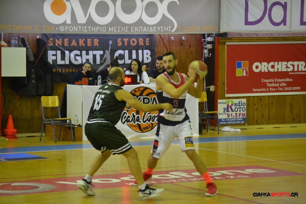 Με όπλο την εμπειρία των παικτών του και έχοντας κάθε δεκάλεπτο και ξεχωριστό πρωταγωνιστή, ο Ιπποκράτης πήρε το ροζ φύλλο αγώνα (την ίδια ώρα ο Διαγόρας Δρυοπιδέων κέρδιζε εκτός έδρας τον Πρωτέα Βούλας) και επέστρεψε στις νίκες, μετά την ήττα στη Νίκαια από τον τοπικό Ιωνικό. Η ομάδα του Χάρη Κουλουριώτη ήταν το απόλυτο «αφεντικό» του αγώνα, κάτι που φρόντισε να δείξει με το καλημέρα. Με αιχμή του δόρατος τον Ονάσογλου στο α’ δεκάλεπτο, οι Κώοι πήραν το προβάδισμα και μαζί μία σημαντική διαφορά (23-14). Στη συνέχεια τη σκυτάλη στο σκοράρισμα πήρε ο αρχηγός της ομάδας Αντώνης Ασημακόπουλος για να κλείσει το ημίχρονο με 47-35.