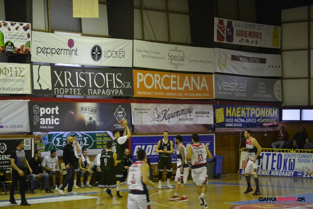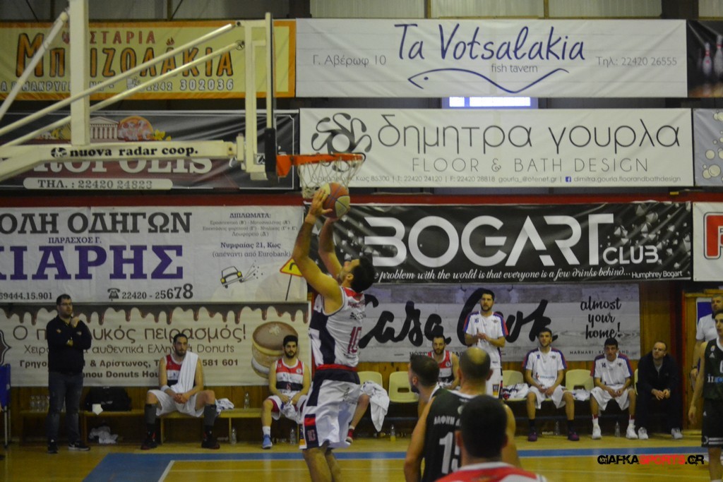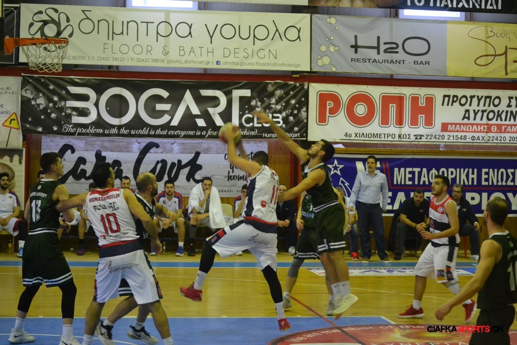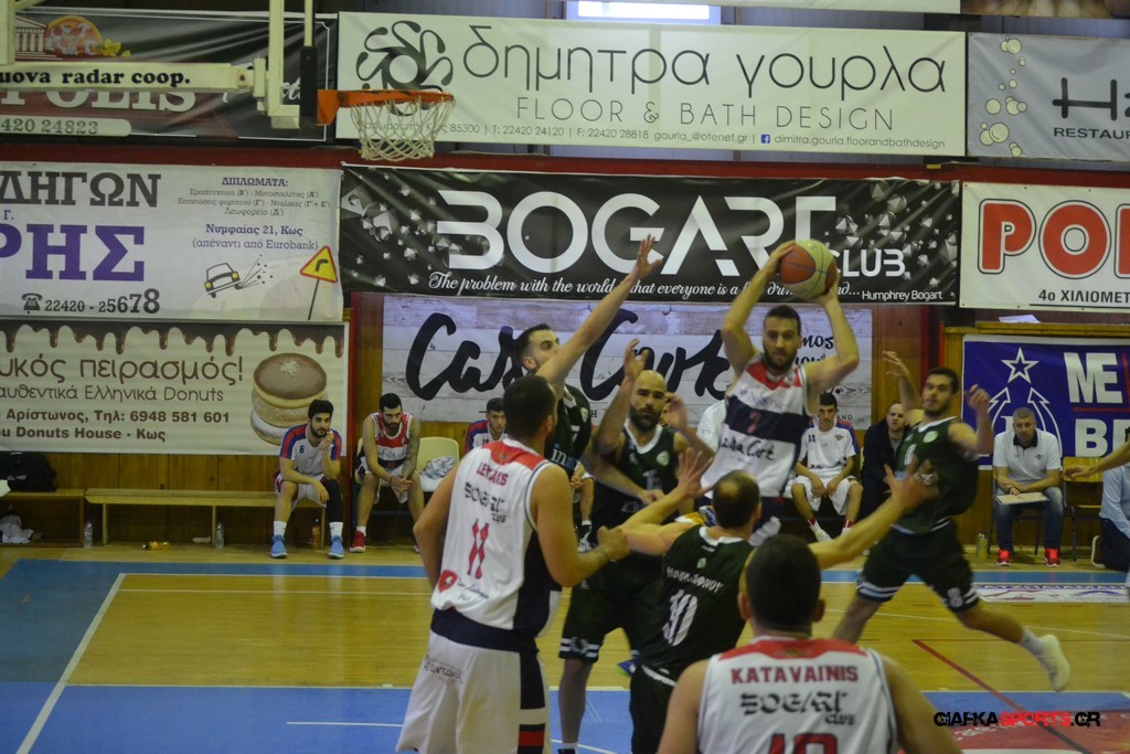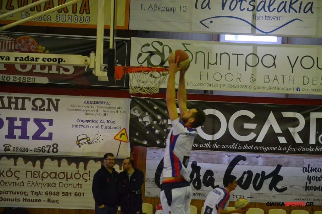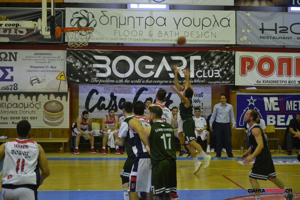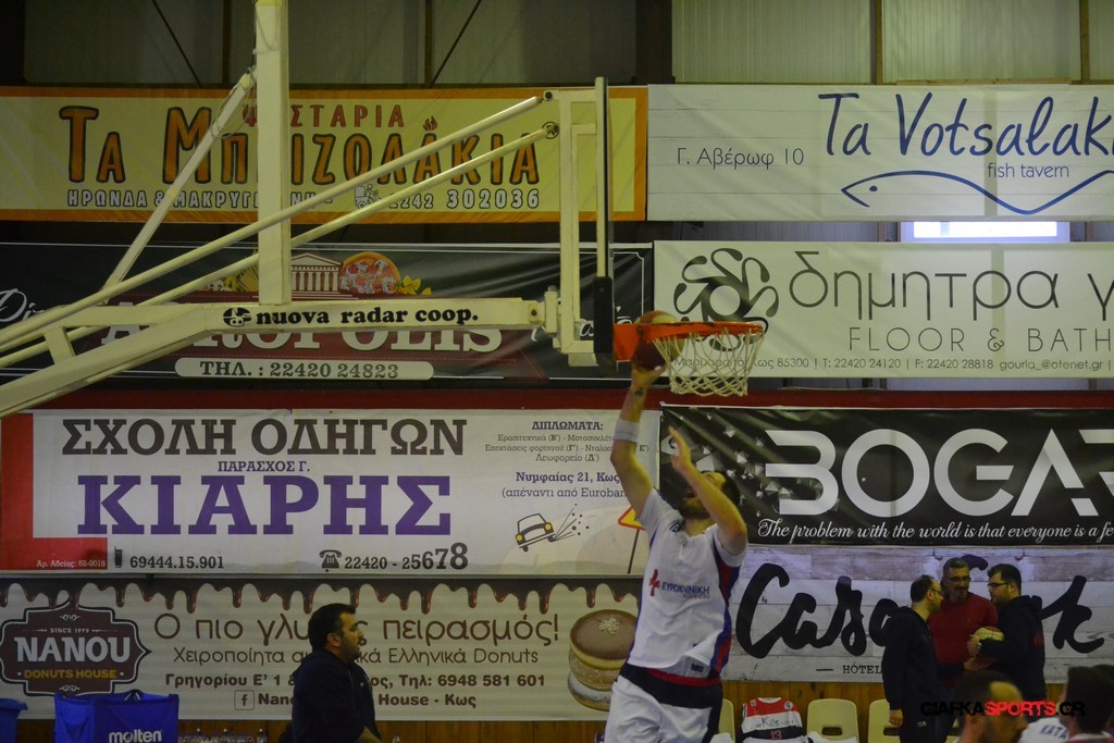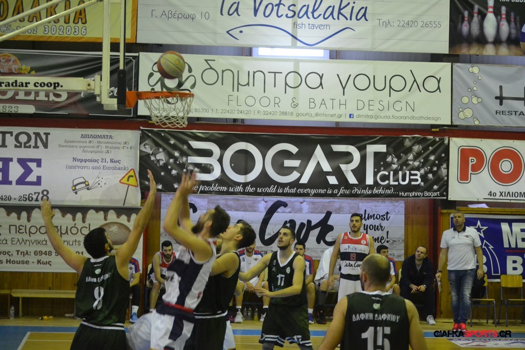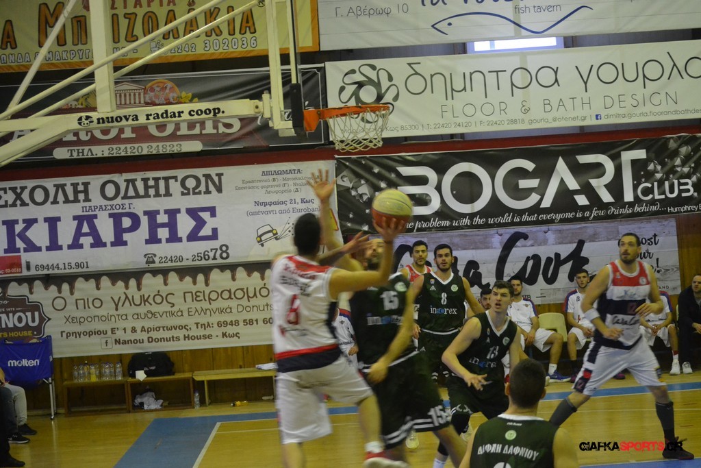 Με όπλο την εμπειρία των παικτών του και έχοντας κάθε δεκάλεπτο και ξεχωριστό πρωταγωνιστή, ο Ιπποκράτης πήρε το ροζ φύλλο αγώνα (την ίδια ώρα ο Διαγόρας Δρυοπιδέων κέρδιζε εκτός έδρας τον Πρωτέα Βούλας) και επέστρεψε στις νίκες, μετά την ήττα στη Νίκαια από τον τοπικό Ιωνικό. Η ομάδα του Χάρη Κουλουριώτη ήταν το απόλυτο «αφεντικό» του αγώνα, κάτι που φρόντισε να δείξει με το καλημέρα. Με αιχμή του δόρατος τον Ονάσογλου στο α’ δεκάλεπτο, οι Κώοι πήραν το προβάδισμα και μαζί μία σημαντική διαφορά (23-14). Στη συνέχεια τη σκυτάλη στο σκοράρισμα πήρε ο αρχηγός της ομάδας Αντώνης Ασημακόπουλος για να κλείσει το ημίχρονο με 47-35.
