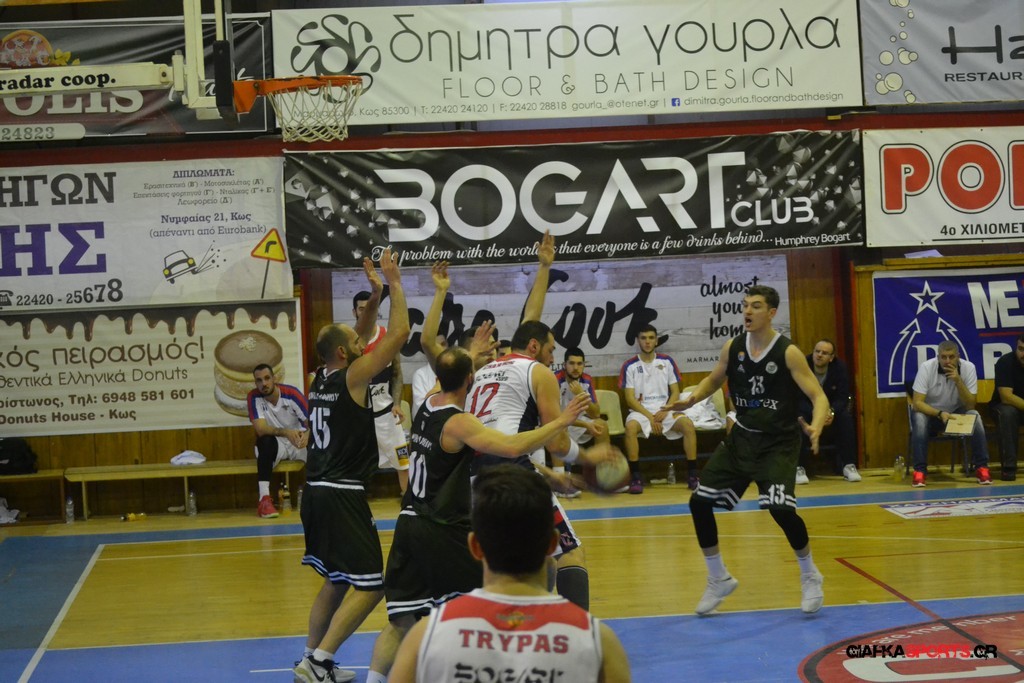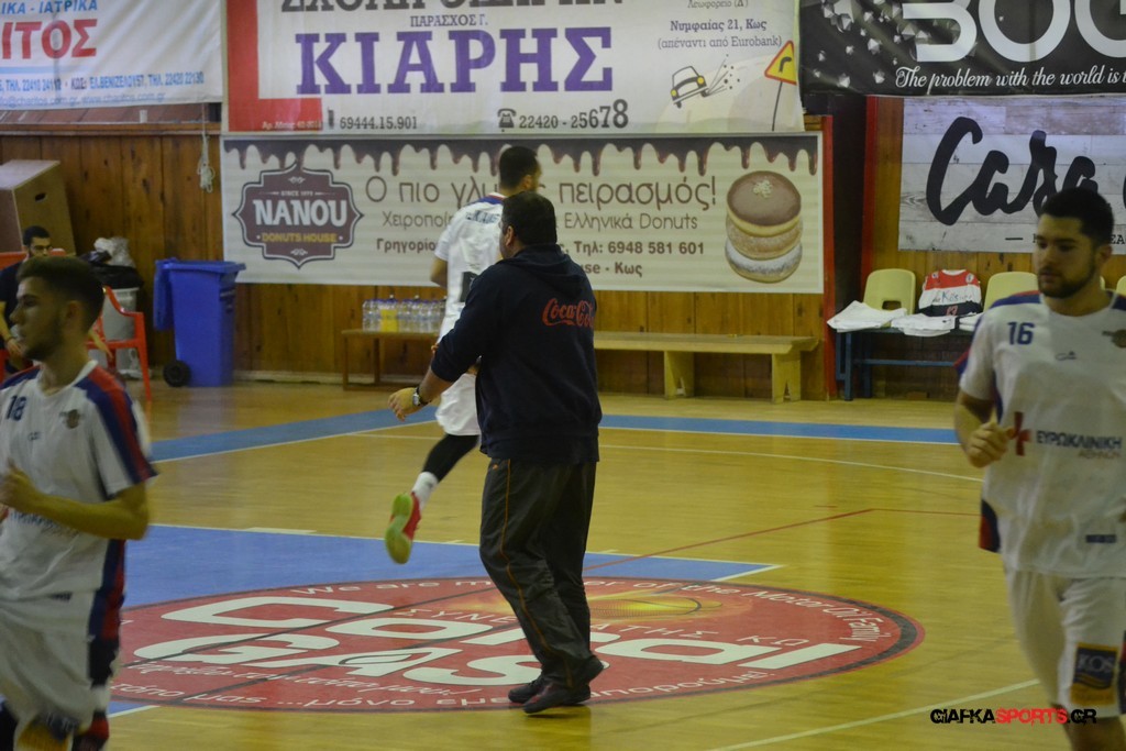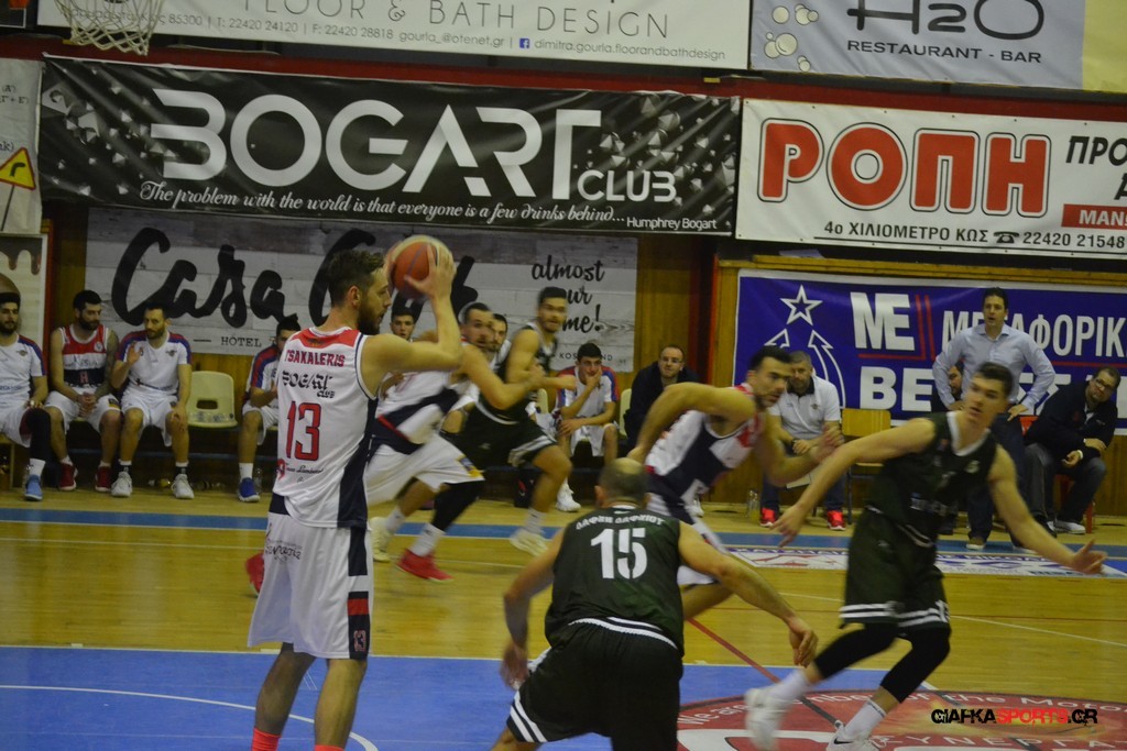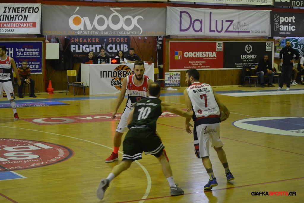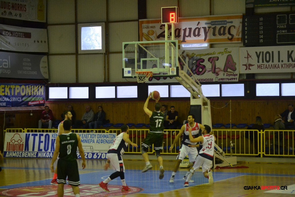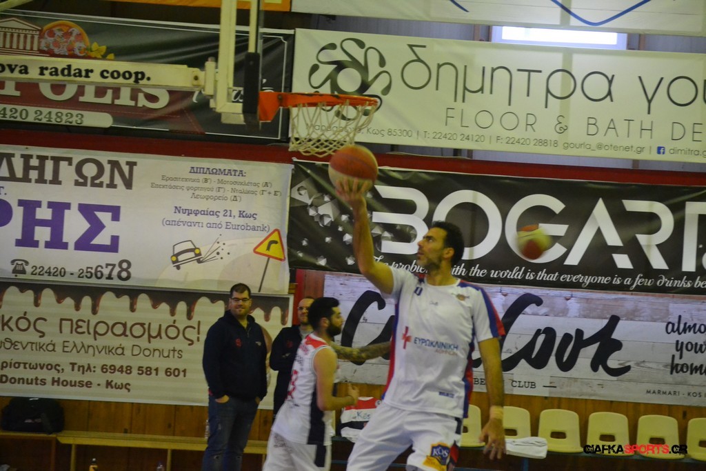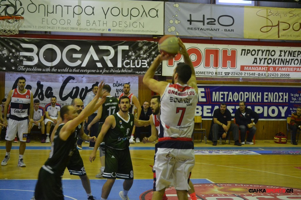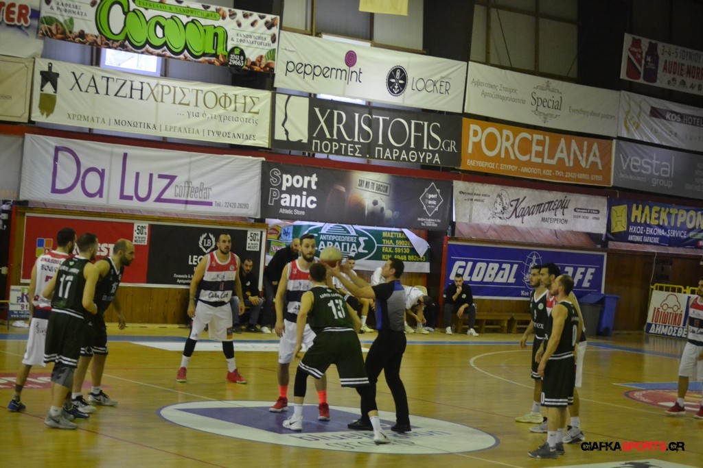 Με όπλο την εμπειρία των παικτών του και έχοντας κάθε δεκάλεπτο και ξεχωριστό πρωταγωνιστή, ο Ιπποκράτης πήρε το ροζ φύλλο αγώνα (την ίδια ώρα ο Διαγόρας Δρυοπιδέων κέρδιζε εκτός έδρας τον Πρωτέα Βούλας) και επέστρεψε στις νίκες, μετά την ήττα στη Νίκαια από τον τοπικό Ιωνικό. Η ομάδα του Χάρη Κουλουριώτη ήταν το απόλυτο «αφεντικό» του αγώνα, κάτι που φρόντισε να δείξει με το καλημέρα. Με αιχμή του δόρατος τον Ονάσογλου στο α’ δεκάλεπτο, οι Κώοι πήραν το προβάδισμα και μαζί μία σημαντική διαφορά (23-14). Στη συνέχεια τη σκυτάλη στο σκοράρισμα πήρε ο αρχηγός της ομάδας Αντώνης Ασημακόπουλος για να κλείσει το ημίχρονο με 47-35.