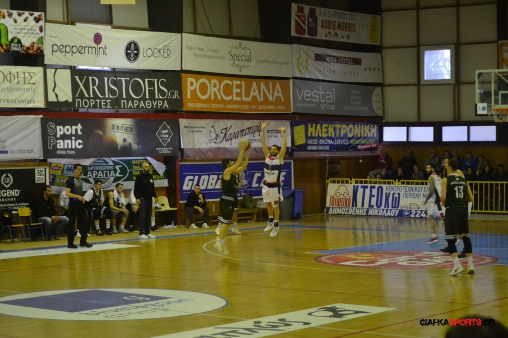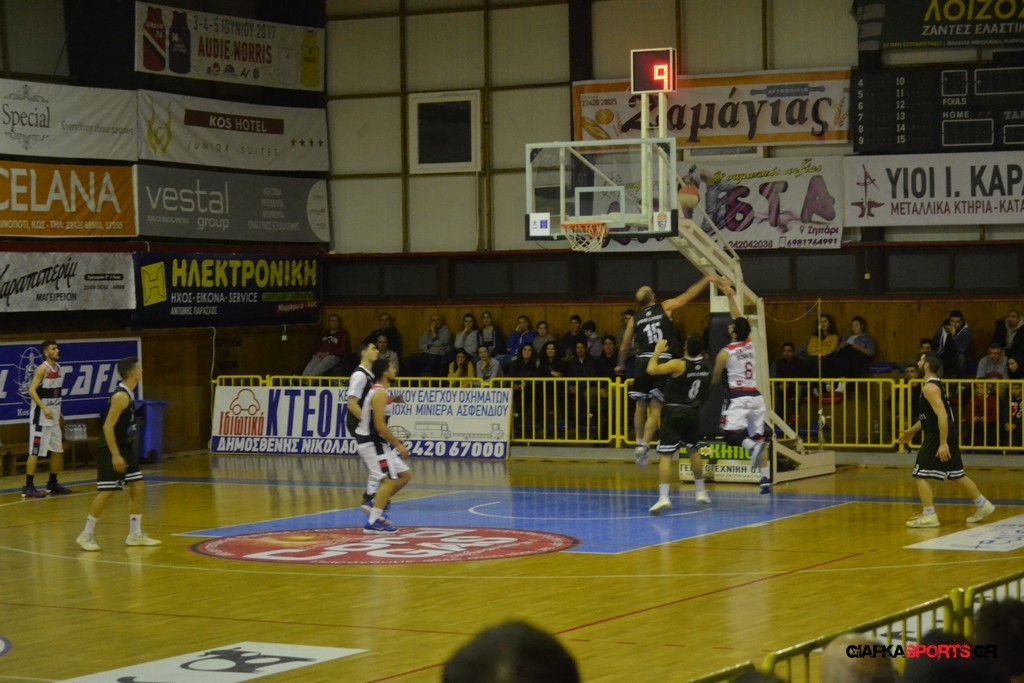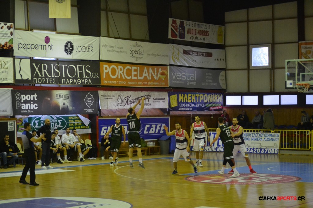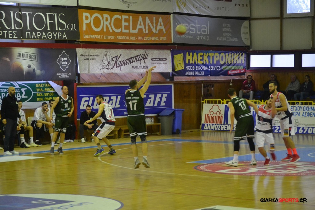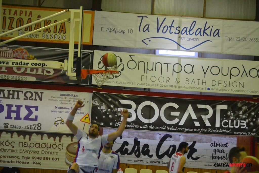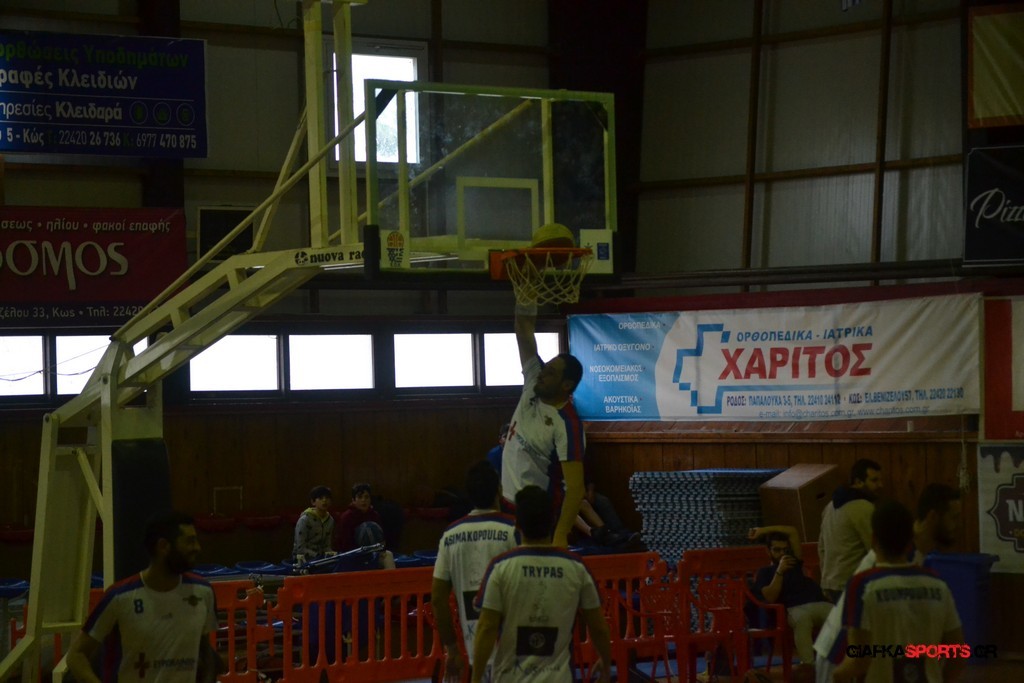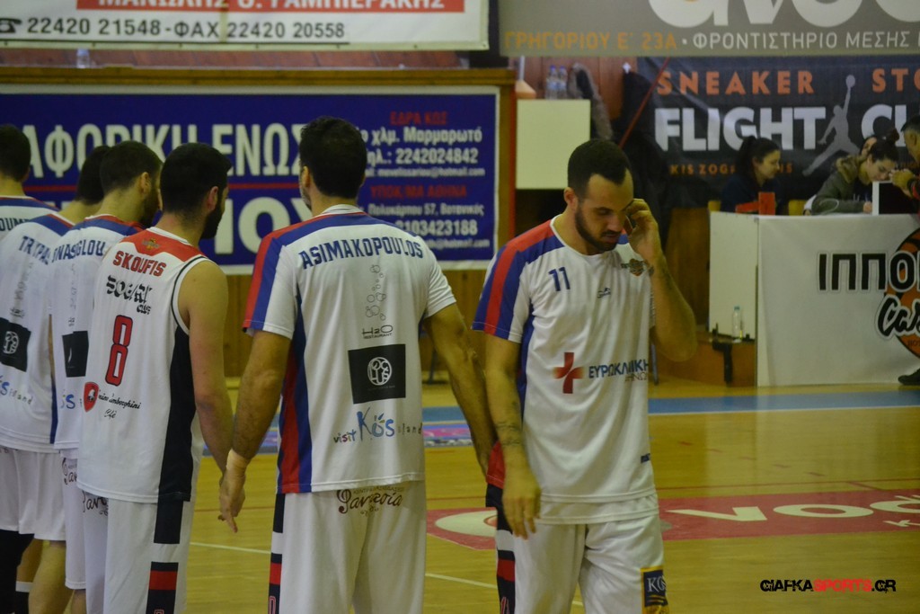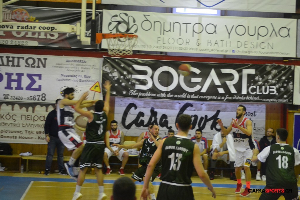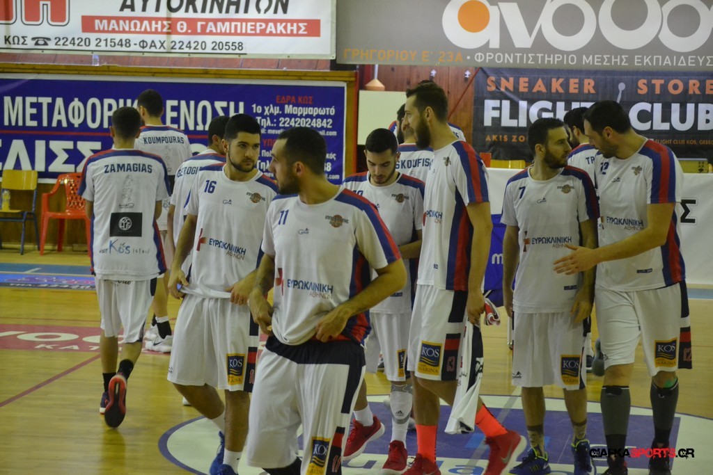 Με όπλο την εμπειρία των παικτών του και έχοντας κάθε δεκάλεπτο και ξεχωριστό πρωταγωνιστή, ο Ιπποκράτης πήρε το ροζ φύλλο αγώνα (την ίδια ώρα ο Διαγόρας Δρυοπιδέων κέρδιζε εκτός έδρας τον Πρωτέα Βούλας) και επέστρεψε στις νίκες, μετά την ήττα στη Νίκαια από τον τοπικό Ιωνικό. Η ομάδα του Χάρη Κουλουριώτη ήταν το απόλυτο «αφεντικό» του αγώνα, κάτι που φρόντισε να δείξει με το καλημέρα. Με αιχμή του δόρατος τον Ονάσογλου στο α’ δεκάλεπτο, οι Κώοι πήραν το προβάδισμα και μαζί μία σημαντική διαφορά (23-14). Στη συνέχεια τη σκυτάλη στο σκοράρισμα πήρε ο αρχηγός της ομάδας Αντώνης Ασημακόπουλος για να κλείσει το ημίχρονο με 47-35.