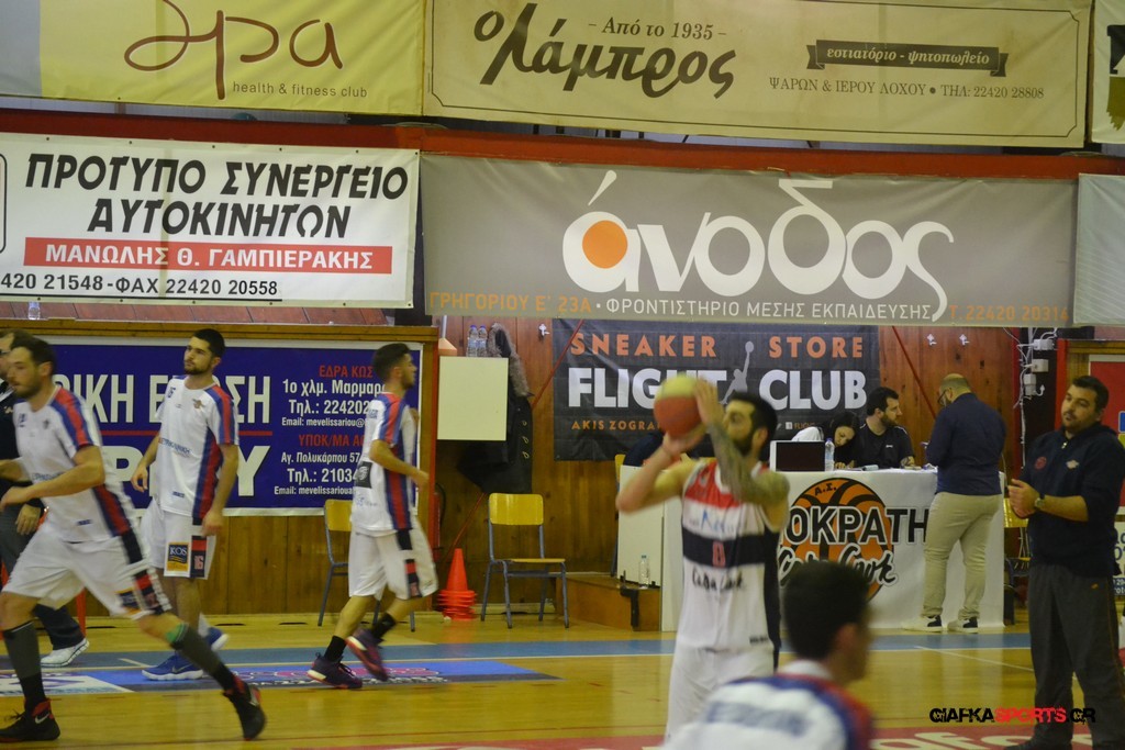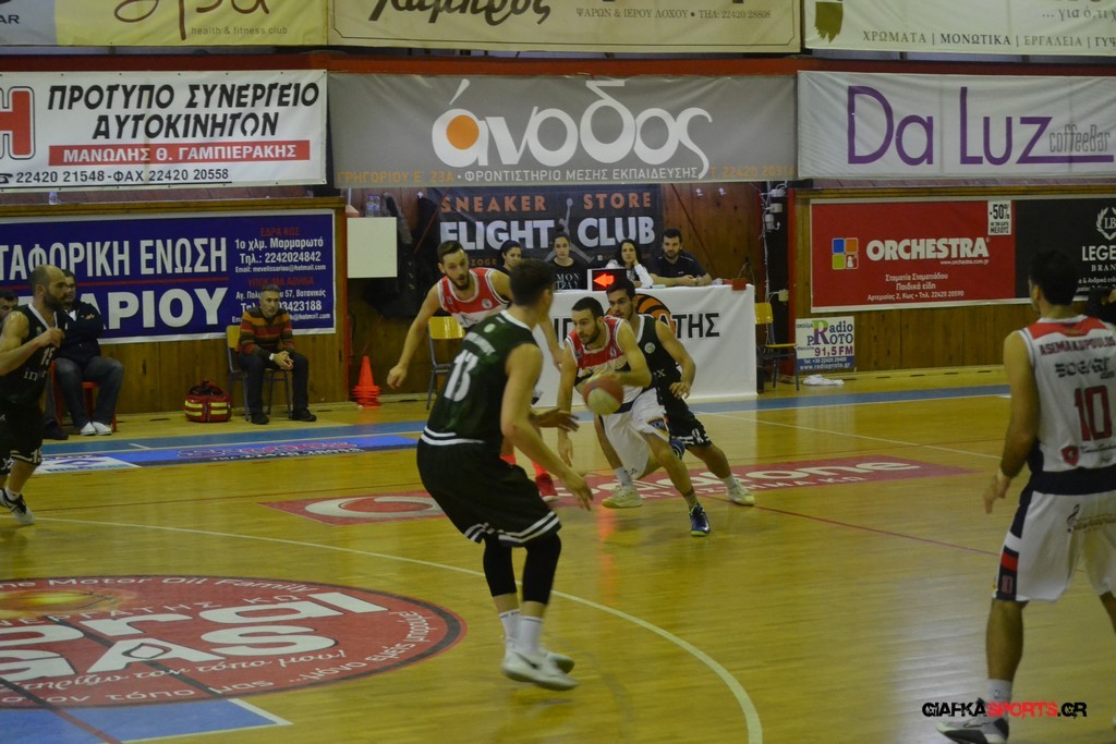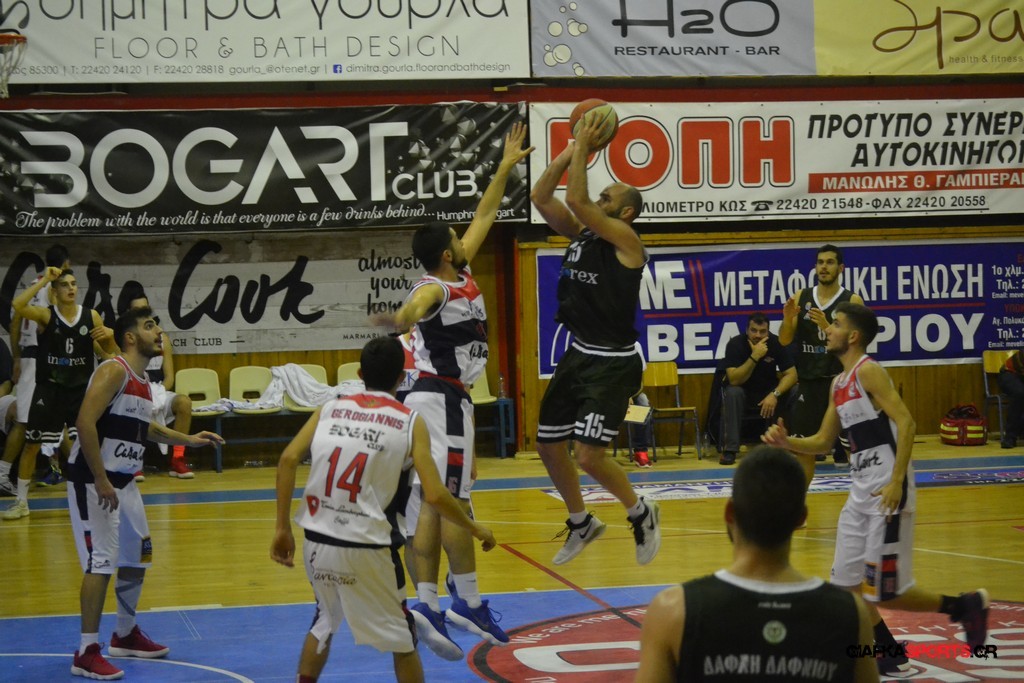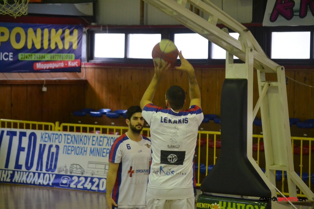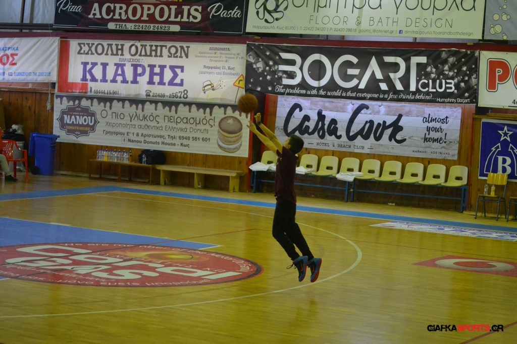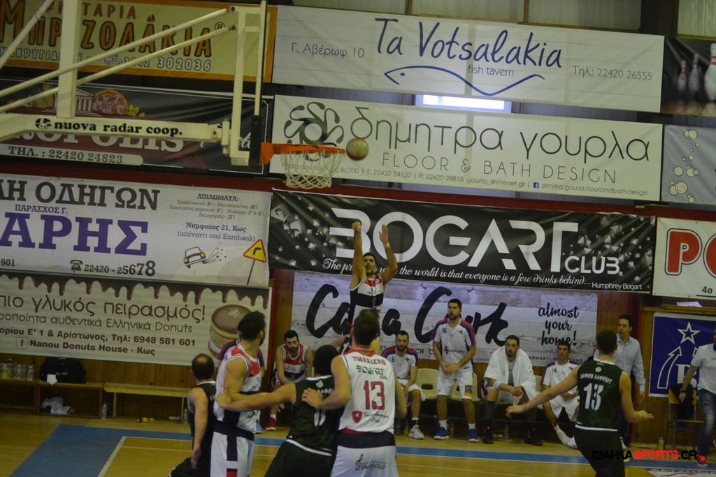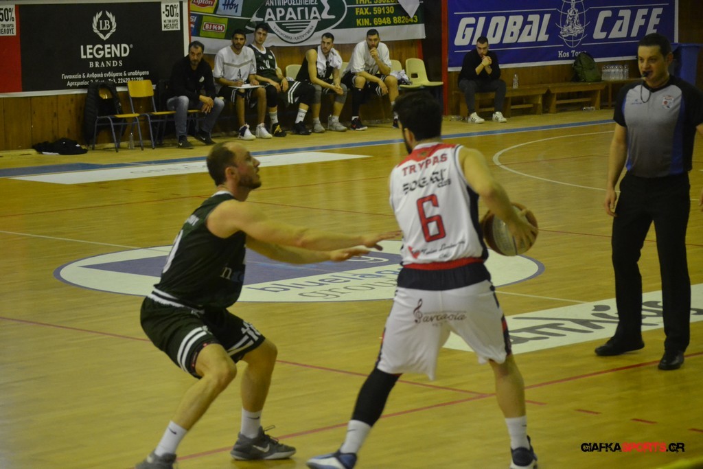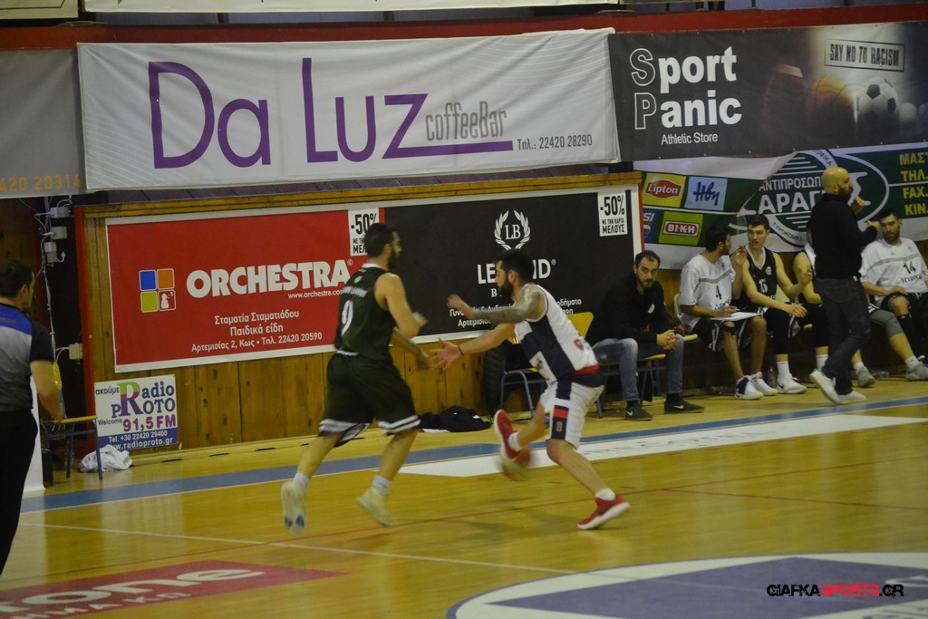 Με όπλο την εμπειρία των παικτών του και έχοντας κάθε δεκάλεπτο και ξεχωριστό πρωταγωνιστή, ο Ιπποκράτης πήρε το ροζ φύλλο αγώνα (την ίδια ώρα ο Διαγόρας Δρυοπιδέων κέρδιζε εκτός έδρας τον Πρωτέα Βούλας) και επέστρεψε στις νίκες, μετά την ήττα στη Νίκαια από τον τοπικό Ιωνικό. Η ομάδα του Χάρη Κουλουριώτη ήταν το απόλυτο «αφεντικό» του αγώνα, κάτι που φρόντισε να δείξει με το καλημέρα. Με αιχμή του δόρατος τον Ονάσογλου στο α’ δεκάλεπτο, οι Κώοι πήραν το προβάδισμα και μαζί μία σημαντική διαφορά (23-14). Στη συνέχεια τη σκυτάλη στο σκοράρισμα πήρε ο αρχηγός της ομάδας Αντώνης Ασημακόπουλος για να κλείσει το ημίχρονο με 47-35.