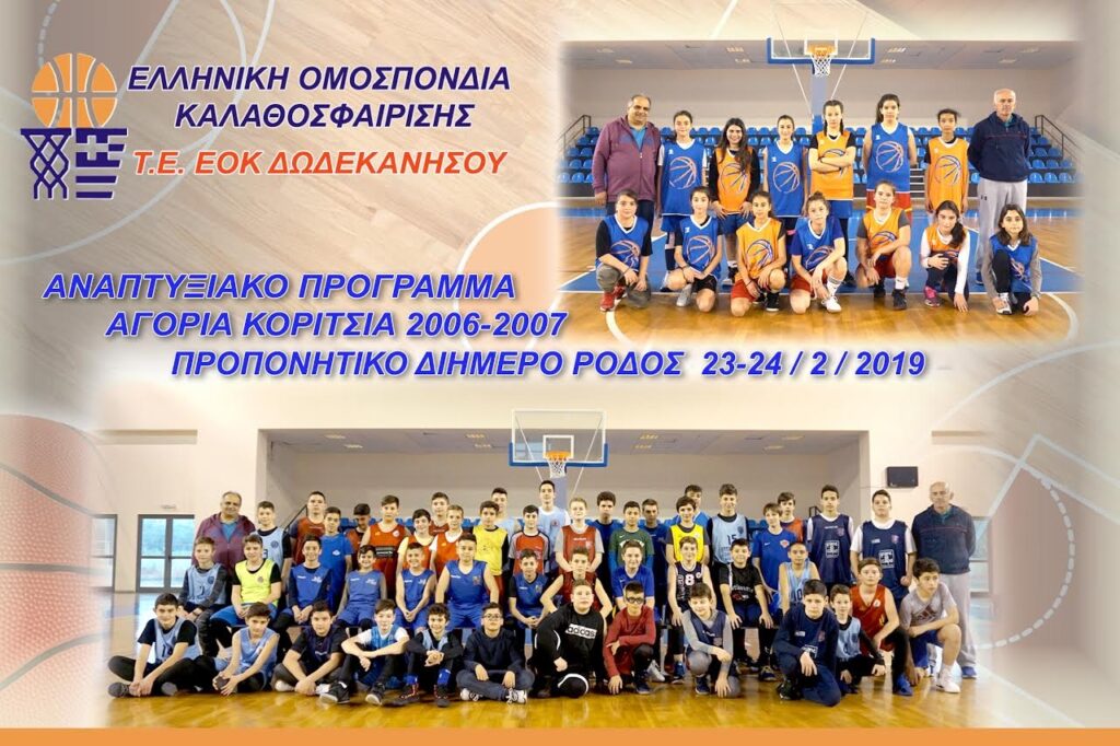 Στο πλαίσιο του αναπτυξιακού προγράμματος της Τ.Ε. Ε.Ο.Κ. Δωδεκανήσου πραγματοποιήθηκε με επιτυχία το περασμένο σαββατοκύριακο 23 και 24 Φεβρουαρίου 2019 στα κλειστά γυμναστήρια της Καλλιθέας (Παλέ ντε Σπορ) και του Διαγόρα («τέντα»), το προπονητικό διήμερο για αγόρια και κορίτσια των ομάδων της Ρόδου γεννηθέντα τα έτη 2006-2007. Οι προπονήσεις διεξήχθησαν με της οδηγίες των υπευθύνων προπονητών του αναπτυξιακού προγράμματος της Τ.Ε. Ε.Ο.Κ. Δωδεκανήσου κ.κ. Δημήτρη Τζομάκα και Γιώργου Χατζηκαλημέρη με τη συμμετοχή 48 αγοριών και 15 κοριτσιών. Κάτι αντίστοιχο είχε γίνει και στη Κω στις 19 και 20 Ιανουαρίου για αθλητές και αθλήτριες των ομάδων του βόρειου συγκροτήματος της Δωδεκανήσου, όπου συμμετείχαν 31 αγόρια και 14 κορίτσια. Η Τ.Ε. Ε.Ο.Κ. Δωδεκανήσου ευχαριστεί όλες της ομάδες για τη συνεργασία, τον Δ.Ο.Π.Α.Ρ. και το Γ.Σ. Διαγόρας για τη διάθεση των κλειστών γυμναστηρίων της Καλλιθέας και του Διαγόρα στις 23 και 24 /2/2019 αντίστοιχα, καθώς και τους συλλόγους Γ.Α.Σ. Ιαλυσός, Γ.Σ. Διαγόρας, Α.Ο. Κλεόβουλος Λίνδου, και Α.Ε. Καλλιθέα για τη χορήγηση- χρήση αθλητικού υλικού για τη διευκόλυνση των προπονήσεων μας.