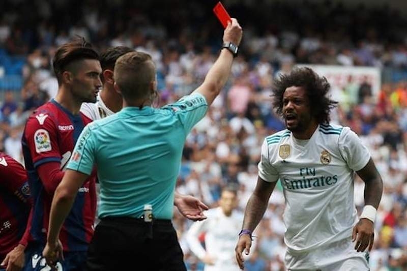 Στο 89ο λεπτό του Ρεάλ Μαδρίτης-Λεβάντε, η Ρεάλ Μαδρίτης έμεινε με δέκα παίκτες, αφού ο Μαρσέλο αντίκρισε την κόκκινη κάρτα, για κλωτσιά στην πλάτη του Λέρμα.