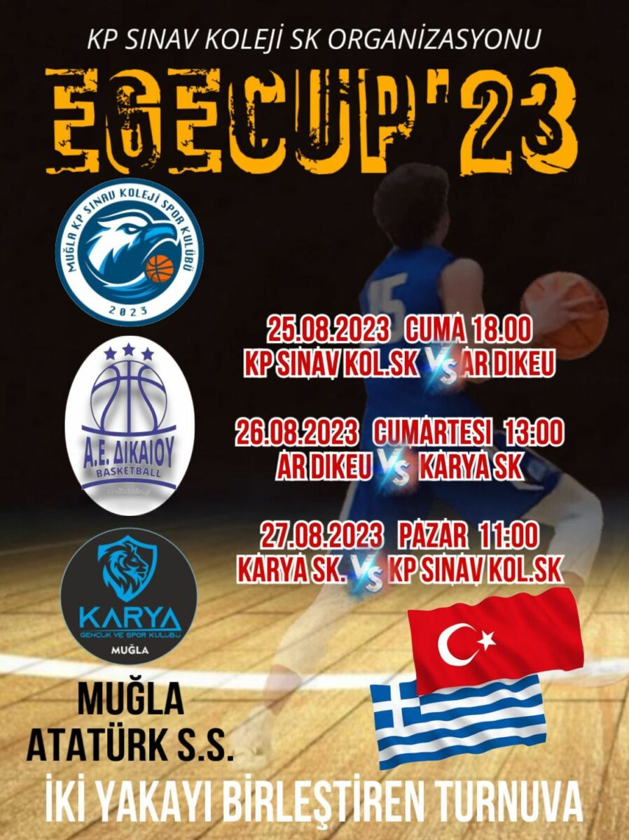 Στο πλαίσιο των φιλικών σχέσεων με ομάδες από τη γειτονική Τουρκία δεχθήκαμε πρόσκληση από τον αθλητικό σύλλογο MUĞLA SINAV KOLEJİ BASKETBOOL CLUB για να παίξουμε δύο φιλικά παιχνίδια (με ένα τμήμα αγοριών γεννηθέντων 2009-10) τα οποία θα λάβουν χώρα στο κλειστό γήπεδο ΑΤΑΤΟΥΡΚ ΜΟΥΓΛΩΝ από 25 έως 27 Αυγούστου 2023.