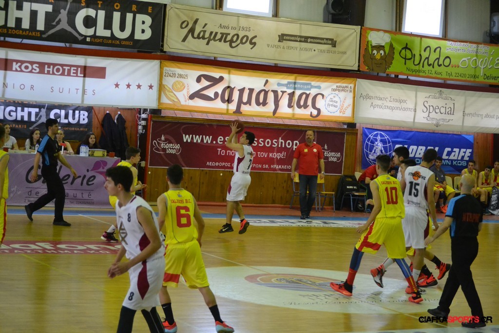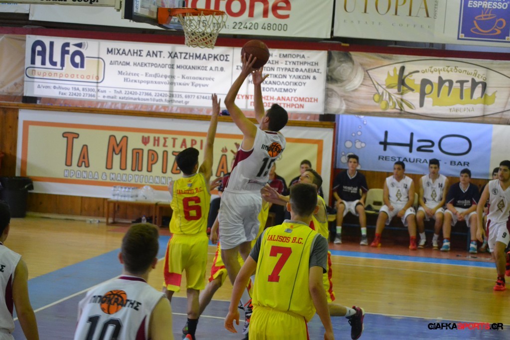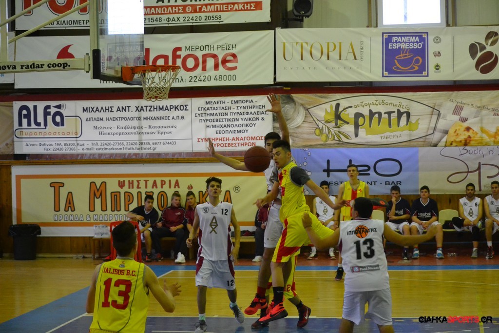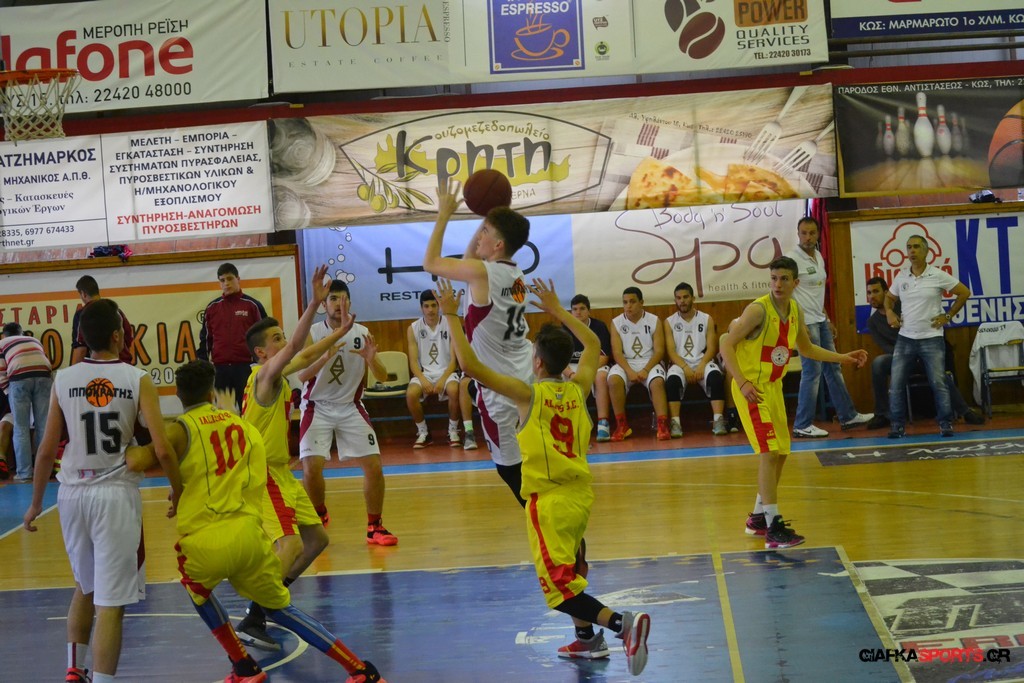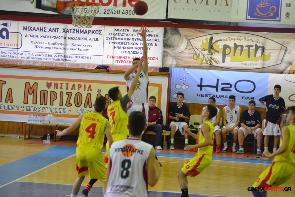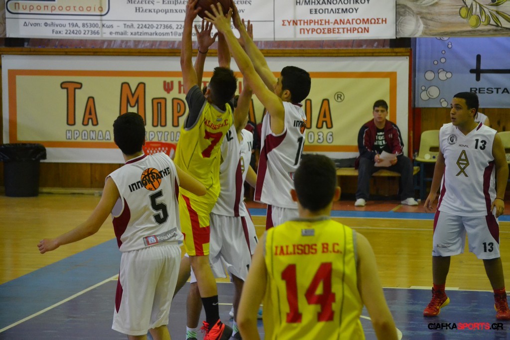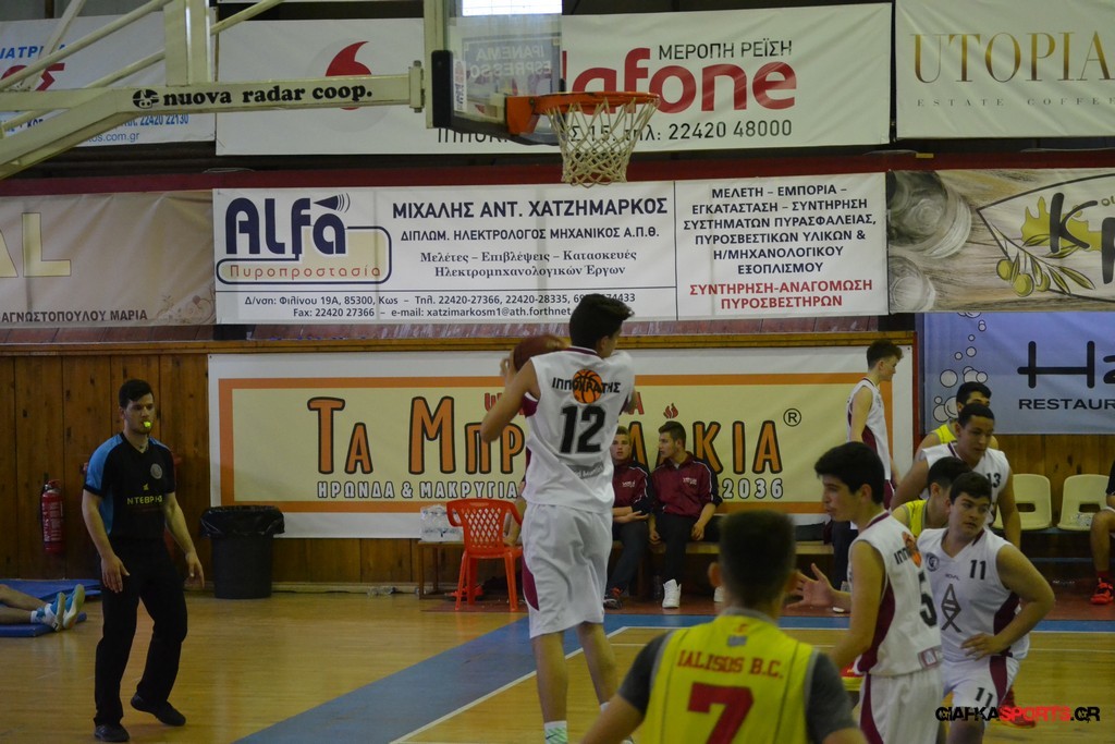 Ο Ιπποκράτης Κω ήταν το φαβορί και το έδειξε στο παρκέ… Η ομάδα του Μιχάλη Καπλανίδη κέρδισε εύκολα στο β’ ημίχρονο τον Γ.Α.Σ. Ιάλυσος με 69-44 και πήρε το εισιτήριο για τον αυριανό τελικό, όπου θα αντιμετωπίσει τον Κολοσσο. Το παιχνίδι ήταν ντέρμπι για ένα ημίχρονο, με τους «ερυθροκίτρινους» να κοιτάζουν στα μάτια τους διοργανωτές. Η ομάδα του Βενέτη Θωμίδη με αιχμή του δόρατος τον Μπόζιτς προηγήθηκε με 4-8 (5’), αλλά γρήγορα ο Ιπποκράτης ανέλαβε τον έλεγχο του αγώνα (16-11 στο 8’), έχοντας περισσότερες λύσεις στο σκοράρισμα. Παρά το γεγονός ότι τραυματίστηκε μόλις στο 5’ ο βασικός «άσος» του Ιπποκράτη (Χατζηπυλιώτης Ι.) και δεν έπαιξε ξανά, ο νεαρός Καπλανίδης τα πήγε αρκετά καλά και με κορυφαίους τους Βάση, Πλευράκη, Μποδούρ και Γιουσέμογλου, ο Ιπποκράτης πήρε το παιχνίδι. Ο Γ.Α.Σ. Ιάλυσος πάλεψε φιλότιμα (32-27 στο 17’ και 39-32 στο ημίχρονο), αλλά οι Κώοι ήταν εμφανώς καλύτεροι στο γ’ δεκάλεπτο, όταν και «καθάρισαν» το παιχνίδι. Με επιμέρους σκορ 21-8, ο Ιπποκράτης ξέφυγε με 60-44 και στη συνέχεια έριξε στροφές λόγω και του αυριανού τελικού. Οι Κώοι είχαν περισσότερες λύσεις και δικαιολόγησαν την ταμπέλα του φαβορί που είχαν πριν από το ξεκίνημα του αγώνα.