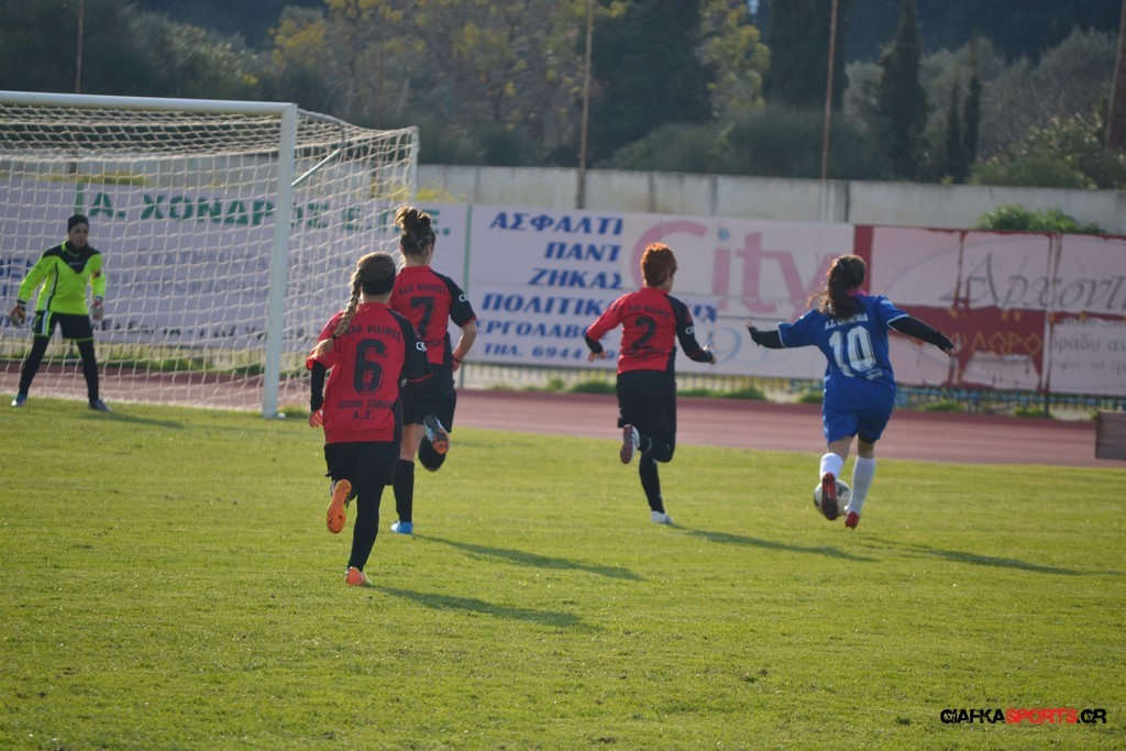 Κάτι που έγινε αρχικά στο 59′ όταν σε μπαλιά στην πλάτη της άμυνας του Φιλίνος, η Σταμόγλου στην προσπάθειά της να προλάβει την Πλεξίδα έδιωξα άτσαλα με την μπάλα να καταλήγει στην Μπούμπα,η οποία με ωραίο σουτ να στέλνει την μπάλα στην κενή εστία του Φιλίνος για το 0-3.