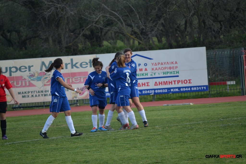 Η Μπούμπα που ήταν και η κορυφαία του ματς έστρωσε δυο έτοιμα γκολ στο 69′ και στο 72′.Αρχικά η Πλεξίδα με κοντινή προβολή έκανε το 0-5 και 3 λεπτά αργότερα η Καρέτσου με ωραίο σουτ ανέβασε το σκορ στο 0-6.