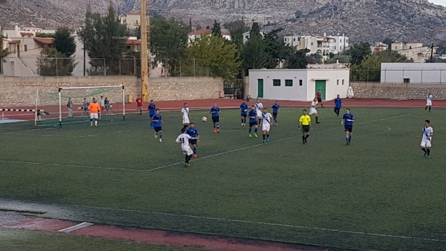 Οι Καλύμνιοι συνέχισαν να έχουν την κατοχή πίεσαν απ’ τα δεξιά και στο 19′ κατάφεραν να πάρουν προβάδισμα στο σκορ όταν ο Γιώργος Τρικοίλης έκανε την σέντρα απ’ τα δεξιά και ο Κλειδαράς με κοντινή κεφαλιά έγραψε το 1-0.