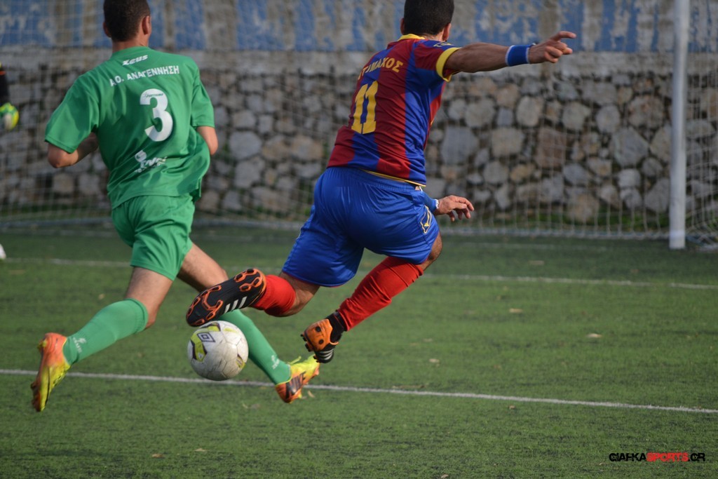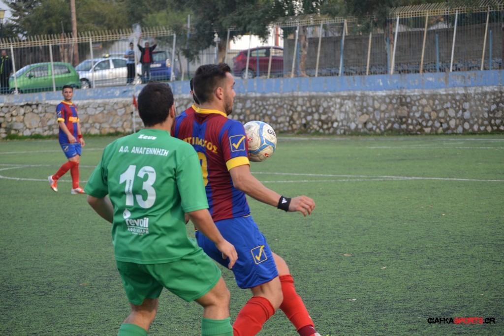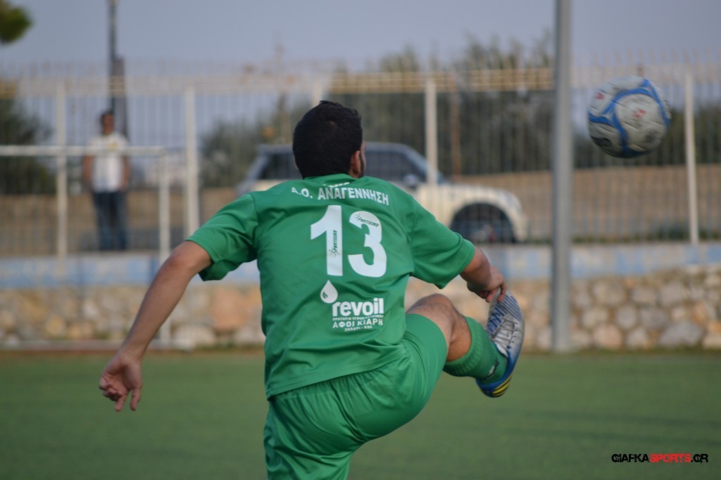 Η Αναγέννηση προσπάθησε να απαντήσει με τον Βογιατζή στο 34′ να σπαταλά μονοδική ευκαιρία όταν ο Μιαούδης σταμάτησε το πλασέ του από κοντά και ένα λεπτό αργότερα στην αντεπίθεση ο Τσατσακλάς βρήκε με κάθετη πάσα τον Πη και εκείνος με δυνατό σουτ απ’ τα όρια της περιοχής νίκησε τον Χατζηβασίλη για το 2-0 που ήταν και το αποτέλεσμα του πρώτου μέρους.