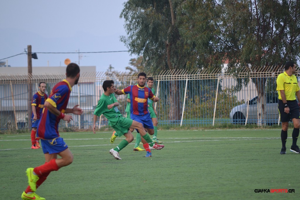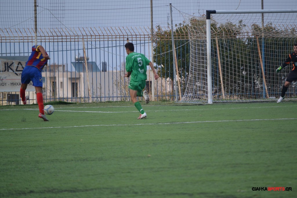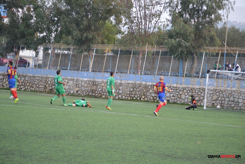 Οι φιλοξενούμενοι μπήκαν απ’ την αρχή δυνατά στον αγωνιστικό χώρο και προσπάθησαν με καλή κυκλοφορία να πετύχουν ένα γρήγορο γκολ καταφέρνωντας μόλις στο 10ο λεπτό να πάρουν προβάδισμα στο σκορ με γκολ του Δημήτρη Πη, δημιουργώντας από εκεί και πέρα τις προϋποθέσεις και για δεύτερο τέρμα.