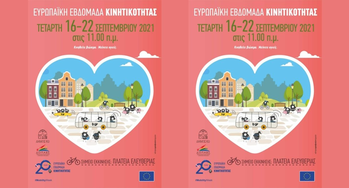 Η εβδομάδα 18-22 Σεπτεμβρίου 2021 , έχει οριστεί ως «ΕΥΡΩΠΑΙΚΗ ΕΒΔΟΜΑΔΑ ΚΙΝΗΤΙΚΟΤΗΤΑΣ». Το θέμα που επιλέχθηκε για το 2021 είναι « Είμαστε Υγιείς και Ασφαλείς με τη Βιώσιμη Κινητικότητα» .