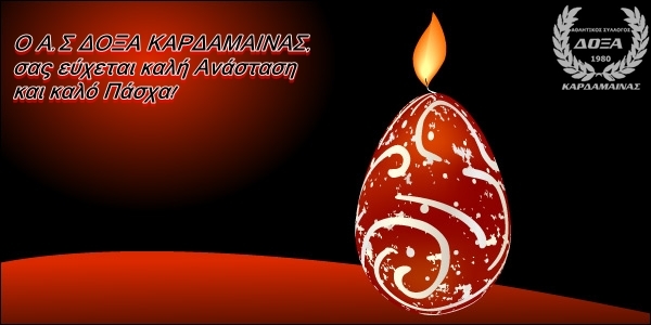 “Το Δ.Σ, οι προπονητές και οι ποδοσφαιριστές του Α.Σ ΔΟΞΑ ΚΑΡΔΑΜΑΙΝΑΣ, εύχονται καλή Ανάσταση και υγεία σε όλους. Μακάρι το φως της Αναστάσεως του Χριστού, να λάμπει στις καρδιές όλων μας!”