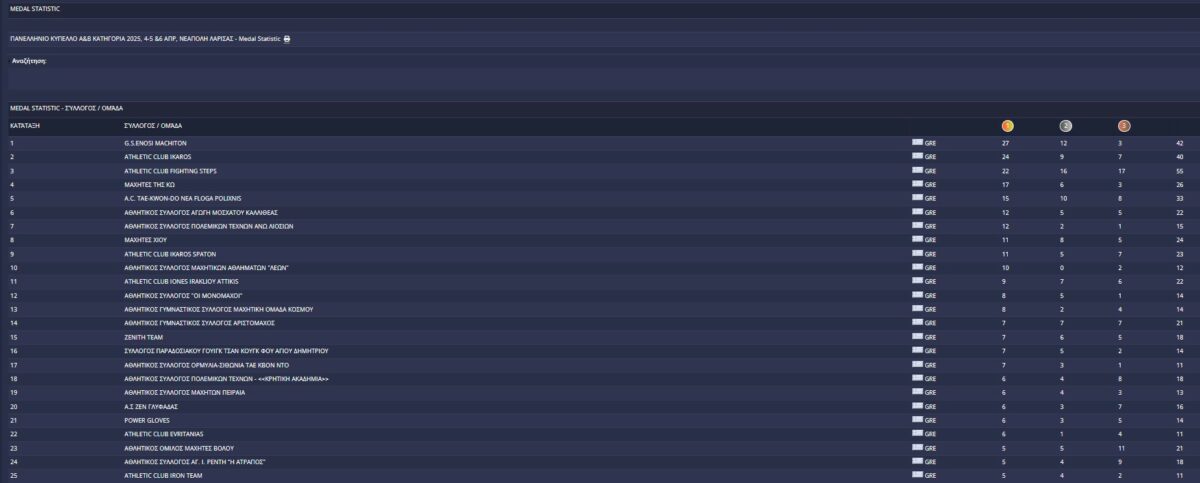 Συνολικά κατέκτησαν 26 μετάλλια απ’ τα οποία τα 17 χρυσά, τα 6 ασημένια και τα 3 χάλκινα καταφέρνοντας για ακόμη μια φορά να διακριθούν και να δείξουν την καλή αγωνιστική τους κατάσταση.