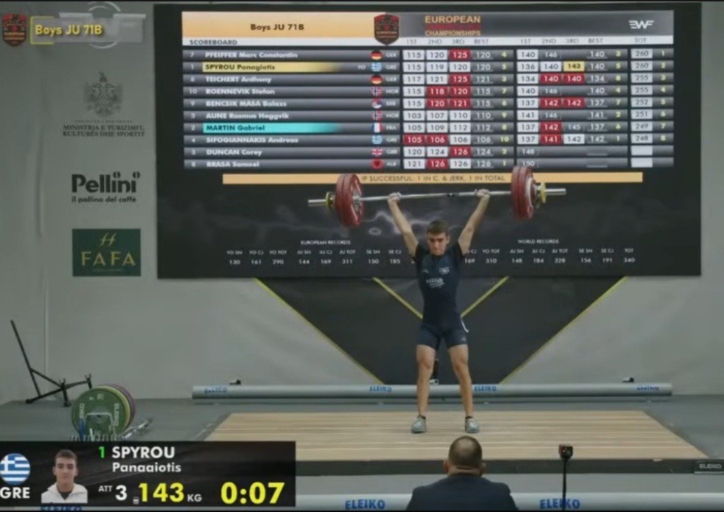Έξι έγκυρες προσπάθειες και Πανελλήνια ρεκόρ ανδρών ο Σπύρου στο Ευρωπαϊκό πρωτάθλημα άρσης βαρών