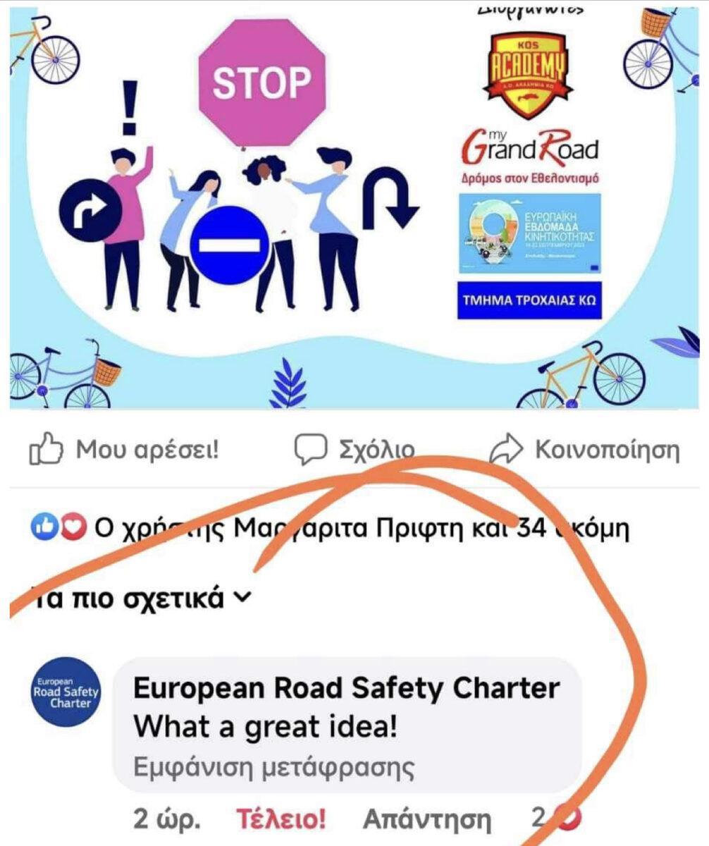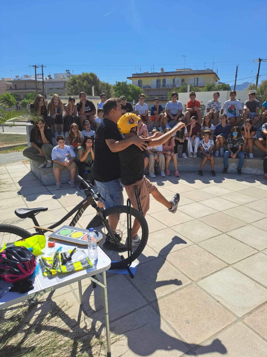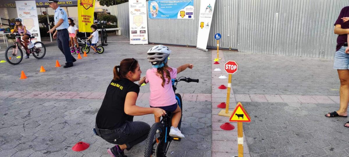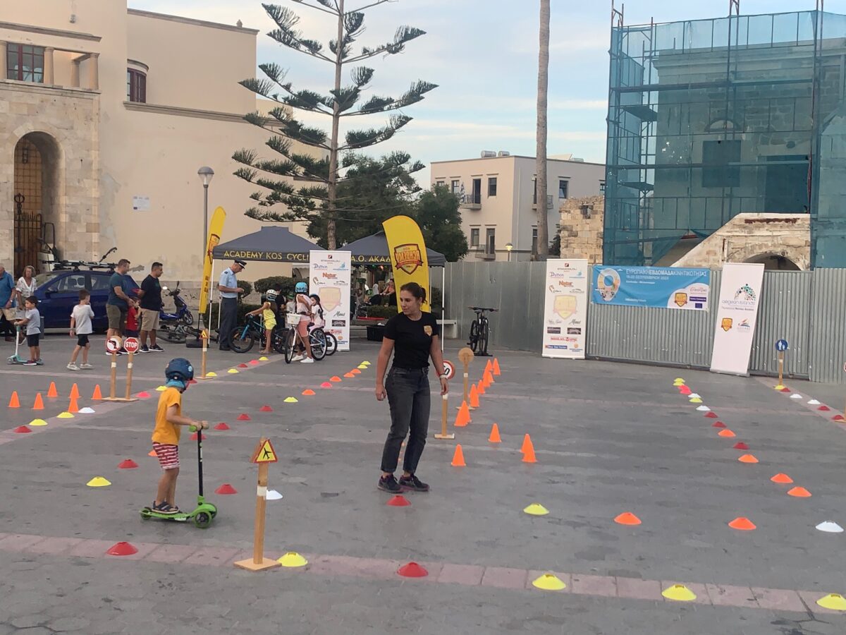 Η προπονήτρια ποδηλασίας της Ακαδημίας Κω, κα Ταμάρα Μαρία Τουμπαζή, με τον εκπρόσωπο του Μη Κερδοσκοπικού Οργανισμού My Grand Road (μέλος της «Ευρωπαϊκής Χάρτας Οδικής Ασφάλειας») και με τη στήριξη του Τμήματος Τροχαίας της Κω, επί δύο ημέρες, την Πέμπτη 21 και την Παρασκευή 22 Σεπτεμβρίου, μεταλαμπάδευσαν σε μικρούς και μεγάλους μαθητές, στο Πάρκο Κυκλοφοριακής Αγωγής του Δήμου Κω, τη συσσωρευμένη εμπειρία και τις γνώσεις τους επί της οδικής ασφάλειας και της ασφαλούς χρήσης του ποδηλάτου.