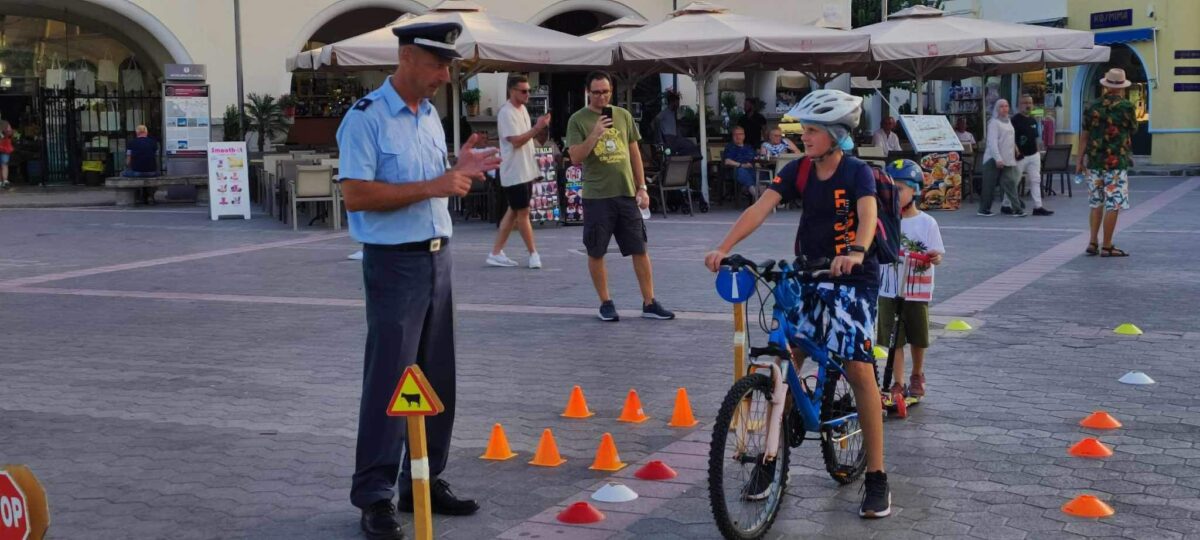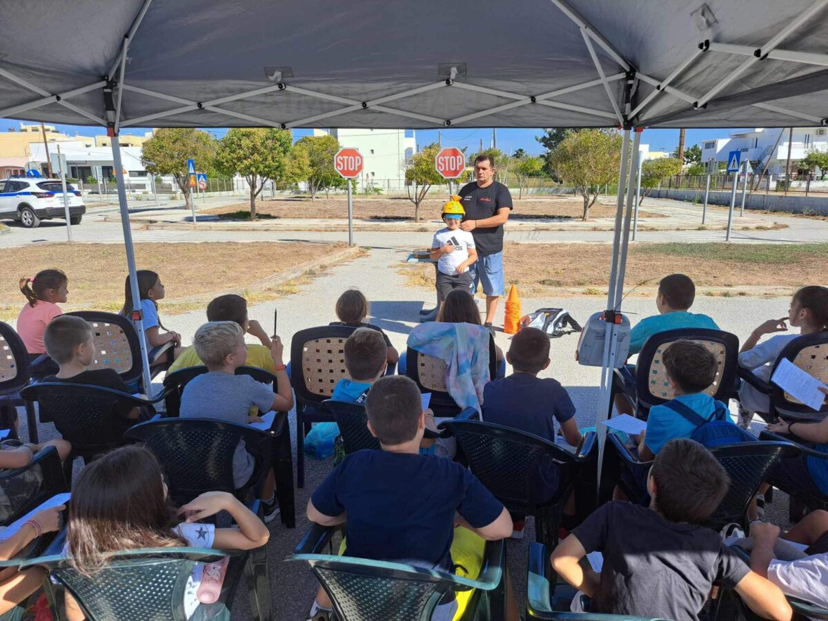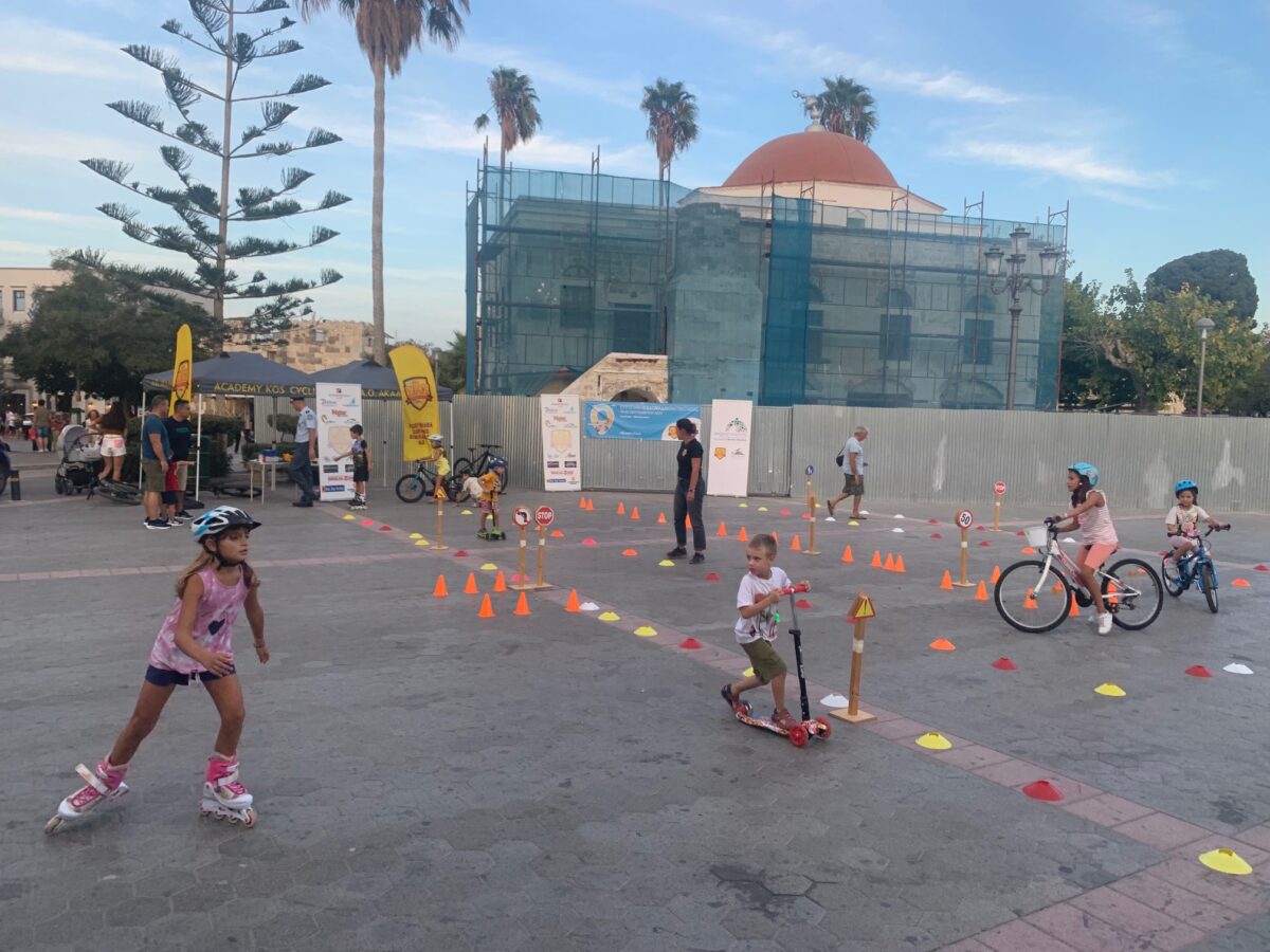 Επιπλέον, το απόγευμα της Πέμπτης από τις 1700 μέχρι τις 2100, στην πλατεία Ελευθερίας, με ένα όμορφο πάρκο κυκλοφοριακής αγωγής που στήθηκε σε αυτήν, μεγάλος αριθμός παιδιών του νησιού μας, διδάχθηκε σωστή οδική συμπεριφορά από τους παραπάνω εκπαιδευτές, δίνοντας χρώμα στην πλατεία, έλκοντας παράλληλα τα βλέμματα δεκάδων τουριστών με αυτήν την ωραία δράση – διαφήμιση για το νησί μας.