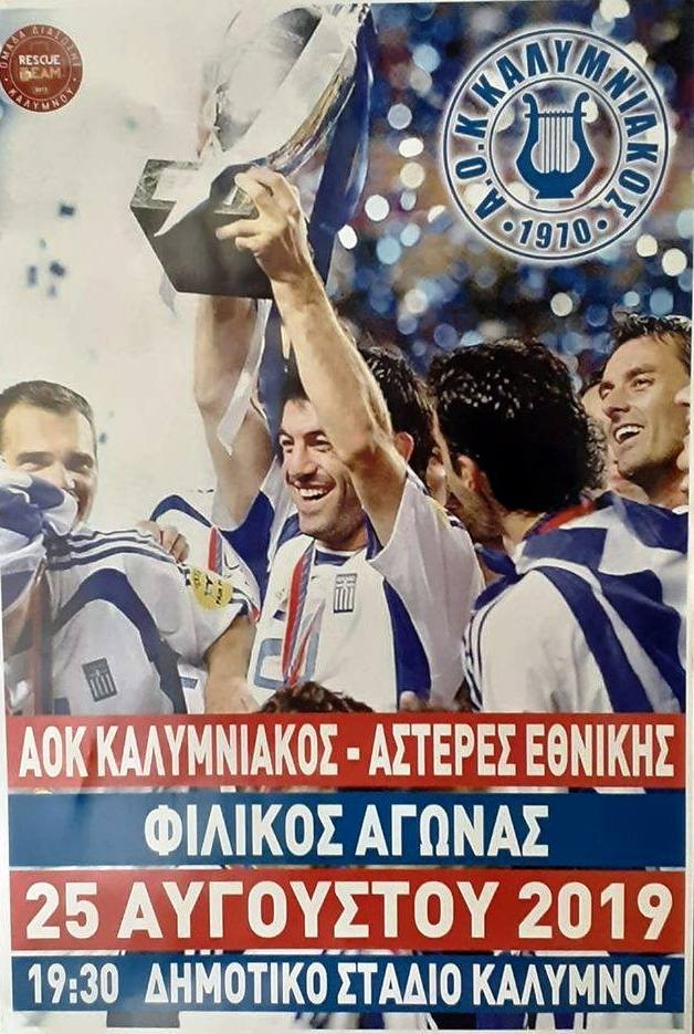 Όπως έχει ήδη ανακοινωθεί, ο Καλυμνιακός μας θα φιλοξενήσει Αστέρες της Εθνικής ομάδας την Κυριακή 25 Αυγούστου σε ένα φιλικό γιορτή. Το Διοικητικό Συμβούλιο του συλλόγου μας, αποφάσισε πως μέρος των εσόδων θα δοθούν για την ενίσχυση σωματείου, για αθλητικό εξοπλισμό σχολείων και για επισκευές στο Δημοτικό στάδιο Καλύμνου.