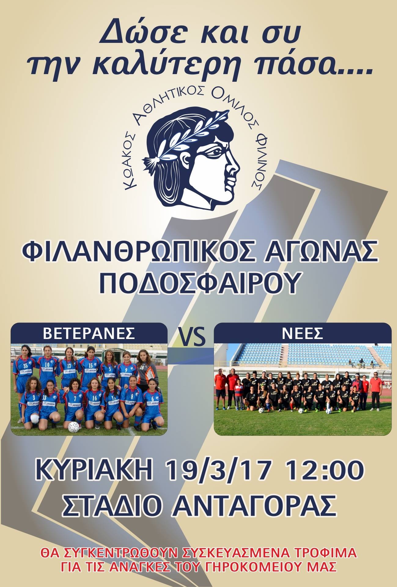 Ο ΚΑΟ Φιλίνος διοργανώνει φιλανθρωπικό αγώνα Ποδοσφαίρου ανάμεσα σε ΝΕΕΣ και ΒΕΤΕΡΑΝΕΣ, την Κυριακή 19/03 και ώρα 12:00 στο Στάδιος Ανταγόρας.