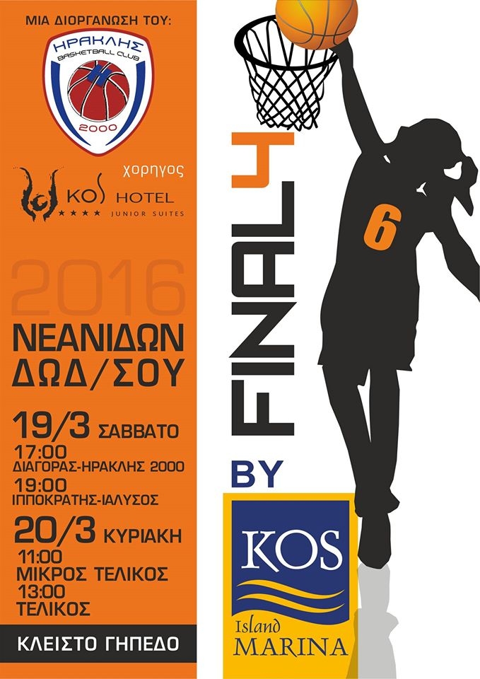 Ο ΑΣ ΗΡΑΚΛΗΣ 2000 σας προσκαλεί στο FINAL FOUR ΝΕΑΝΙΔΩΝ ΔΩΔΕΚΑΝΗΣΟΥ το οποίο θα διεξαχθεί στο κλειστό γυμναστήριο Κω υπό την αιγίδα του συλλόγου μας το διήμερο 19-20/03/2016 . Σας καλούμε όλους να στηρίξετε την προσπάθεια της ομάδας μας συμμετέχοντας στη ” γιορτή του μπάσκετ” που διεξάγεται στο νησί μας.
