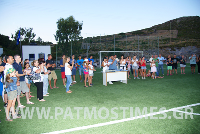 Νίκο Πουλιού ιδιοκτήτη του Patmos aktis , στον δήμαρχο Πάτμου και στον ποδοσφαιριστή Σ. Λουλουδιά που τελειώνει την καριέρα του. Επίσης υπήρχαν αναμνηστικά μετάλλια για όλα τα παιδιά. Στην γιορτή παραβρέθηκαν ο νέος περιφερειάρχης Γ. Χατζημάρκος, ο νέος έπαρχος Ι. Θεμέλαρος, ο δήμαρχος Πάτμου και ο τερματοφύλακας του Παναθηναικού Στέφανος Κοτσόλης που έδωσαν και τα μετάλλια στα παιδιά.