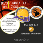 17:00 Φοίβος Κω – Ακαδημία Καλύμνου (παιδικό)
