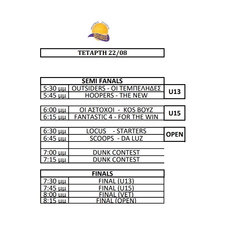 Οι σημερινοί τελικοί θα μεταδοθούν σε Live Streaming απ’ το giafkasports.gr