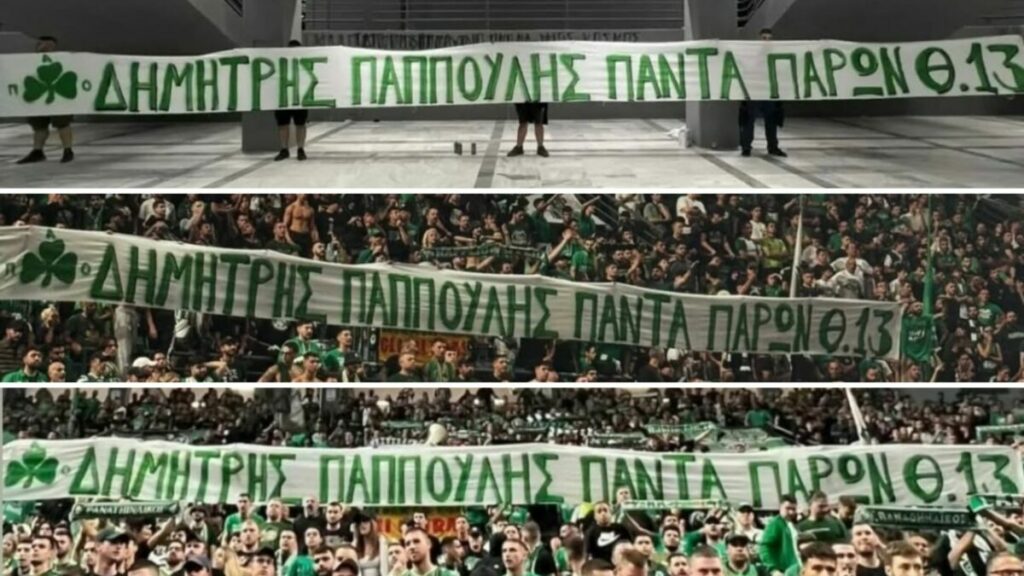 Η συγκίνηση κορυφώθηκε όταν στον αγώνα του Παναθηναϊκού – της ομάδας που τόσο αγαπούσε – με αντίπαλο την Μπαρτσελόνα, αναρτήθηκε πανό στη μνήμη του. Μια ιδιαίτερη κίνηση που δείχνει πως η αγάπη και η θύμησή του ξεπερνά τα όρια του νησιού μας και φτάνει μέχρι τα γήπεδα της Ευρώπης.