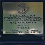 Παίρνοντας χρονολογικά τα πρωταθλήματα της Β’ κατηγορίας του Ομίλου νήσων, μετά από Α.Ε Λέρου (2012-2013) και Καλυμνιακός (2013-2014) ήταν η σειρά του νεανικού Ανταγόρα του Σωτήρη Συλαϊδόπουλου να κατακτήσει τον τίτλο και να ανέβει στην Α’ κατηγορία.