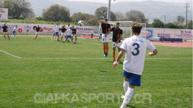Από εκεί και πέρα η Μύκονος ισορρόπησε το ματς προσπάθησε να κυκλοφορήσει την μπάλα και σε μια ανύποπτη φάση έφτασε στην ισοφάριση όταν στο 36ο λεπτό ο Αργυρίου έκανε την σέντρα απ’τα δεξιά, ο Σανταμούρης δεν υπολόγισε σωστά της πορεία της μπάλας η οποία του έφυγε απ’τα χέρια και ο Πανέτας από κοντά διαμόρφωσε το 1-1 που ήταν και το αποτέλεσμα του πρώτου ημιχρόνου.