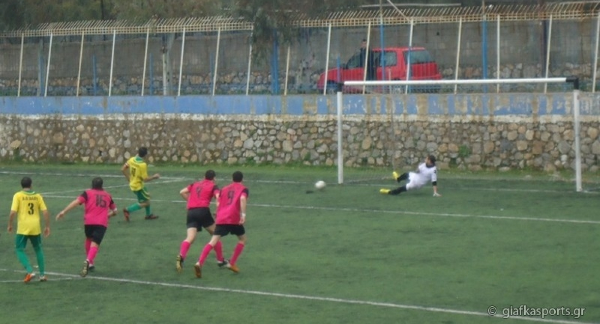 Ο ΠΑΟΚ Κω ξεκίνησε καλύτερα το ματς με την ομάδα του Παπαγιαννόπουλου να έχει την κατοχή, αλλά να μην μπορεί στο 14′ να ανοίξει το σκορ με τον Λελέκη να απεκρούει το σουτ του Τσιφτσίδη. Στο 29′ έπειτα από κόρνερ του Μουσσά,η μπάλα κατέληξε στον Περέντη το σουτ του οποίου βρήκε σε χέρι αμυντικού του ΠΑΟΚ Kω με τον Παρχαρίδη να δείχνει την άσπρη βούλα και τον Κλειδαρά να ανοίγει το σκορ.