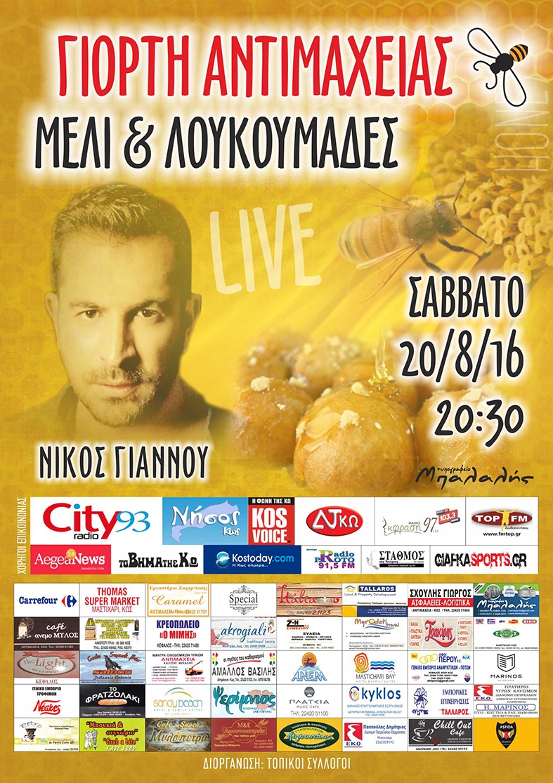 Home » Γιορτή στην Αντιμάχεια με μέλι, λουκουμάδες και το Νίκο Γιάννου live