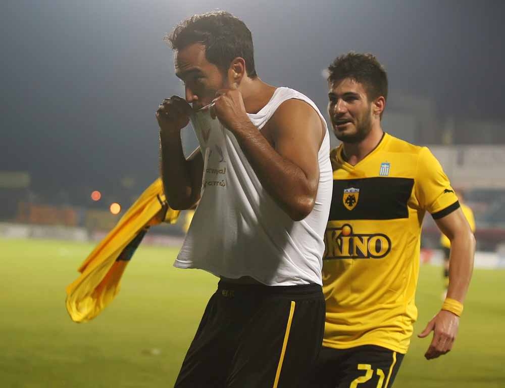 Η απάντηση της ΑΕΚ ήρθε στο 8′ όταν ο Λαγός από τα αριστερά, έβγαλε την σέντρα και ο αφύλακτος Κατίδης έπιασε την κεφαλιά με τον τερματοφύλακα των γηπεδούχων να μπλοκάρει.