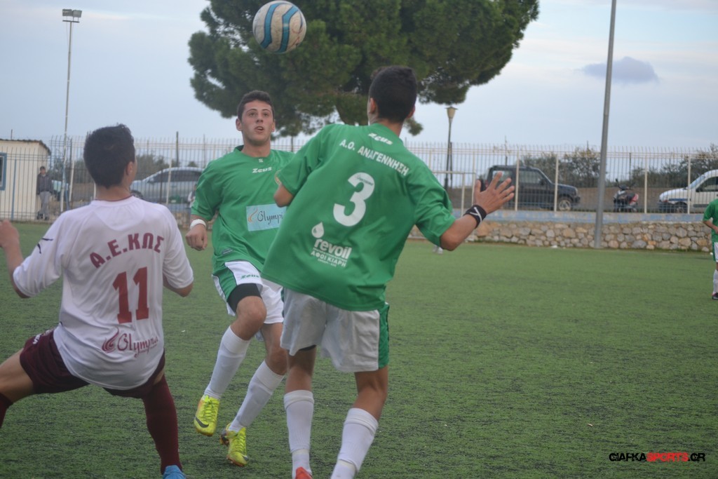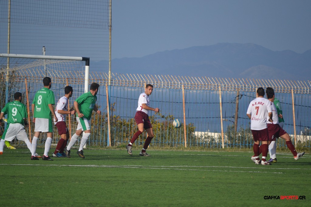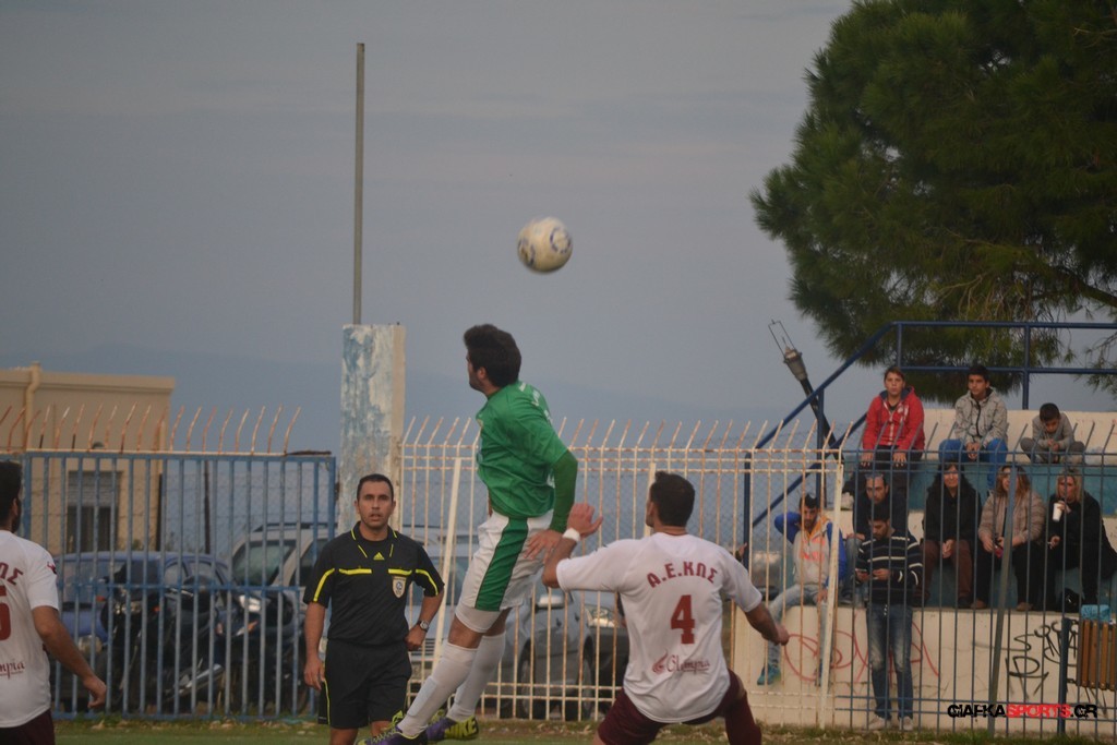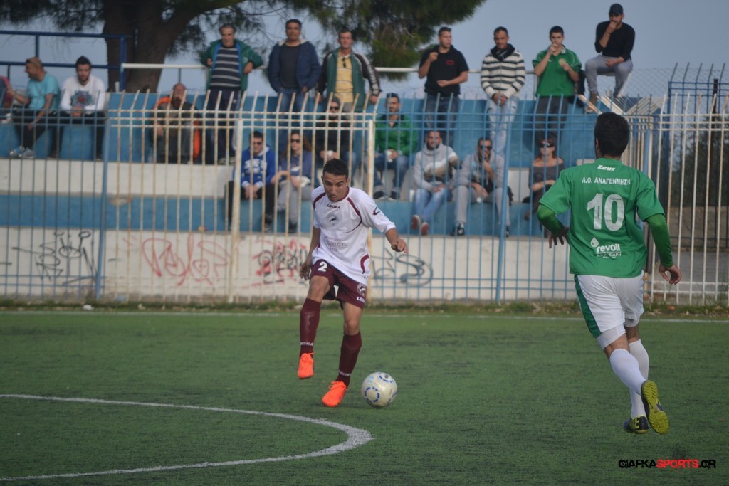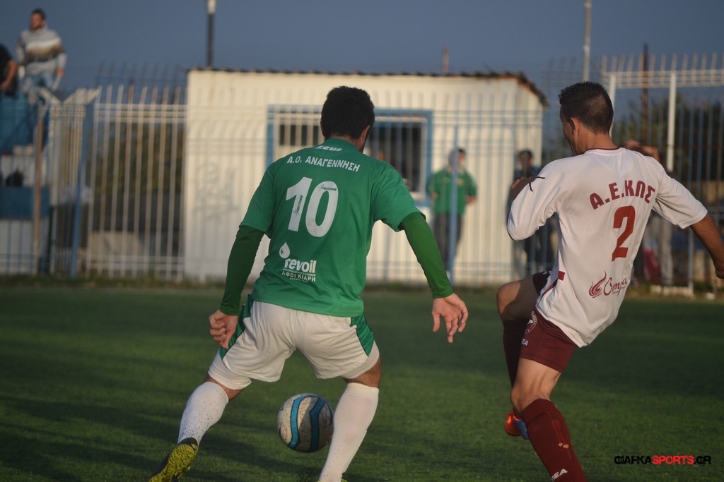 Στο δεύτερο μέρος η Α.Ε Κως που δείχνει και σημάδια βελτίωσης ανα παιχνίδι κατάφερε και έφερε το ματς στα ίσα όταν μια μπαλιά στην άμυνα της Αναγέννησης κατέληξε στον Γούλα, ο οποίος έστρωσε την μπάλα στον Κόπελλο και αυτός με την σειρά του σε τετ α τετ δεν δυσκολεύτηκε να κάνει το 1-1 για την ομάδα του.Η φιλοξενούμενη Α.Ε Κως ανέβασε κι άλλο την απόδοσή της, αλλά στην πιο κλασική της ευκαιρία στο 70′ έπειτα από σέντρασουτ του Κόπελλου η προβολή του Λαζαρίδη δεν πέρασε τον Θεοδώρου που απομάκρυνε πάνω από την γραμμή και κράτησε το σκορ στο 1-1.Και κόντρα στην ροή του ματς στο 72′ η Αναγέννηση κατάφερε να κάνει το 2-1 όταν σε κόρνερ που εκτέλεσε ο Σακαντάρης,ο Φλάσκος έστρωσε στον Τρικοίλη που είχε μπει ως αλλαγή στο 62′ το σουτ του από την περιοχή κατέληξε στο δεξί παραθυράκι του Μερτζάνη. Αξίζει να σημειώσουμε πως η Α.Ε Κως έμεινε και με 10 παίκτες,καθώς αποβλήθηκε από το ματς με δεύτερη κίτρινη ο Χατζηστέργου.