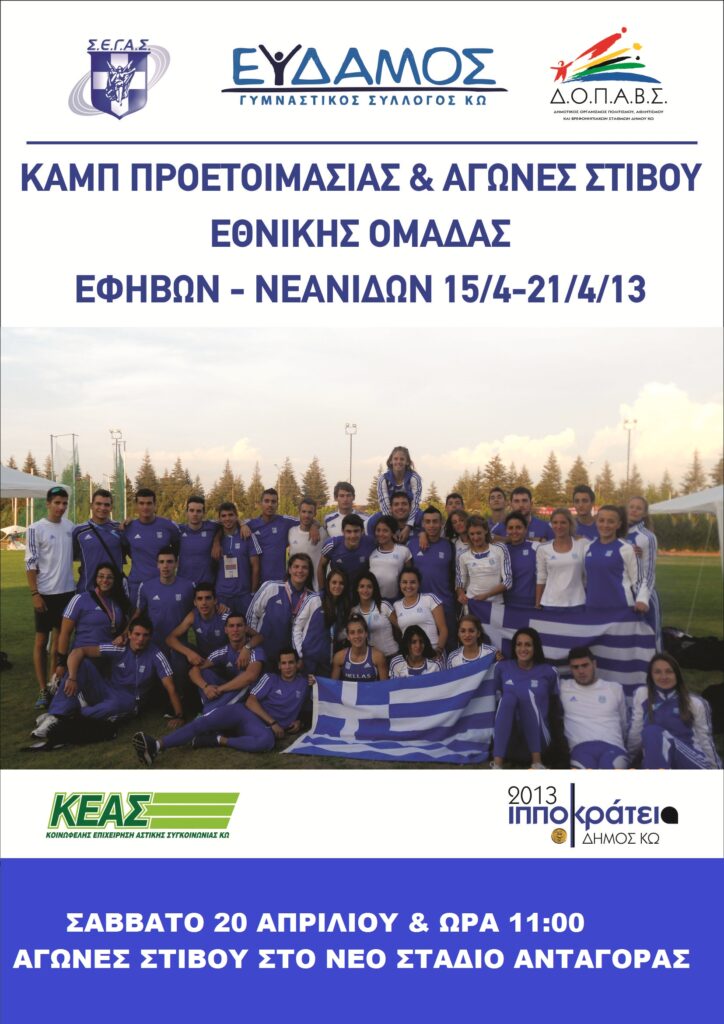 Αξίζει να σημειώσουμε ότι το Σάββατο 20 Απριλίου και ώρα 11:00 θα διεξαχθούν αγώνες στίβου στο Νέο στάδιο Ανταγόρας όπου ο κόσμος θα έχει την ευκαιρία μεταξύ άλλων να παρακολουθήσει από κοντά τα παιδιά της Εθνικής.