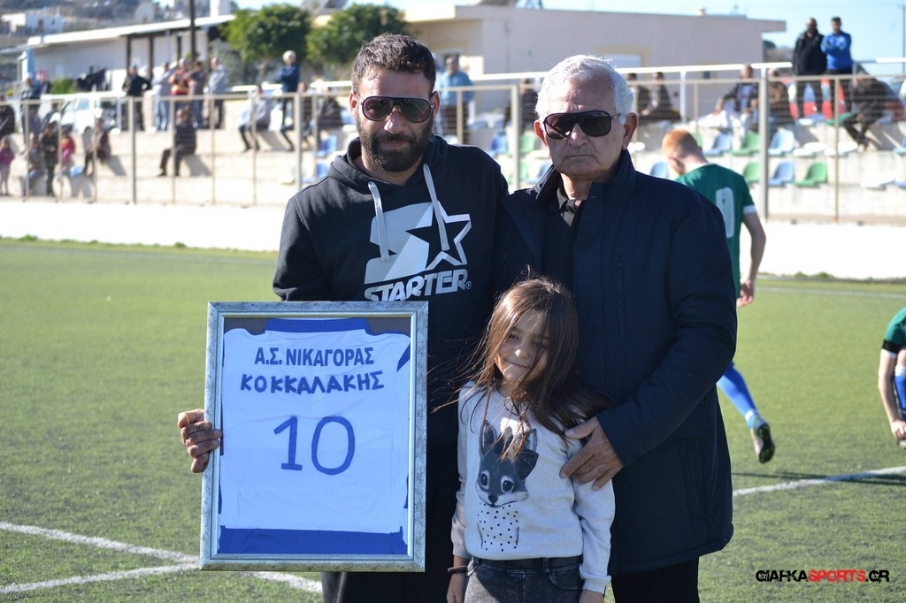 Πέρα απ’ τα όσα έγιναν στην διάρκεια του αγώνα η πιο συγκινητική στιγμή στην Κέφαλο ήταν αυτή στο ημίχρονο αφού οι άνθρωποι του Νικαγόρα χάρισαν στον γιο του παλαίμαχου ποδοσφαιριστή της ομάδας Μιχάλη Κοκκαλάκη, που έφυγε πριν λίγες μέρες απ’ την ζωή την φανέλα που φορούσε ο πατέρας του όσα χρόνια αγωνιζόταν στην ομάδα, αυτήν με το νούμερο 10.