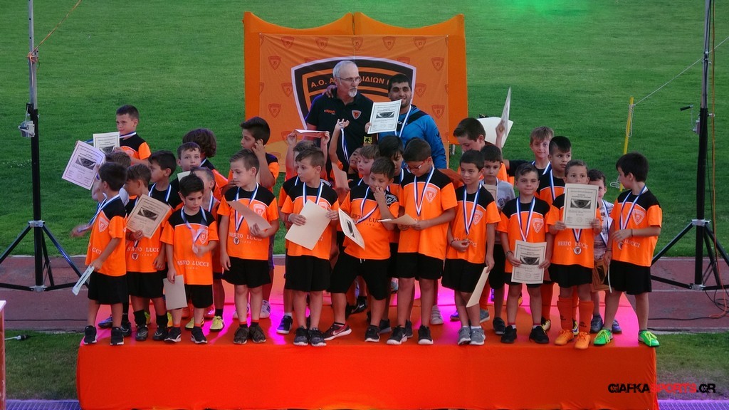 Στην συνέχεια κάθε τμήμα ξεχωριστά μαζί με τον προπονητή, παρέλασε και στην συνέχεια ένα ένα τα παιδιά παρέλαβαν απ’ τον πρόεδρο του συλλόγου Νεκτάριο Πλατέλλα τα αναμνηστικά τους διπλώματα και τα μετάλλια.