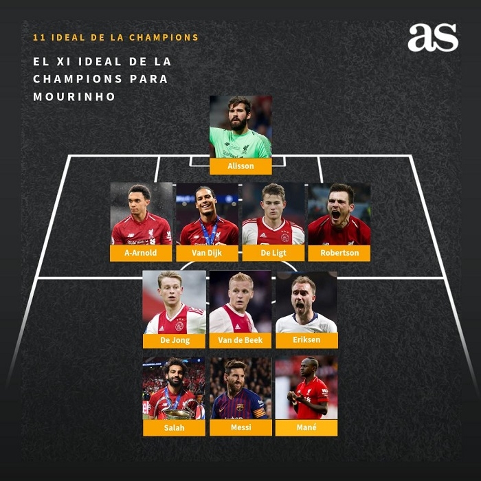 Την καλύτερη ενδεκάδα του Champions League επέλεξε ο Ζοσέ Μουρίνιο. Ο Πορτογάλος τεχνικός επέλεξε έξι παίκτες της πρωταθλήτριας Ευρώπης, Λίβερπουλ, τρεις του Άγιαξ, έναν της φιναλίστ Τότεναμ και έναν της Μπαρτσελόνα.